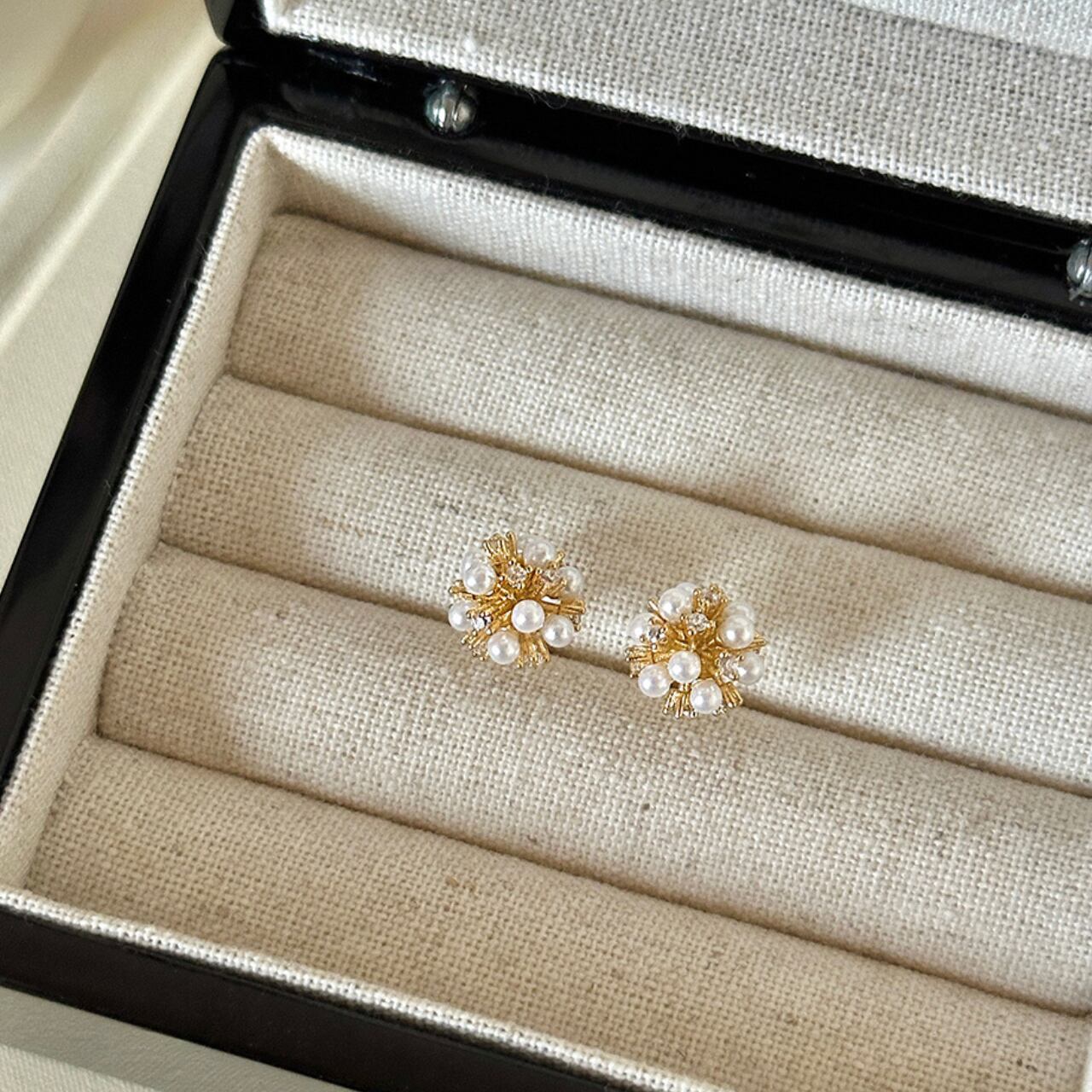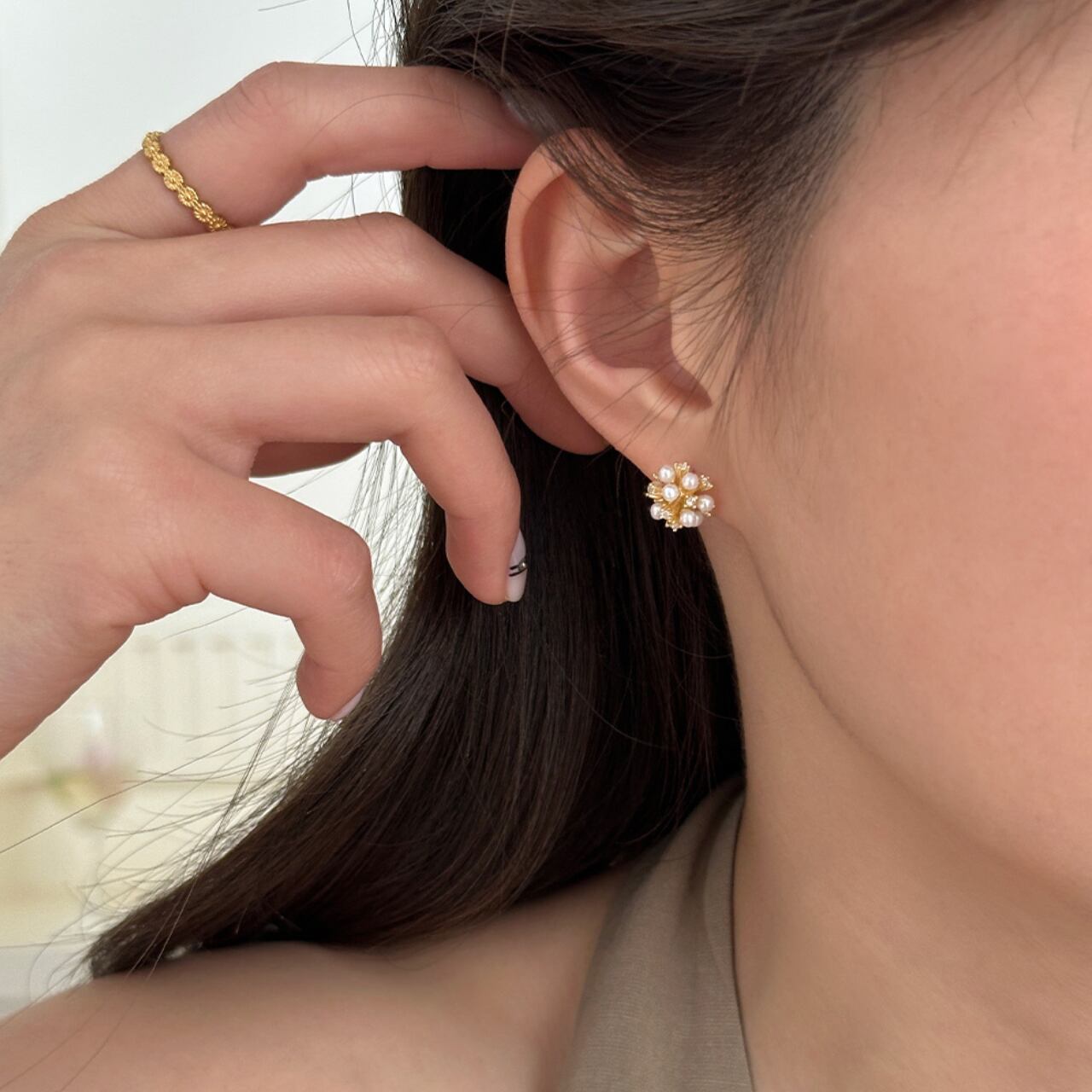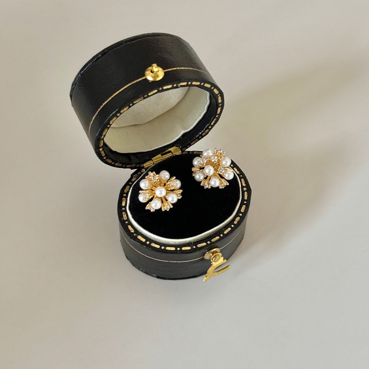 上品な輝きを放つパールが贅沢にあしらわれた、洗練されたデザイン。さりげないながらも存在感があり、普段使いから特別な日のお洒落まで幅広く活躍します。