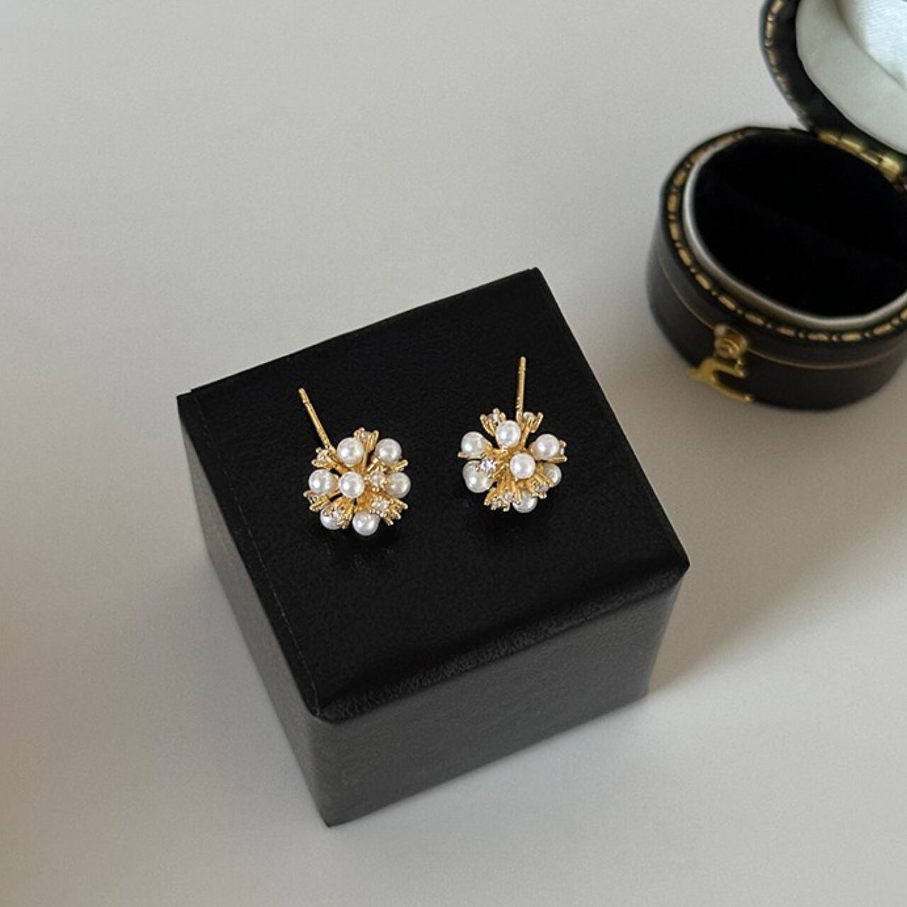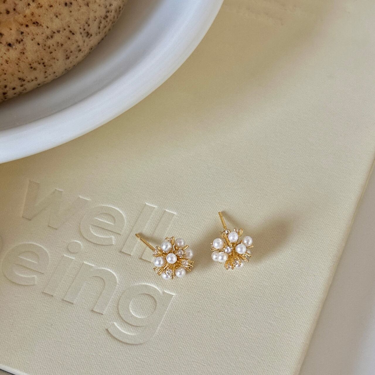 球状パール装飾スタッドピアス。