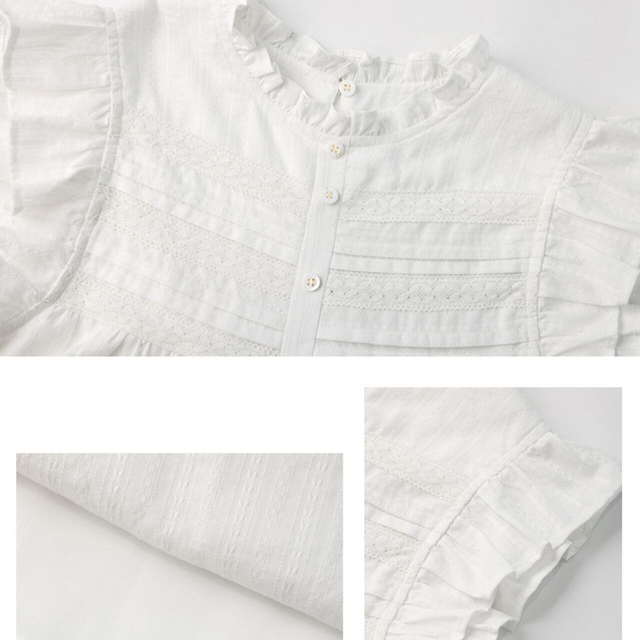 スタンドカラーと繊細なフリルが女性らしい一枚。 胸元にあしらわれた繊細なレースが、上品さをプラス。すっきりとしたスタンドカラーが、顔周りをすっきりと見せてくれます。 ◼️サイズ 【S】 肩幅: 33cm 胸囲: 88cm 【Ⅿ】 肩幅: 34cm 胸囲: 92cm 【L】 肩幅: 35cm 胸囲: 96cm ◼️カラー ホワイト ◼️素材 綿 【お届けについて】 こちらの商品は海外店舗より直接発送となる為、ご入金から1〜3週間でお届けいたします。 ◼️注意事項 ・タイミングによっては 商品在庫切れにより注文キャンセルとさせていただく恐れもございますので、予めご了承くださいませ。 ・日本製とは検品基準が異なる為、縫製などが若干甘い場合があります。 ・海外倉庫にて保管をしております。在庫情報に時差が生じますため在庫切れや生産中止、生産に遅れがある場合は、受注後でもキャンセルさせていただく恐れがございます。 ・商品の色味は、お手持ちのスマートフォンの画面によって実物と若干異なる場合がございます。 ・発送時期によりデザイン仕様(細部、素材など)の変更がある場合がございます。 ・イメージ違いやサイズ交換等、お客さまご都合による交換、返品は対応出来かねます。 ———————————— 誠に恐れ入りますが、ご購入前に以下をご確認頂きご承諾の上お買い求めくださいませ。 →https://petitelune.official.ec/about ————————————