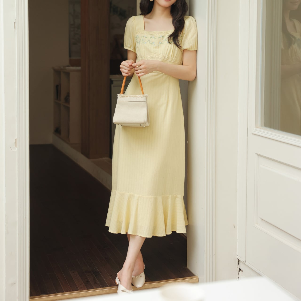 パフスリーブとスクエアネックが女性らしいAラインワンピース。ミモレ丈で上品な印象を与えつつ、フレアシルエットが軽やかな動きを演出します。旅行やちょっとしたお出かけなど、様々なシーンで活躍する一着です◎ ◼️サイズ 【XS】 肩幅:34cm 胸囲:81cm ウエスト:67cm 袖丈:20.5cm 着丈:111cm 【S】 肩幅:35cm 胸囲:85cm ウエスト:71cm 袖丈:21.5cm 着丈:116cm 【M】 肩幅:36cm 胸囲:89cm ウエスト:75cm 袖丈:22.5cm 着丈:118cm 【L】 肩幅:37cm 胸囲:93cm ウエスト:79cm 袖丈:23.5cm 着丈:120cm 【XL】 肩幅:38cm 胸囲:97cm ウエスト:83cm 袖丈:24.5cm 着丈:120cm ◼️カラー イエロー ◼️素材 リヨセル繊維 綿 【お届けについて】 こちらの商品は海外店舗より直接発送となる為、ご入金から1〜3週間でお届けいたします。 ◼️注意事項 ・タイミングによっては 商品在庫切れにより注文キャンセルとさせていただく恐れもございますので、予めご了承くださいませ。 ・日本製とは検品基準が異なる為、縫製などが若干甘い場合があります。 ・海外倉庫にて保管をしております。在庫情報に時差が生じますため在庫切れや生産中止、生産に遅れがある場合は、受注後でもキャンセルさせていただく恐れがございます。 ・商品の色味は、お手持ちのスマートフォンの画面によって実物と若干異なる場合がございます。 ・発送時期によりデザイン仕様(細部、素材など)の変更がある場合がございます。 ・イメージ違いやサイズ交換等、お客さまご都合による交換、返品は対応出来かねます。 ———————————— 誠に恐れ入りますが、ご購入前に以下をご確認頂きご承諾の上お買い求めくださいませ。 →https://petitelune.official.ec/about ————————————