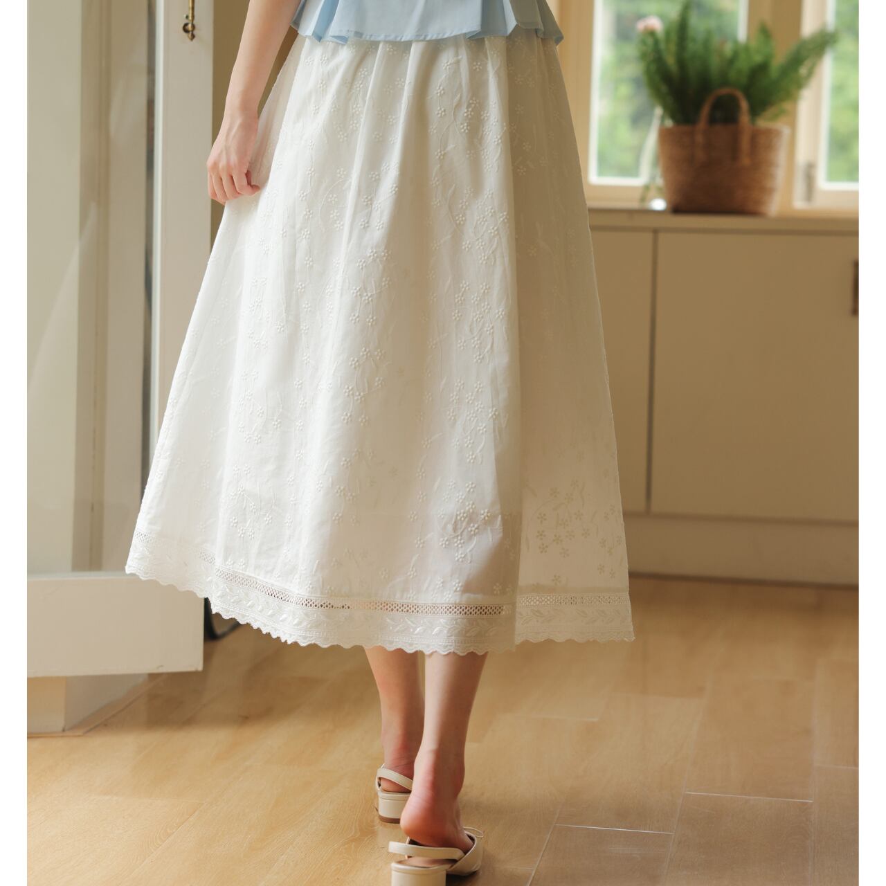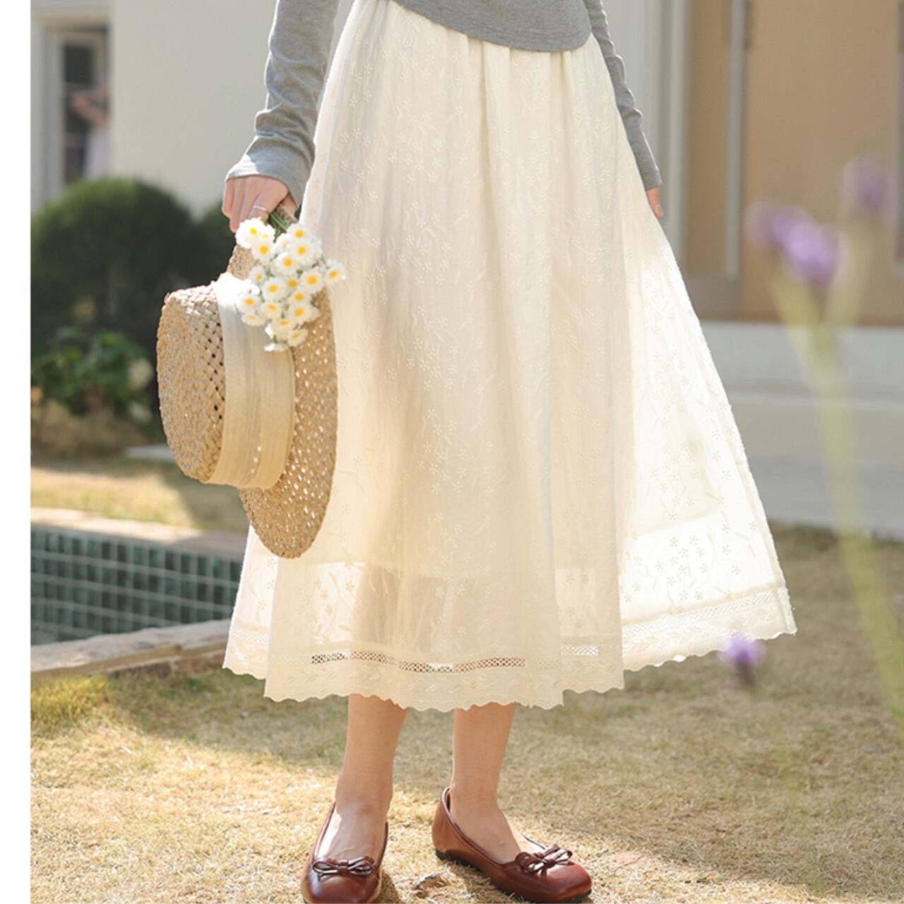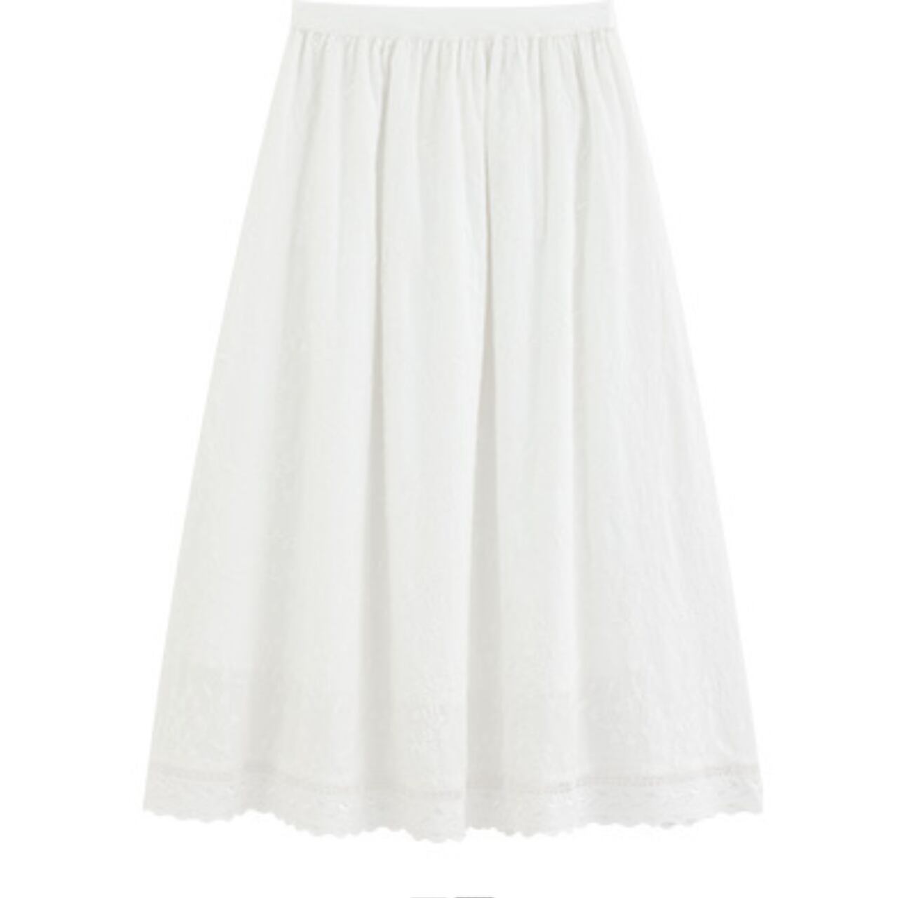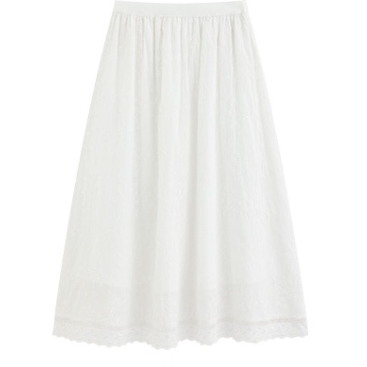Aラインシルエットが女性らしい、コットンレース刺繍のマキシスカート。繊細な刺繍が上品さを演出し、さりげないお洒落を演出します。旅行やちょっとしたお出かけなど、様々なシーンで活躍します◎ ◼️サイズ 【XS】ウエスト:58/68cm スカート丈:77cm 【S】ウエスト:62/72cm スカート丈:80cm 【Ⅿ】ウエスト:66/76cm スカート丈:81cm 【L】ウエスト:70/80cm スカート丈:82cm ◼️カラー ホワイト ◼️素材 綿 【お届けについて】 こちらの商品は海外店舗より直接発送となる為、ご入金から1〜3週間でお届けいたします。 ◼️注意事項 ・タイミングによっては 商品在庫切れにより注文キャンセルとさせていただく恐れもございますので、予めご了承くださいませ。 ・日本製とは検品基準が異なる為、縫製などが若干甘い場合があります。 ・海外倉庫にて保管をしております。在庫情報に時差が生じますため在庫切れや生産中止、生産に遅れがある場合は、受注後でもキャンセルさせていただく恐れがございます。 ・商品の色味は、お手持ちのスマートフォンの画面によって実物と若干異なる場合がございます。 ・発送時期によりデザイン仕様(細部、素材など)の変更がある場合がございます。 ・イメージ違いやサイズ交換等、お客さまご都合による交換、返品は対応出来かねます。 ———————————— 誠に恐れ入りますが、ご購入前に以下をご確認頂きご承諾の上お買い求めくださいませ。 →https://petitelune.official.ec/about ————————————