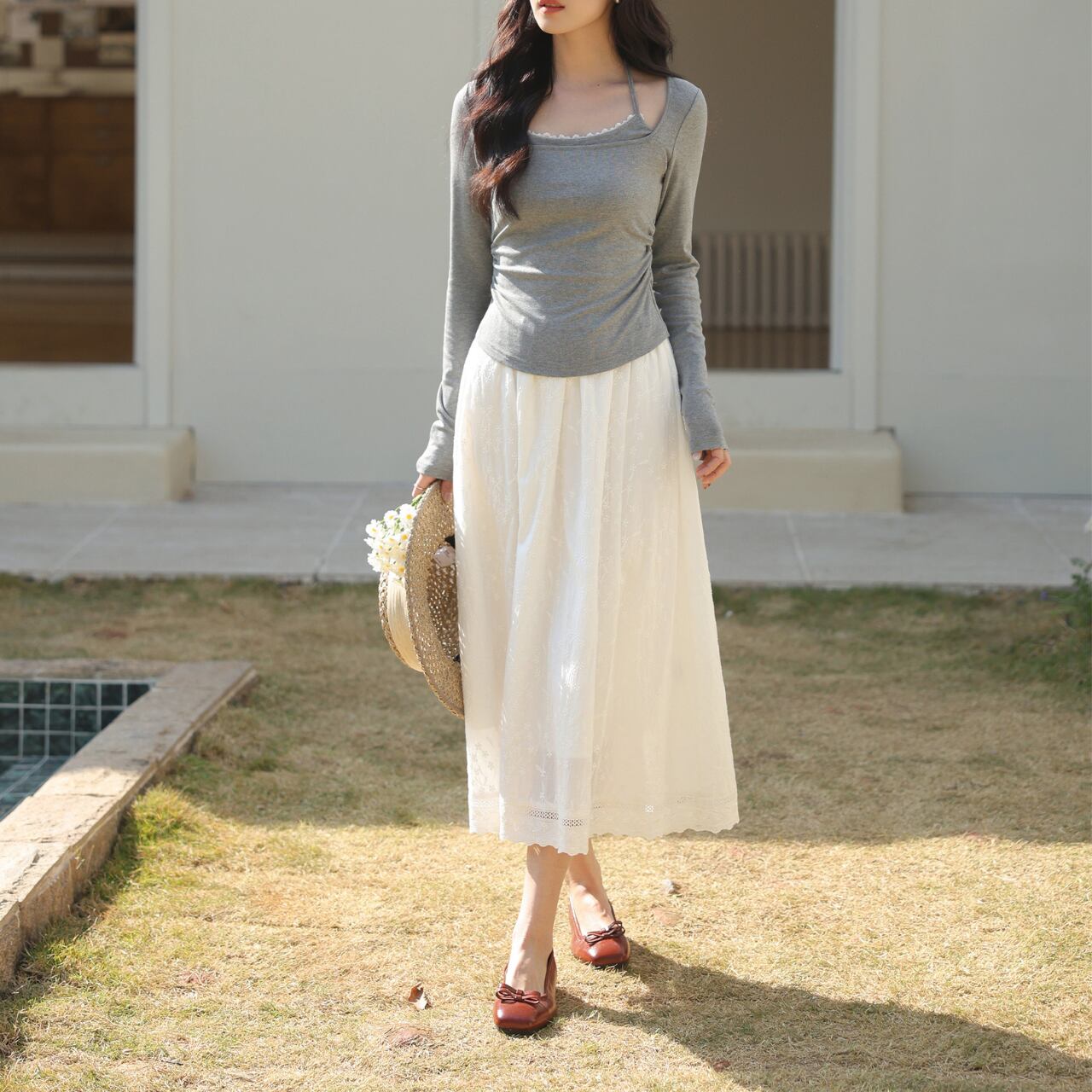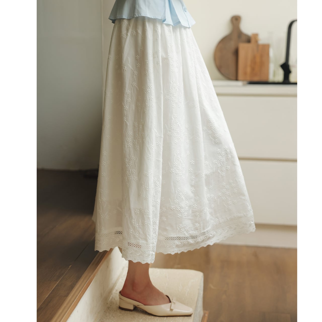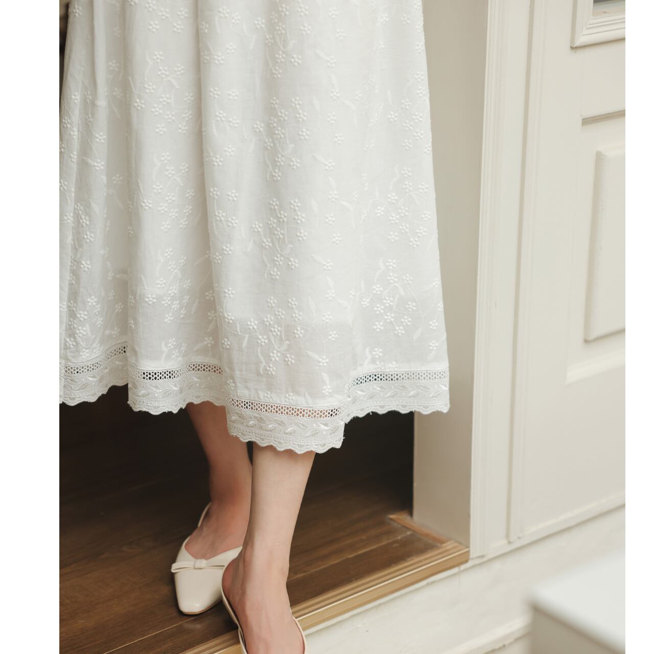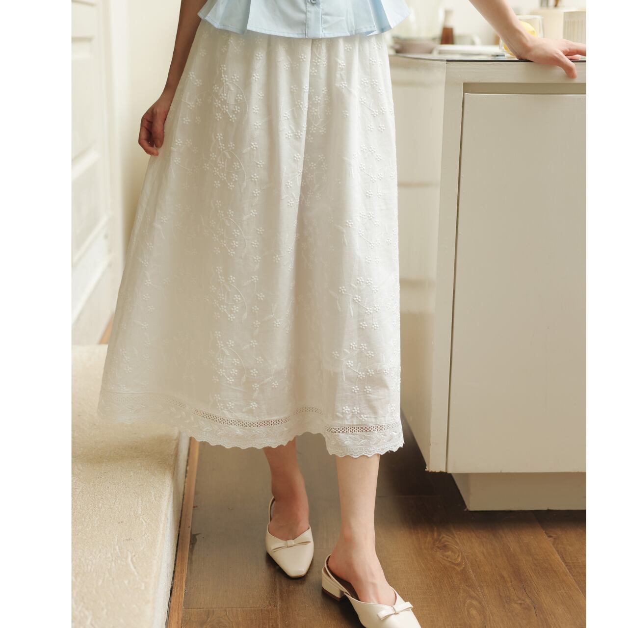 Aラインシルエットが女性らしい、コットンレース刺繍のマキシスカート。繊細な刺繍が上品さを演出し、さりげないお洒落を演出します。旅行やちょっとしたお出かけなど、様々なシーンで活躍します◎ ◼️サイズ 【XS】ウエスト:58/68cm スカート丈:77cm 【S】ウエスト:62/72cm スカート丈:80cm 【Ⅿ】ウエスト:66/76cm スカート丈:81cm 【L】ウエスト:70/80cm スカート丈:82cm ◼️カラー ホワイト ◼️素材 綿 【お届けについて】 こちらの商品は海外店舗より直接発送となる為、ご入金から1〜3週間でお届けいたします。 ◼️注意事項 ・タイミングによっては 商品在庫切れにより注文キャンセルとさせていただく恐れもございますので、予めご了承くださいませ。 ・日本製とは検品基準が異なる為、縫製などが若干甘い場合があります。 ・海外倉庫にて保管をしております。在庫情報に時差が生じますため在庫切れや生産中止、生産に遅れがある場合は、受注後でもキャンセルさせていただく恐れがございます。 ・商品の色味は、お手持ちのスマートフォンの画面によって実物と若干異なる場合がございます。 ・発送時期によりデザイン仕様(細部、素材など)の変更がある場合がございます。 ・イメージ違いやサイズ交換等、お客さまご都合による交換、返品は対応出来かねます。 ———————————— 誠に恐れ入りますが、ご購入前に以下をご確認頂きご承諾の上お買い求めくださいませ。 →https://petitelune.official.ec/about ————————————