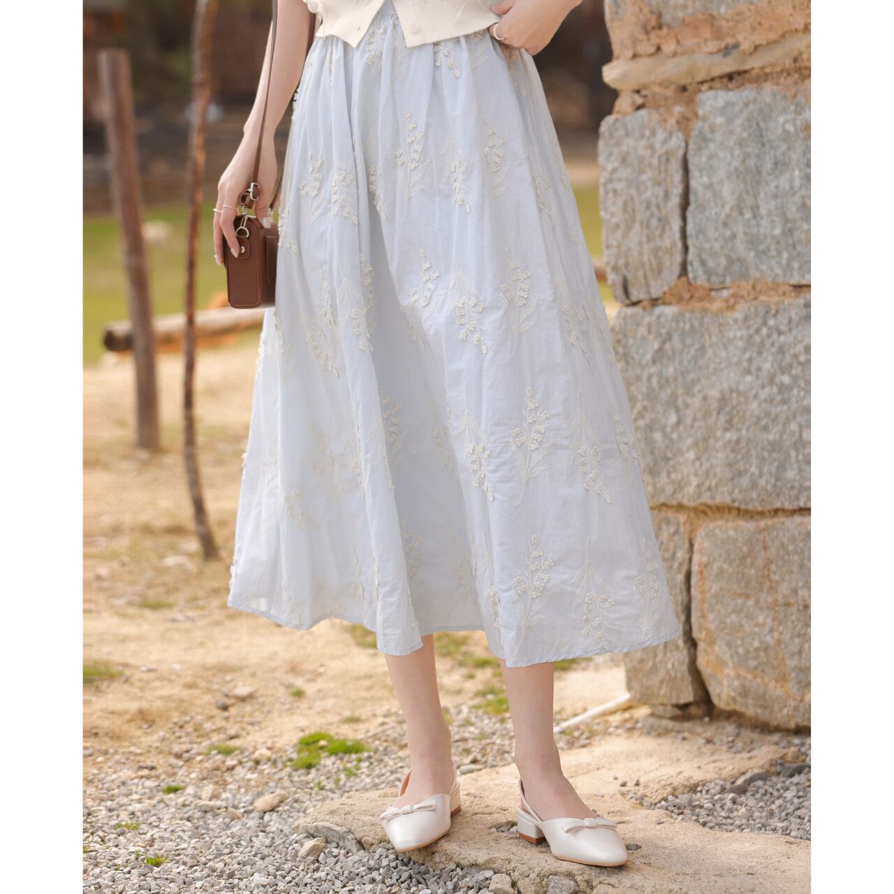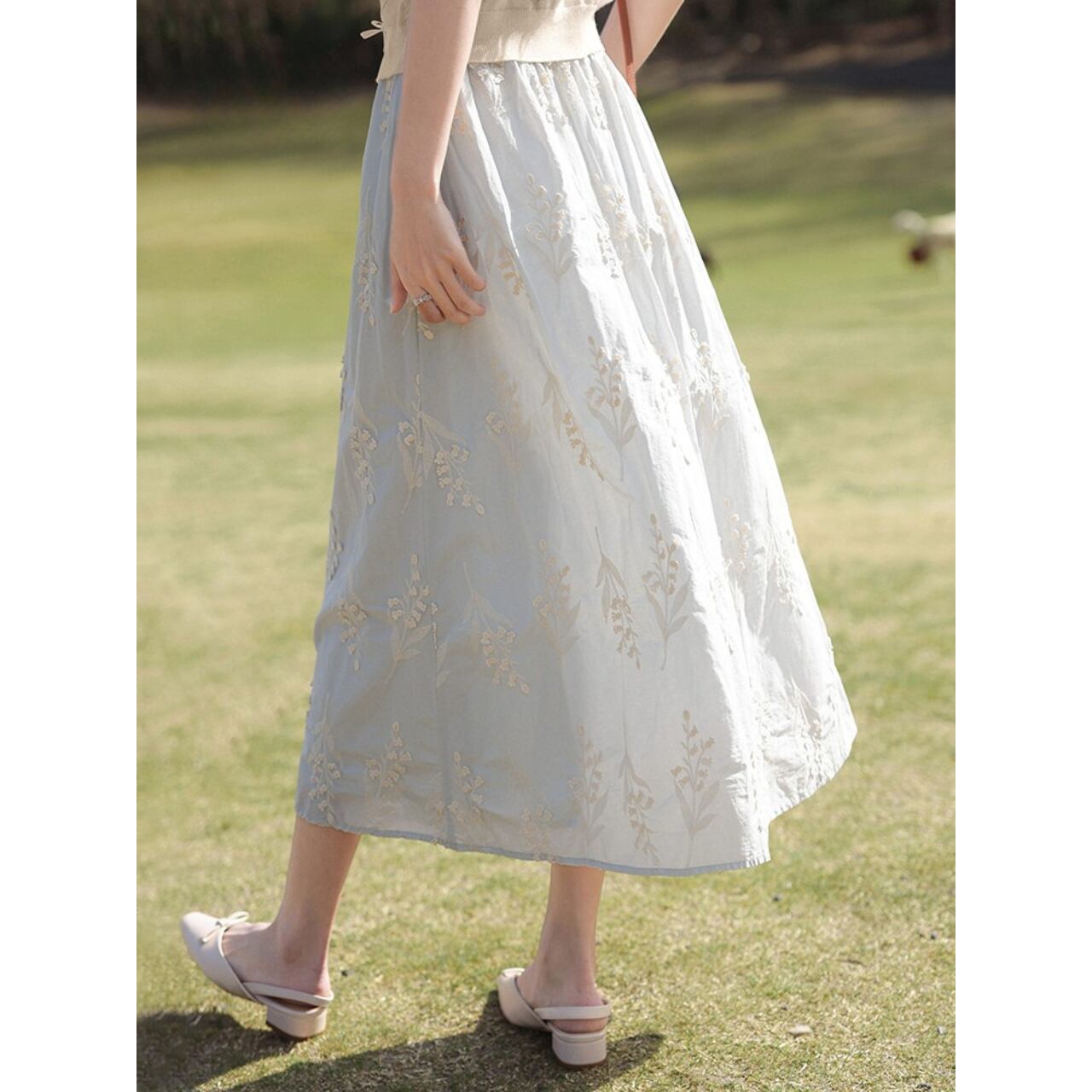 刺繍が美しいAラインミモレ丈スカート。上品なデザイン ◼️サイズ 【XS】 ウエスト:60-70cm スカート丈:74cm 【S】ウエスト:64-74cm スカート丈:77cm 【M】ウエスト:68-78cm スカート丈:78cm 【L】ウエスト:72-82cm スカート丈:79cm ◼️カラー ブルー ◼️素材 綿 【お届けについて】 こちらの商品は海外店舗より直接発送となる為、ご入金から1〜3週間でお届けいたします。 ◼️注意事項 ・タイミングによっては 商品在庫切れにより注文キャンセルとさせていただく恐れもございますので、予めご了承くださいませ。 ・日本製とは検品基準が異なる為、縫製などが若干甘い場合があります。 ・海外倉庫にて保管をしております。在庫情報に時差が生じますため在庫切れや生産中止、生産に遅れがある場合は、受注後でもキャンセルさせていただく恐れがございます。 ・商品の色味は、お手持ちのスマートフォンの画面によって実物と若干異なる場合がございます。 ・発送時期によりデザイン仕様(細部、素材など)の変更がある場合がございます。 ・イメージ違いやサイズ交換等、お客さまご都合による交換、返品は対応出来かねます。 ———————————— 誠に恐れ入りますが、ご購入前に以下をご確認頂きご承諾の上お買い求めくださいませ。 →https://petitelune.official.ec/about ————————————