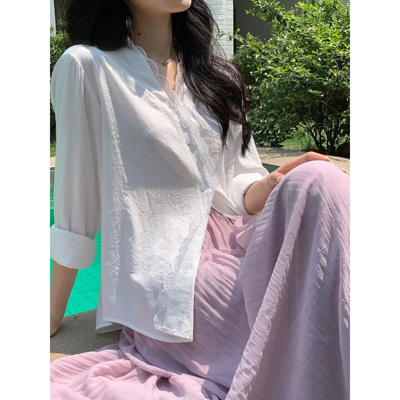 繊細なレース襟が、さりげない可愛らしさを演出します。Vネックデザインで、デコルテを美しく見せる効果も◎ ◼️サイズ 【XS】着寸:64 肩幅: 41cm 胸囲: 96cm 袖丈: 57cm 【S】着寸:66 肩幅: 42cm 胸囲: 100cm 袖丈: 58.5cm 【M】着寸:67 肩幅: 43cm 胸囲: 104cm 袖丈: 59.5cm 【L】着寸:68 肩幅: 44cm 胸囲: 108cm 袖丈: 60.5cm ◼️カラー ホワイト ◼️素材 リヨセル 【お届けについて】 こちらの商品は海外店舗より直接発送となる為、ご入金から1〜3週間でお届けいたします。 ◼️注意事項 ・タイミングによっては 商品在庫切れにより注文キャンセルとさせていただく恐れもございますので、予めご了承くださいませ。 ・日本製とは検品基準が異なる為、縫製などが若干甘い場合があります。 ・海外倉庫にて保管をしております。在庫情報に時差が生じますため在庫切れや生産中止、生産に遅れがある場合は、受注後でもキャンセルさせていただく恐れがございます。 ・商品の色味は、お手持ちのスマートフォンの画面によって実物と若干異なる場合がございます。 ・発送時期によりデザイン仕様(細部、素材など)の変更がある場合がございます。 ・イメージ違いやサイズ交換等、お客さまご都合による交換、返品は対応出来かねます。 ———————————— 誠に恐れ入りますが、ご購入前に以下をご確認頂きご承諾の上お買い求めくださいませ。 →https://petitelune.official.ec/about ————————————