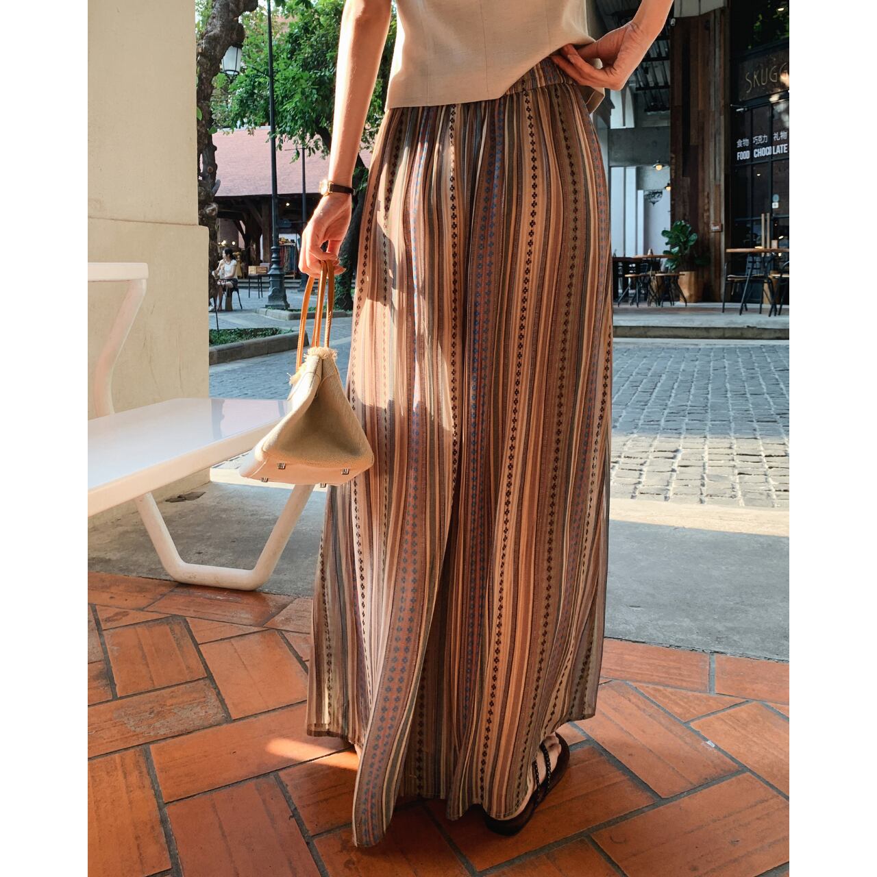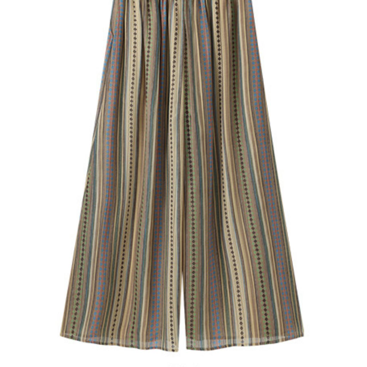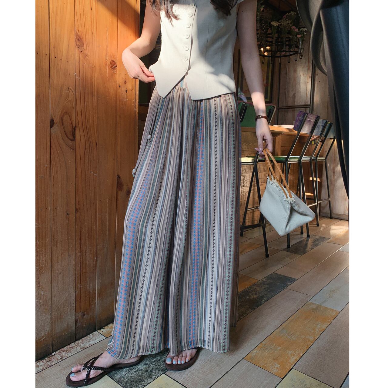 ストライプ柄 ハイウエスト ワイドパンツ 00036