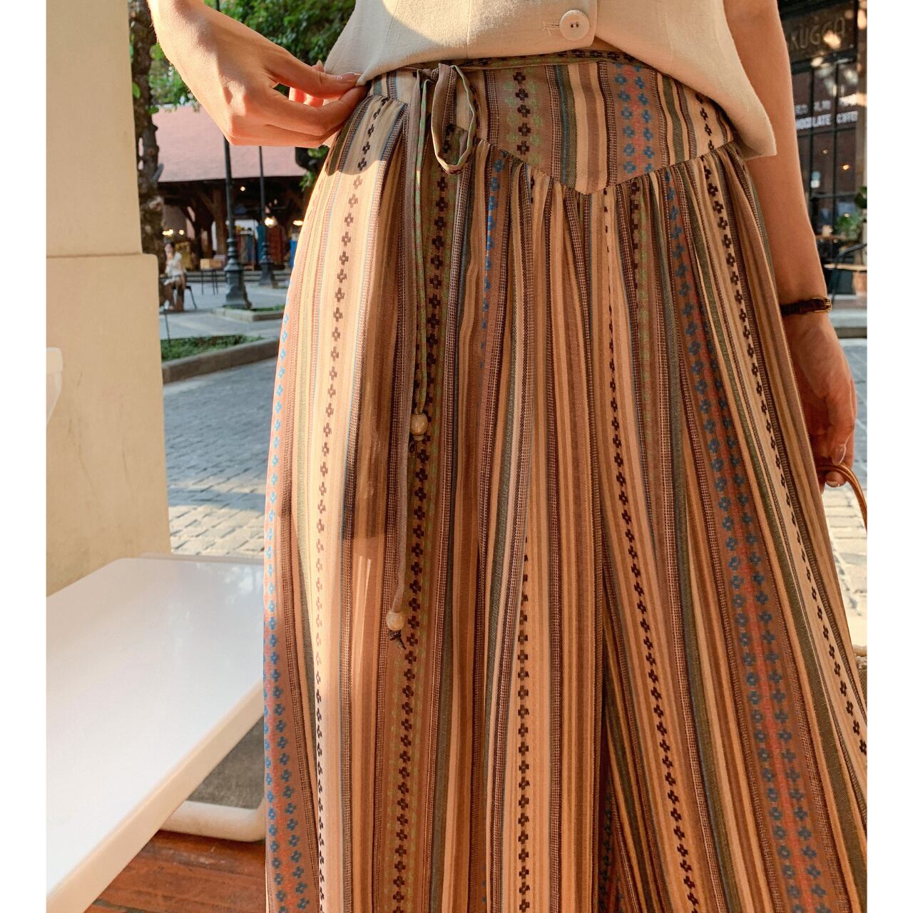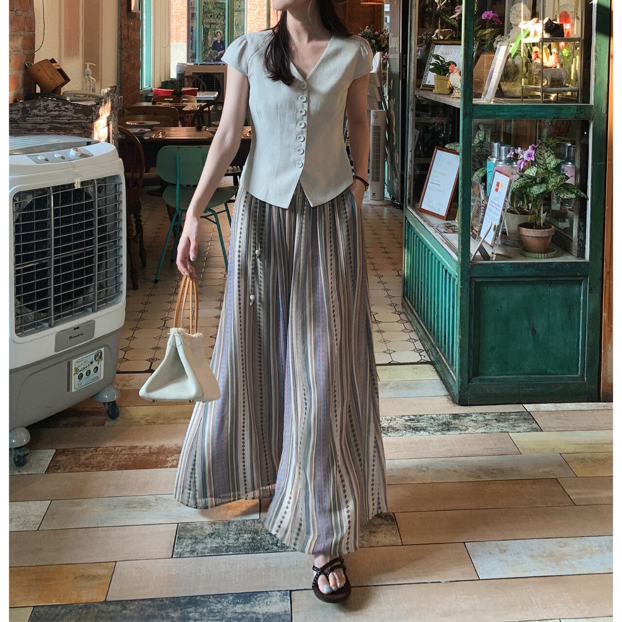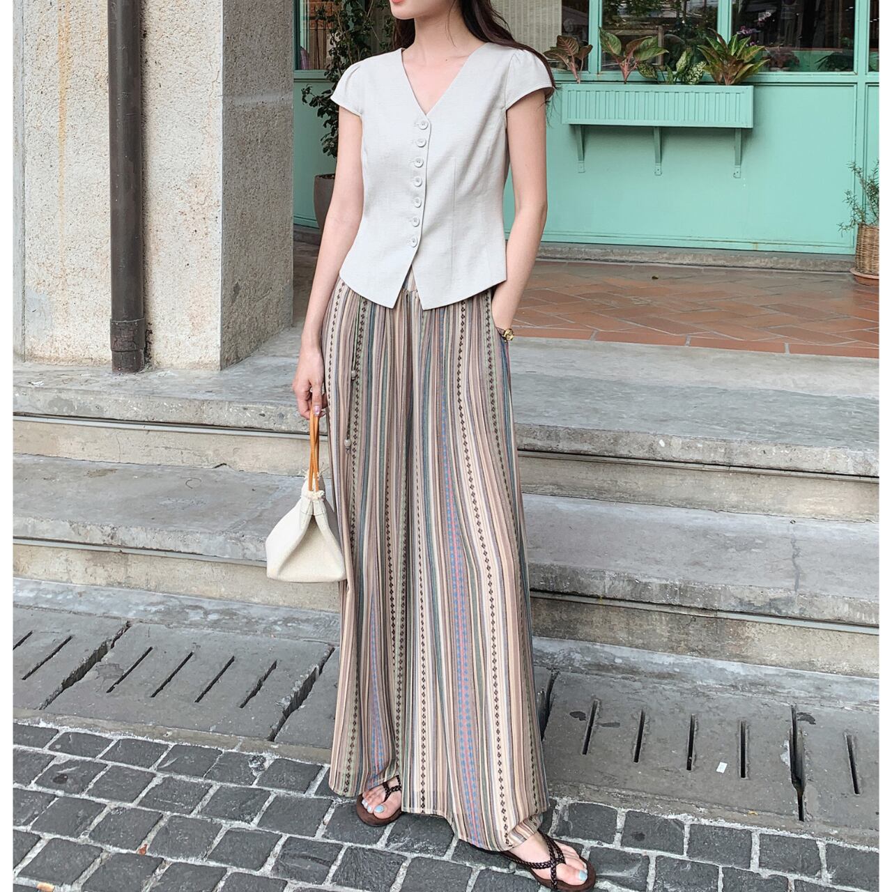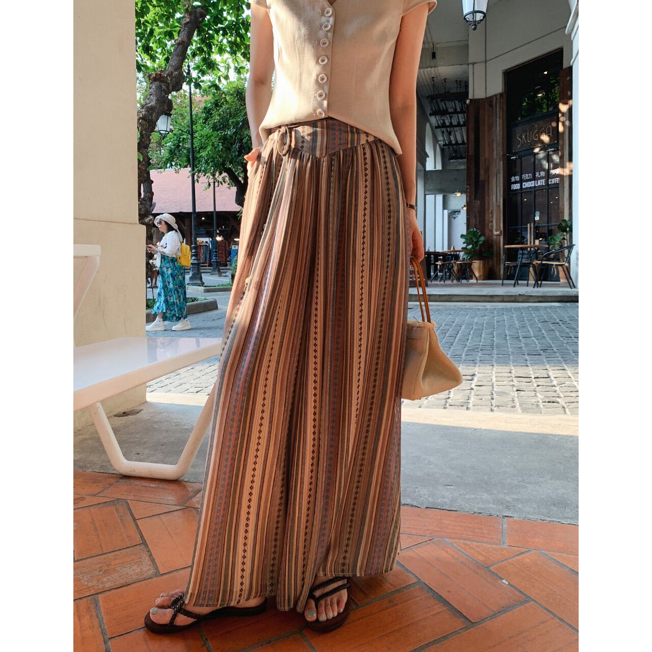 ストライプ柄 ハイウエスト ワイドパンツ 00036