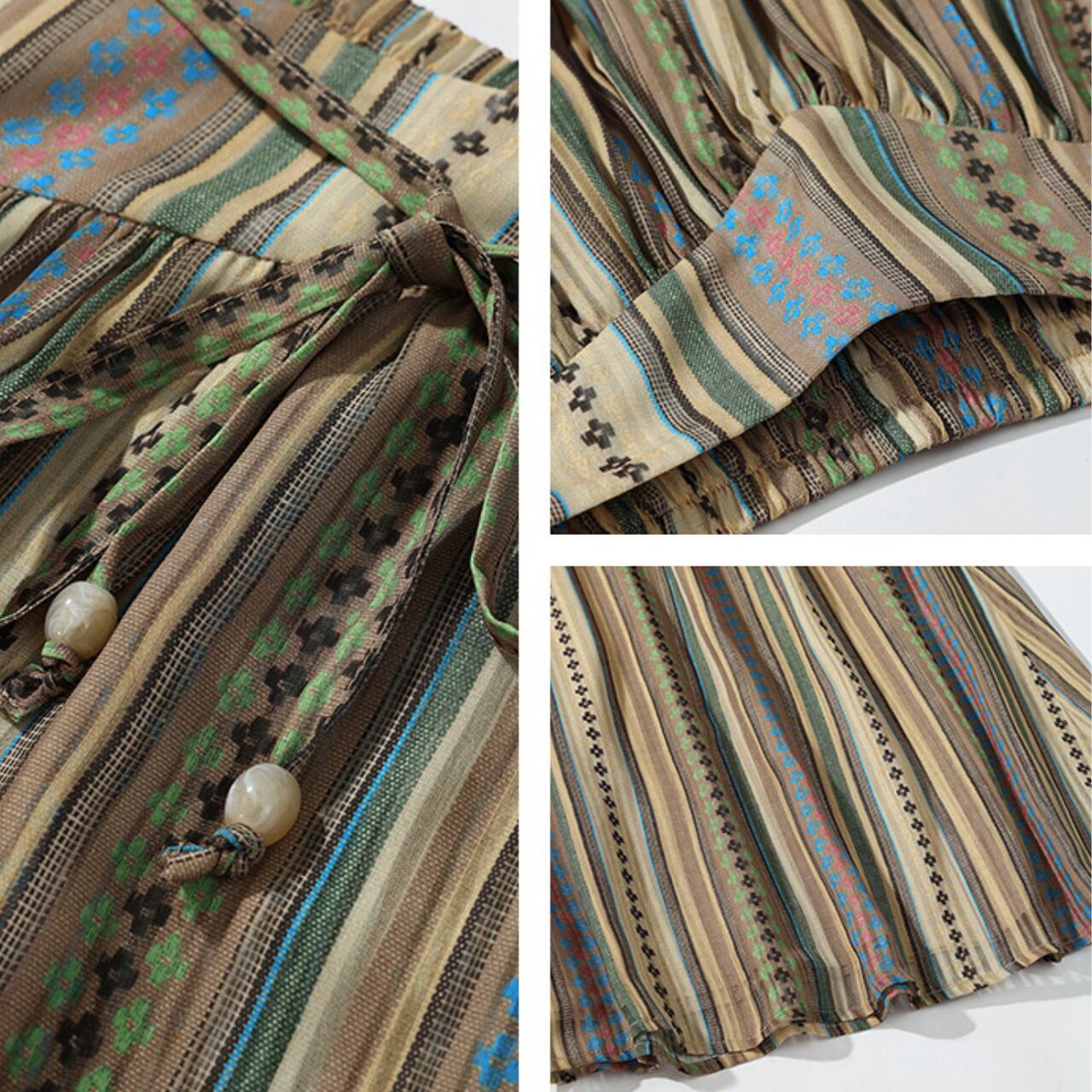 ストライプ柄が印象的で、落ち着いた色合いの生地が大人っぽさを演出します。