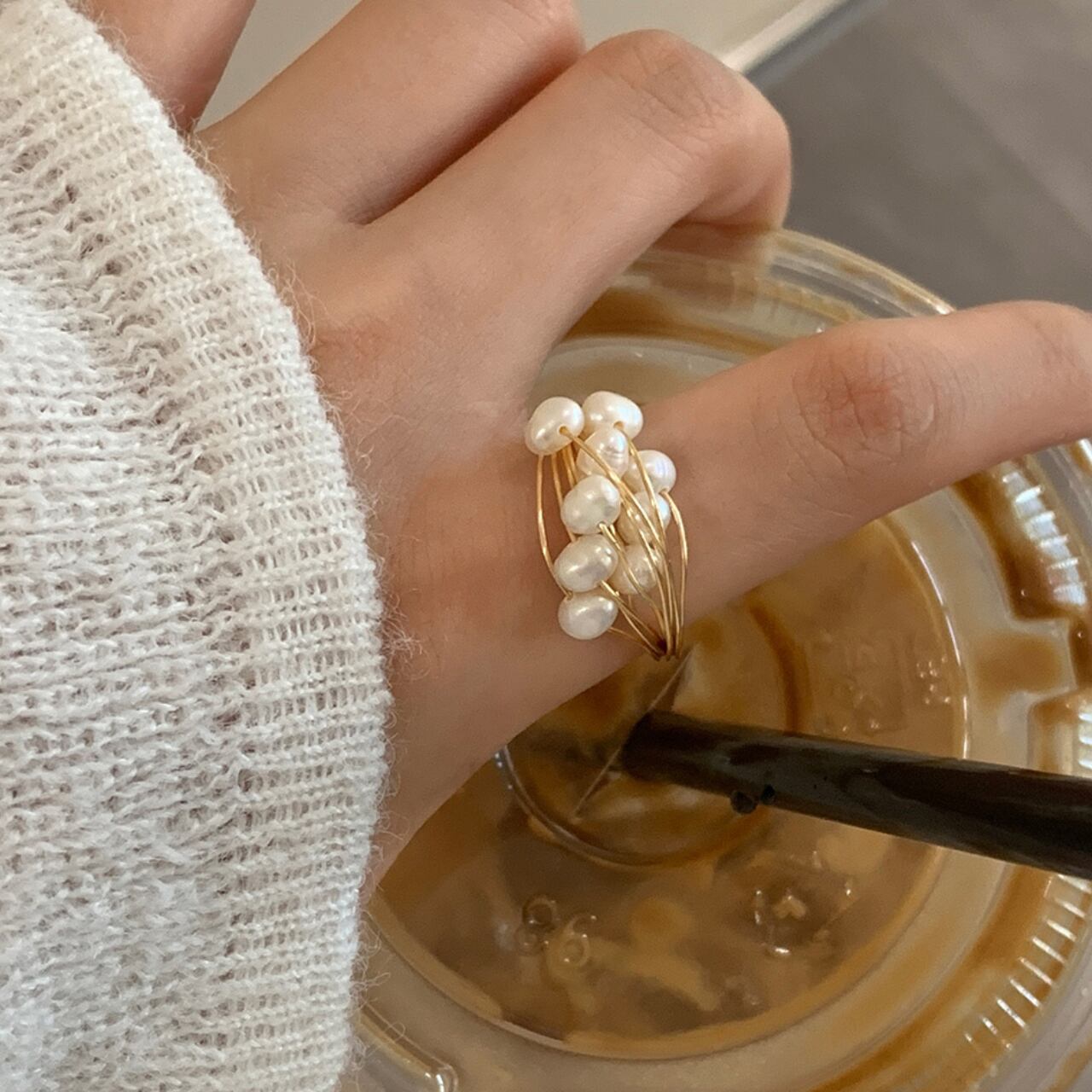 ワイヤー複数パール付き リング 00042