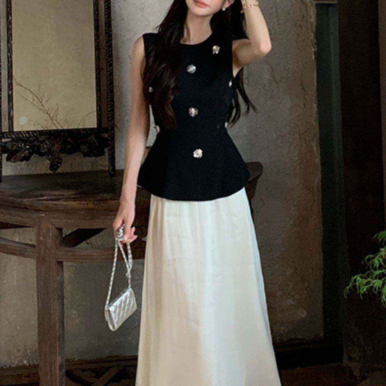 ボタン装飾が目を惹くノースリーブトップス。上品なブラックカラーに輝くボタンが、洗練された印象を与えます。 シンプルなデザインながら、存在感があり、様々なボトムスとコーディネートしやすいのが魅力です。 ◼️サイズ 【XXS】 肩幅:31.5cm 胸囲:80cm ウエスト:61cm 【XS】 肩幅:32.5cm 胸囲:84cm ウエスト:65cm 【S】 肩幅:33.5cm 胸囲:88cm ウエスト:69cm 【M】 肩幅:34.5cm 胸囲:92cm ウエスト:73cm ◼️カラー ブラック ◼️素材 【お届けについて】 こちらの商品は海外店舗より直接発送となる為、ご入金から1〜3週間でお届けいたします。 ◼️注意事項 ・タイミングによっては 商品在庫切れにより注文キャンセルとさせていただく恐れもございますので、予めご了承くださいませ。 ・日本製とは検品基準が異なる為、縫製などが若干甘い場合があります。 ・海外倉庫にて保管をしております。在庫情報に時差が生じますため在庫切れや生産中止、生産に遅れがある場合は、受注後でもキャンセルさせていただく恐れがございます。 ・商品の色味は、お手持ちのスマートフォンの画面によって実物と若干異なる場合がございます。 ・発送時期によりデザイン仕様(細部、素材など)の変更がある場合がございます。 ・イメージ違いやサイズ交換等、お客さまご都合による交換、返品は対応出来かねます。 ———————————— 誠に恐れ入りますが、ご購入前に以下をご確認頂きご承諾の上お買い求めくださいませ。 →https://petitelune.official.ec/about ————————————