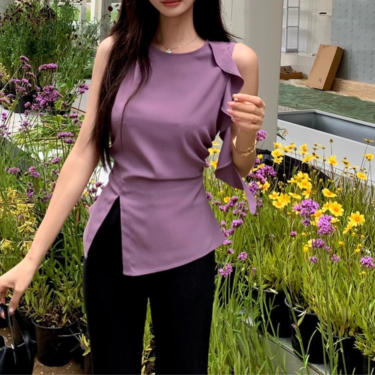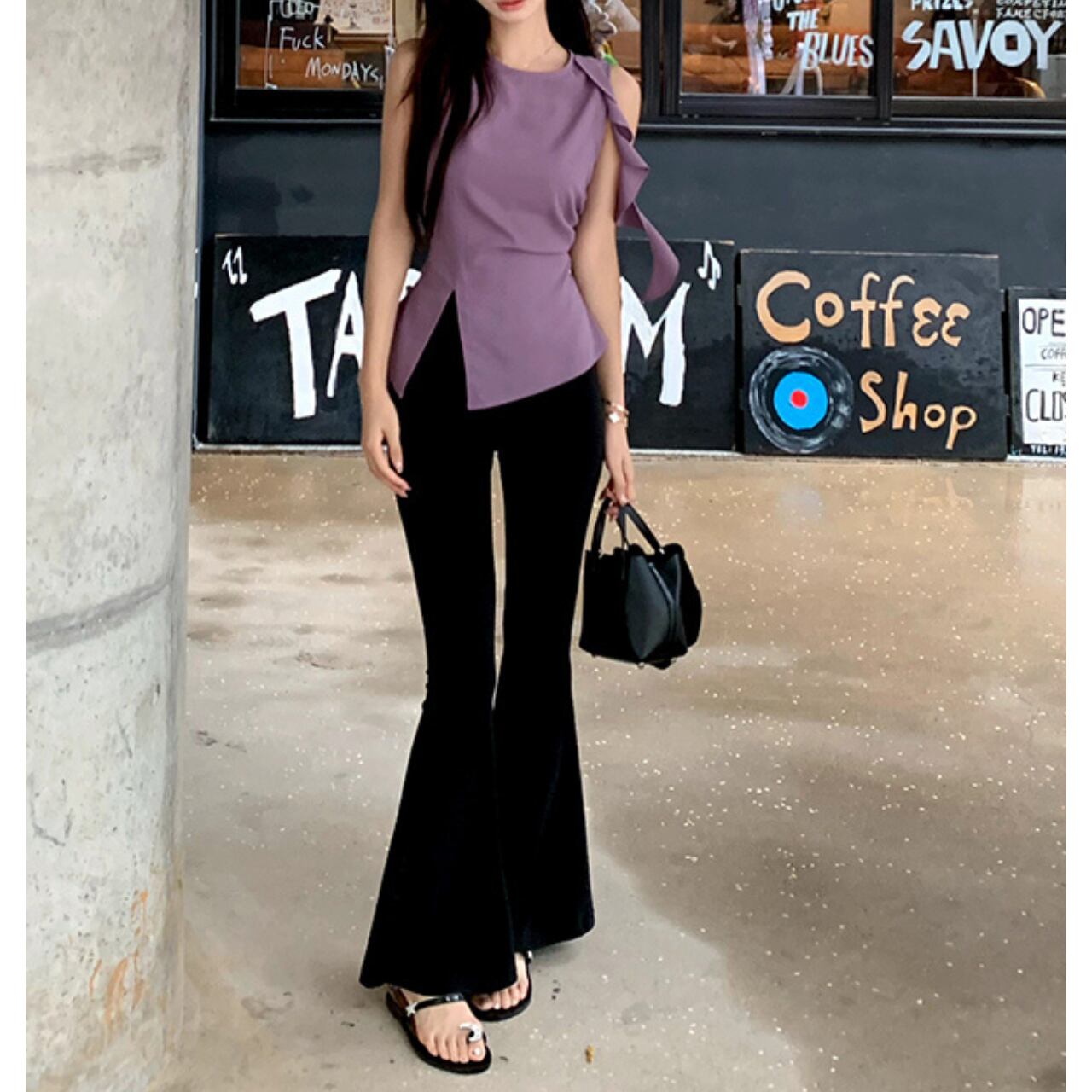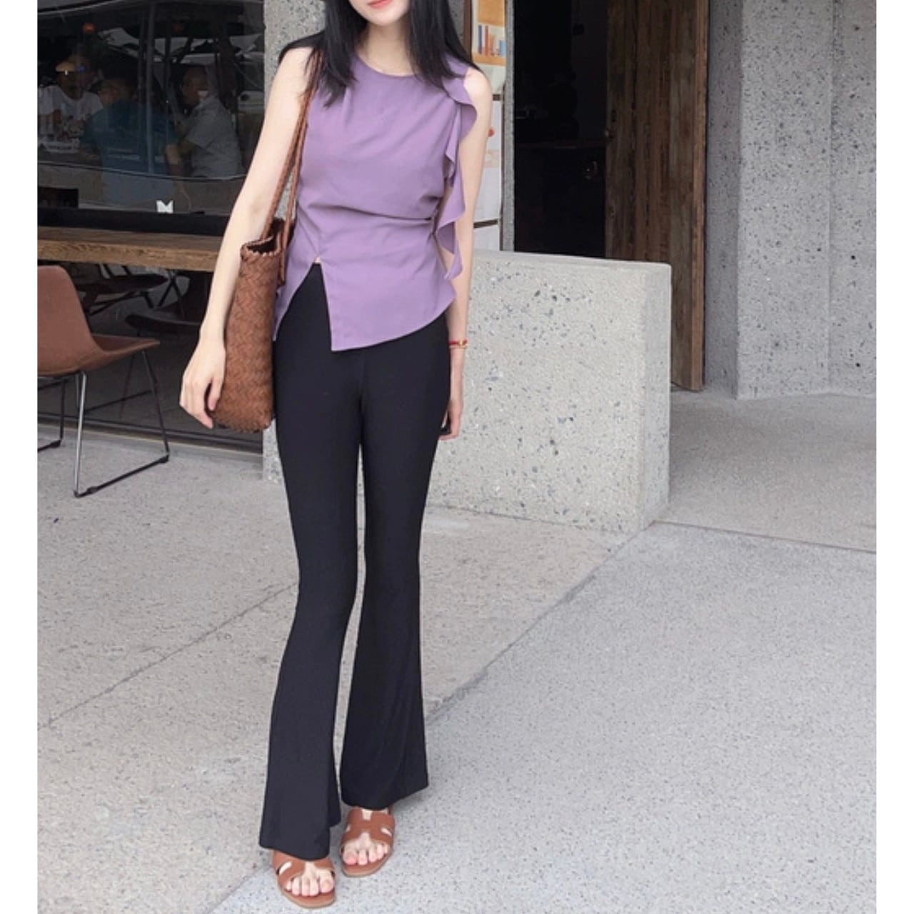 シンプルなデザインながら、フレアスリーブがポイントのノースリーブタンクトップ。程よく肌見せできるデザインで、上品なスタイルを演出します。着心地も良く、デイリーユースに最適です。カジュアルなパンツスタイルから、スカートスタイルまで幅広く活躍します。
