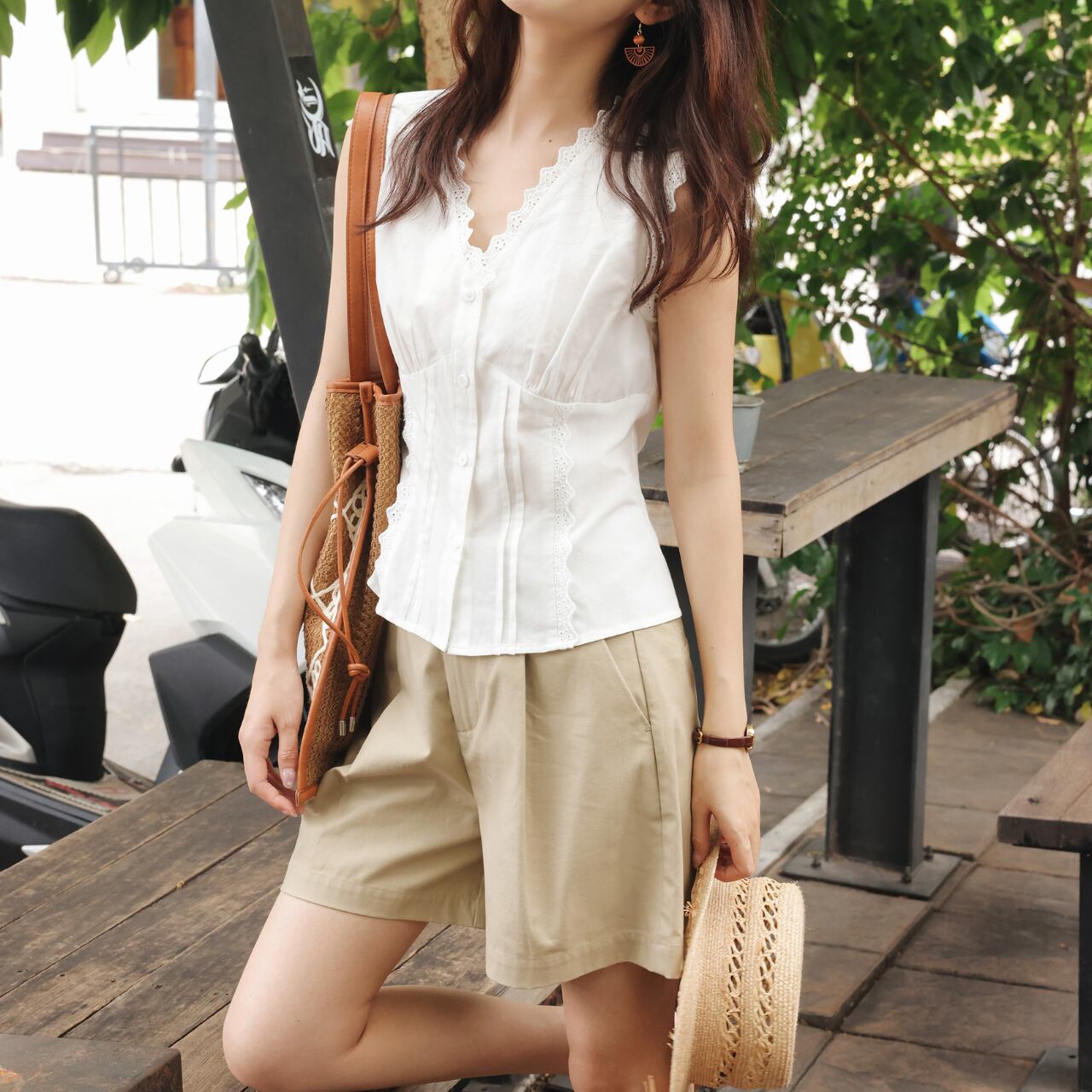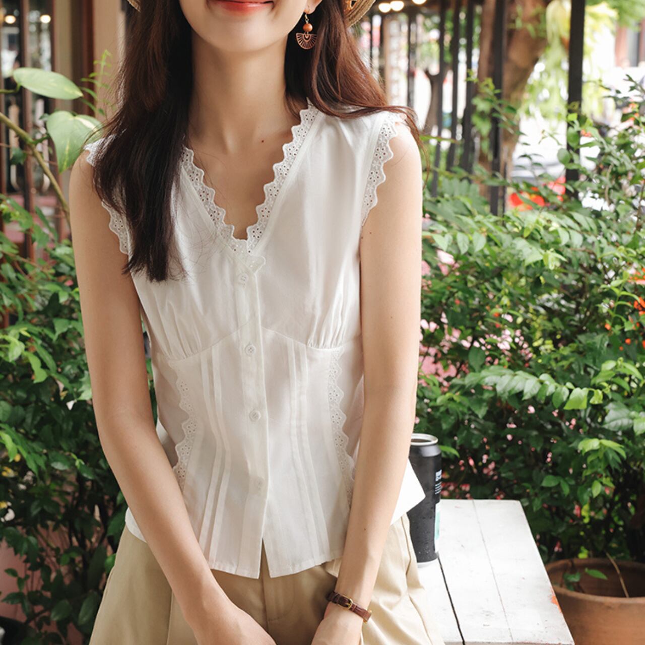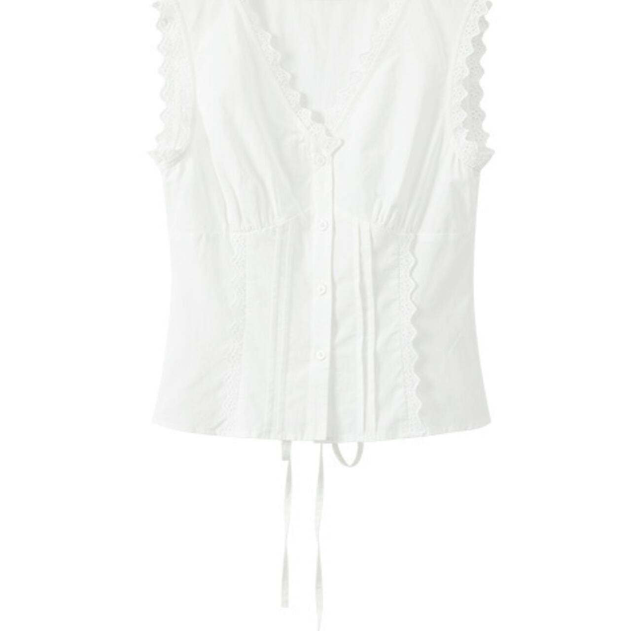 レースのディテールが上品なノースリーブトップス。ボタン留めで着脱も簡単です。一枚で着ても、ジャケットやカーディガンを羽織っても素敵です。お出かけ着としてはもちろん、普段使いにもおすすめです◎ ◼️サイズ 【XS】 肩幅:35cm 胸囲:88cm 【S】 肩幅:36cm 胸囲:92cm 【M】 肩幅:37cm 胸囲:96cm 【L】 肩幅:38cm 胸囲:100cm ◼️カラー ホワイト ◼️素材 再生セルロース 綿 【お届けについて】 こちらの商品は海外店舗より直接発送となる為、ご入金から1〜3週間でお届けいたします。 ◼️注意事項 ・タイミングによっては 商品在庫切れにより注文キャンセルとさせていただく恐れもございますので、予めご了承くださいませ。 ・日本製とは検品基準が異なる為、縫製などが若干甘い場合があります。 ・海外倉庫にて保管をしております。在庫情報に時差が生じますため在庫切れや生産中止、生産に遅れがある場合は、受注後でもキャンセルさせていただく恐れがございます。 ・商品の色味は、お手持ちのスマートフォンの画面によって実物と若干異なる場合がございます。 ・発送時期によりデザイン仕様(細部、素材など)の変更がある場合がございます。 ・イメージ違いやサイズ交換等、お客さまご都合による交換、返品は対応出来かねます。 ———————————— 誠に恐れ入りますが、ご購入前に以下をご確認頂きご承諾の上お買い求めくださいませ。 →https://petitelune.official.ec/about ————————————