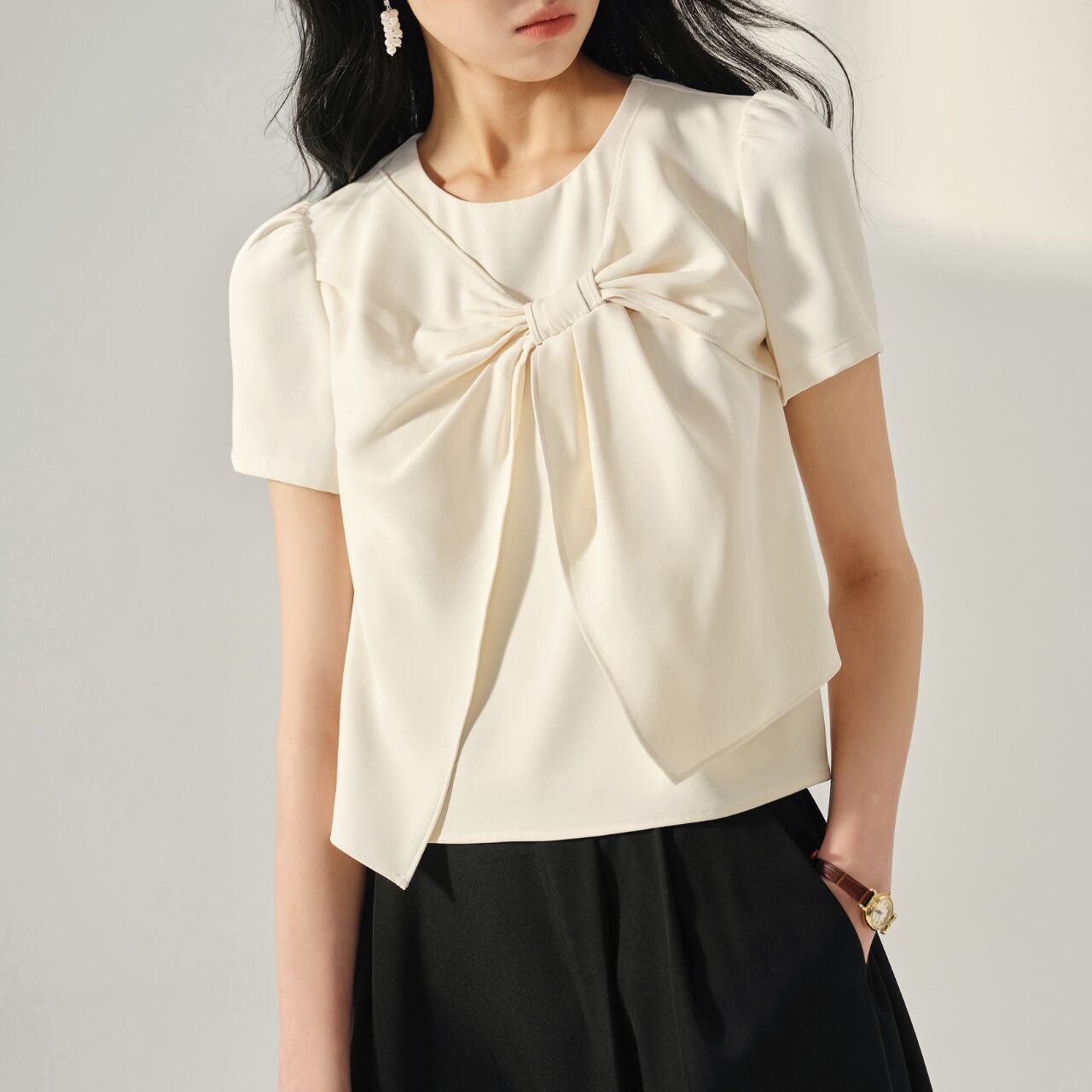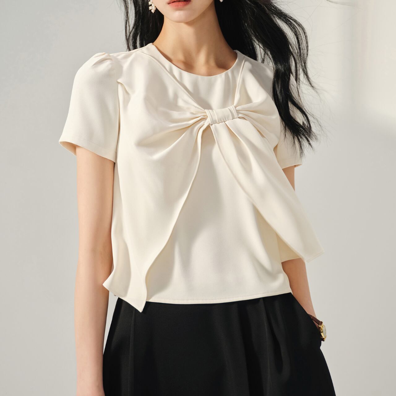 ボウタイリボンが目を惹くクルーネックブラウス。 洗練されたデザインで、オフィスシーンからデイリーユースまで幅広く活躍します。 上品なシルエットは、大人の女性の魅力を引き立てます。 ◼️サイズ 【XS】 肩幅:35cm 胸囲:84cm 袖丈:19.5cm 【S】 肩幅:36cm 胸囲:88cm 袖丈:20cm 【M】 肩幅:37cm 胸囲:92cm 袖丈:20.5cm 【L】 肩幅:38cm 胸囲:96cm 袖丈:21cm ◼️カラー ホワイト ◼️素材 ポリウレタン ポリエステル 【お届けについて】 こちらの商品は海外店舗より直接発送となる為、ご入金から1〜3週間でお届けいたします。 ◼️注意事項 ・タイミングによっては 商品在庫切れにより注文キャンセルとさせていただく恐れもございますので、予めご了承くださいませ。 ・日本製とは検品基準が異なる為、縫製などが若干甘い場合があります。 ・海外倉庫にて保管をしております。在庫情報に時差が生じますため在庫切れや生産中止、生産に遅れがある場合は、受注後でもキャンセルさせていただく恐れがございます。 ・商品の色味は、お手持ちのスマートフォンの画面によって実物と若干異なる場合がございます。 ・発送時期によりデザイン仕様(細部、素材など)の変更がある場合がございます。 ・イメージ違いやサイズ交換等、お客さまご都合による交換、返品は対応出来かねます。 ———————————— 誠に恐れ入りますが、ご購入前に以下をご確認頂きご承諾の上お買い求めくださいませ。 →https://petitelune.official.ec/about ————————————