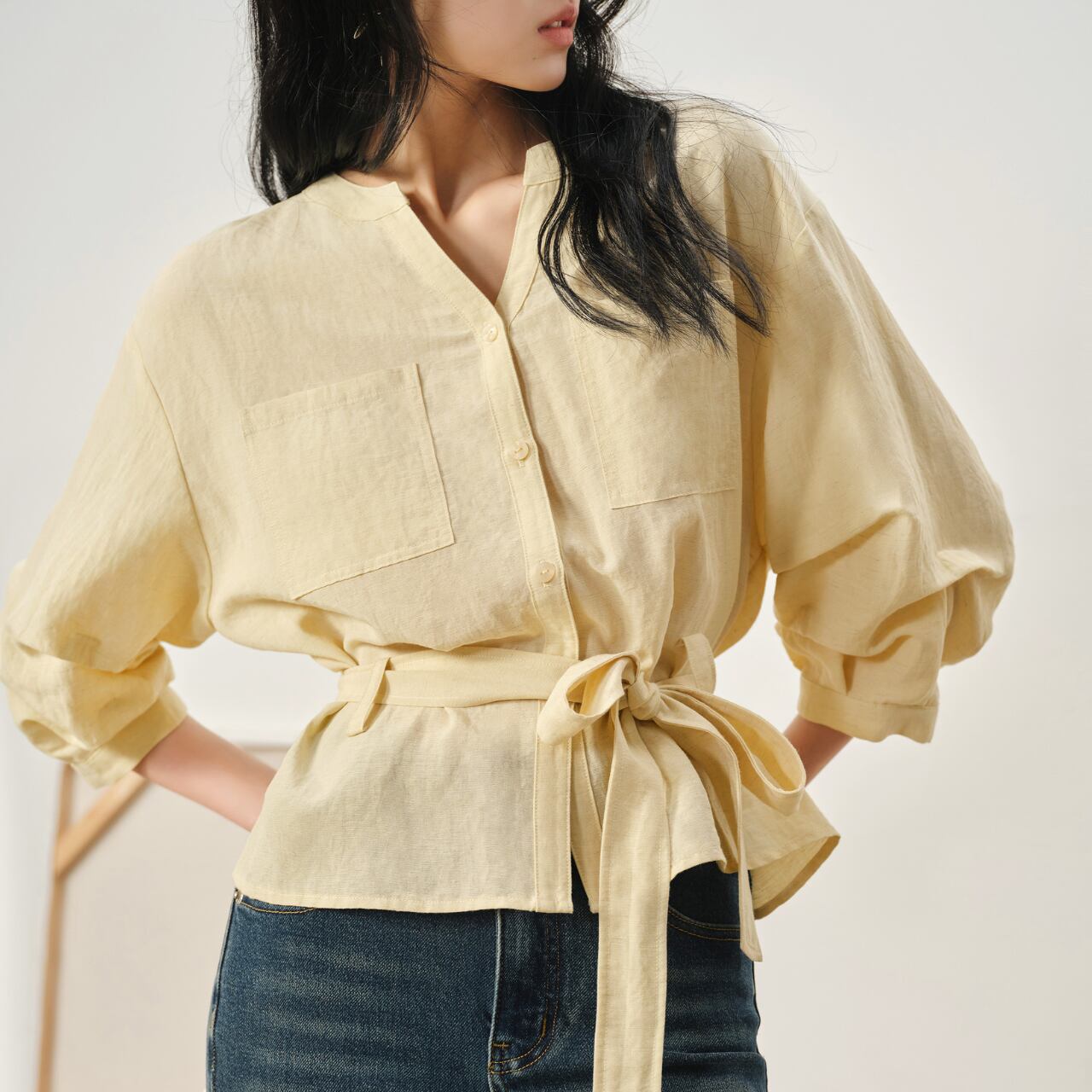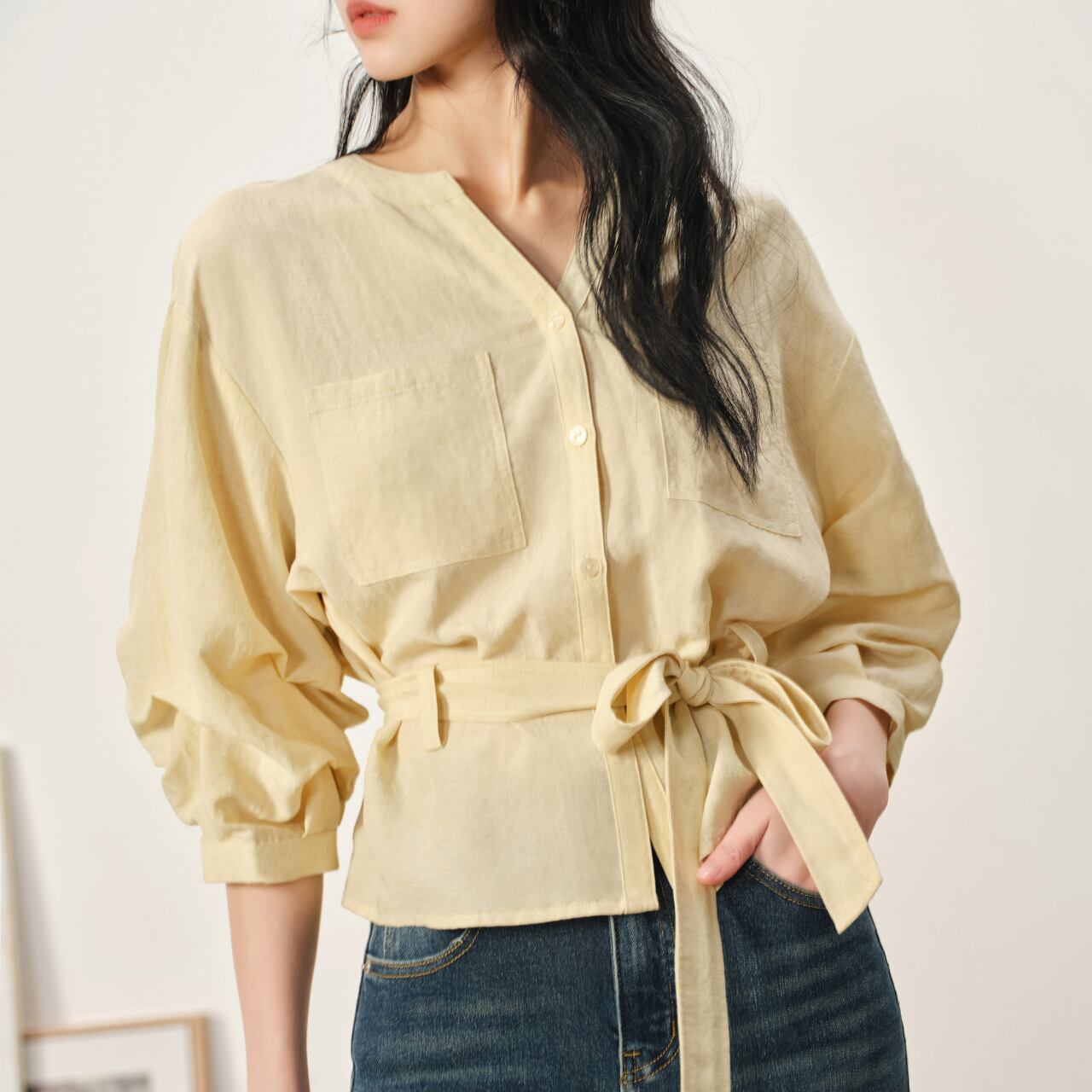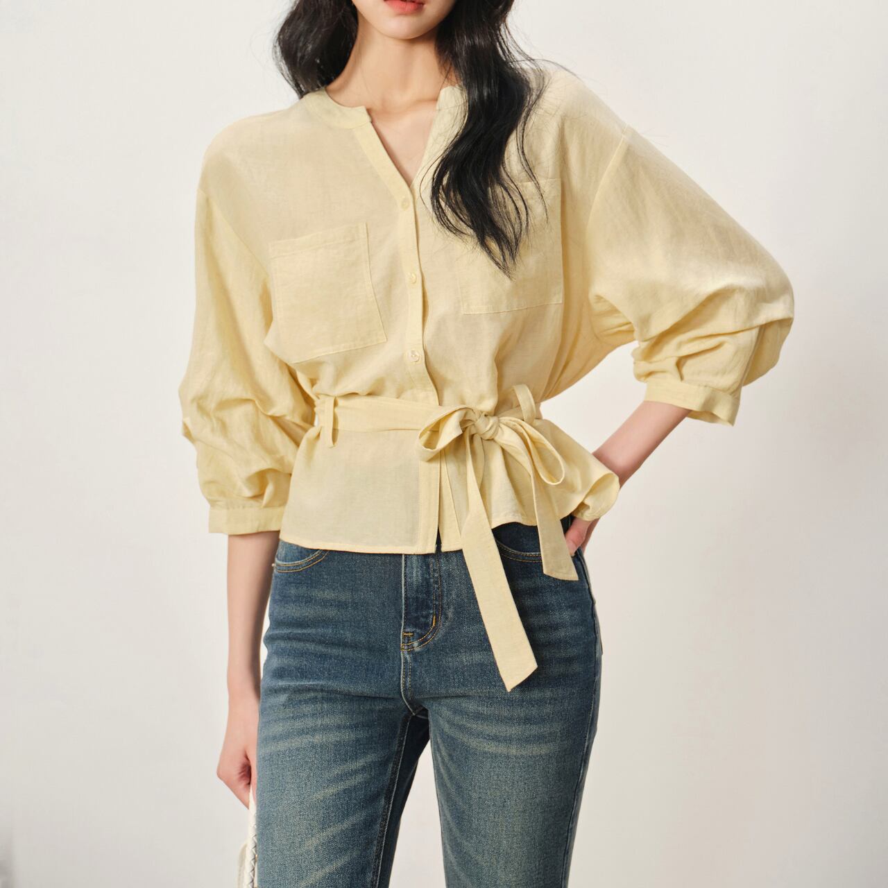 リボン付きバンドカラー七分袖シャツ。上品なバンドカラーと、ウエストマークできるリボンが、女性らしさを引き立てます。シンプルなデザインながらも、さりげないこだわりで着こなしをワンランクアップ。普段使いはもちろん、お出かけスタイルにもぴったり◎ ◼️サイズ 【XS】 肩幅: 51cm 胸囲: 122cm 袖丈: 35.5cm 【S】 肩幅: 52cm 胸囲: 126cm 袖丈: 36cm 【M】 肩幅: 53cm 胸囲: 130cm 袖丈: 36.5cm 【L】 肩幅: 54cm 胸囲: 134cm 袖丈: 37cm ◼️カラー ホワイト ベージュ ◼️素材 リヨセル ビスコース ナイロン リネン 【お届けについて】 こちらの商品は海外店舗より直接発送となる為、ご入金から1〜3週間でお届けいたします。 ◼️注意事項 ・タイミングによっては 商品在庫切れにより注文キャンセルとさせていただく恐れもございますので、予めご了承くださいませ。 ・日本製とは検品基準が異なる為、縫製などが若干甘い場合があります。 ・海外倉庫にて保管をしております。在庫情報に時差が生じますため在庫切れや生産中止、生産に遅れがある場合は、受注後でもキャンセルさせていただく恐れがございます。 ・商品の色味は、お手持ちのスマートフォンの画面によって実物と若干異なる場合がございます。 ・発送時期によりデザイン仕様(細部、素材など)の変更がある場合がございます。 ・イメージ違いやサイズ交換等、お客さまご都合による交換、返品は対応出来かねます。 ———————————— 誠に恐れ入りますが、ご購入前に以下をご確認頂きご承諾の上お買い求めくださいませ。 →https://petitelune.official.ec/about ————————————
