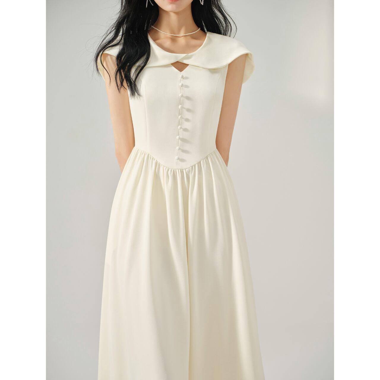 フロントボタンとAラインシルエットが魅力的なミディ丈ワンピース。 上品な雰囲気で、旅行やちょっとしたお出かけにもぴったりです◎ 着るだけで女性らしいシルエットを演出してくれる、一枚持っていると便利なアイテムです。 ◼️サイズ 【XS】 肩幅:33cm 胸囲:82cm ウエスト:62cm 【S】 肩幅:34cm 胸囲:86cm ウエスト:66cm 【M】 肩幅:35cm 胸囲:90cm ウエスト:70cm 【L】 肩幅:36cm 胸囲:94cm ウエスト:74cm 【XL】 肩幅:37cm 胸囲:98cm ウエスト:78cm ◼️カラー ベージュ ◼️素材 ポリエステル 【お届けについて】 こちらの商品は海外店舗より直接発送となる為、ご入金から1〜3週間でお届けいたします。 ◼️注意事項 ・タイミングによっては 商品在庫切れにより注文キャンセルとさせていただく恐れもございますので、予めご了承くださいませ。 ・日本製とは検品基準が異なる為、縫製などが若干甘い場合があります。 ・海外倉庫にて保管をしております。在庫情報に時差が生じますため在庫切れや生産中止、生産に遅れがある場合は、受注後でもキャンセルさせていただく恐れがございます。 ・商品の色味は、お手持ちのスマートフォンの画面によって実物と若干異なる場合がございます。 ・発送時期によりデザイン仕様(細部、素材など)の変更がある場合がございます。 ・イメージ違いやサイズ交換等、お客さまご都合による交換、返品は対応出来かねます。 ———————————— 誠に恐れ入りますが、ご購入前に以下をご確認頂きご承諾の上お買い求めくださいませ。 →https://petitelune.official.ec/about ————————————