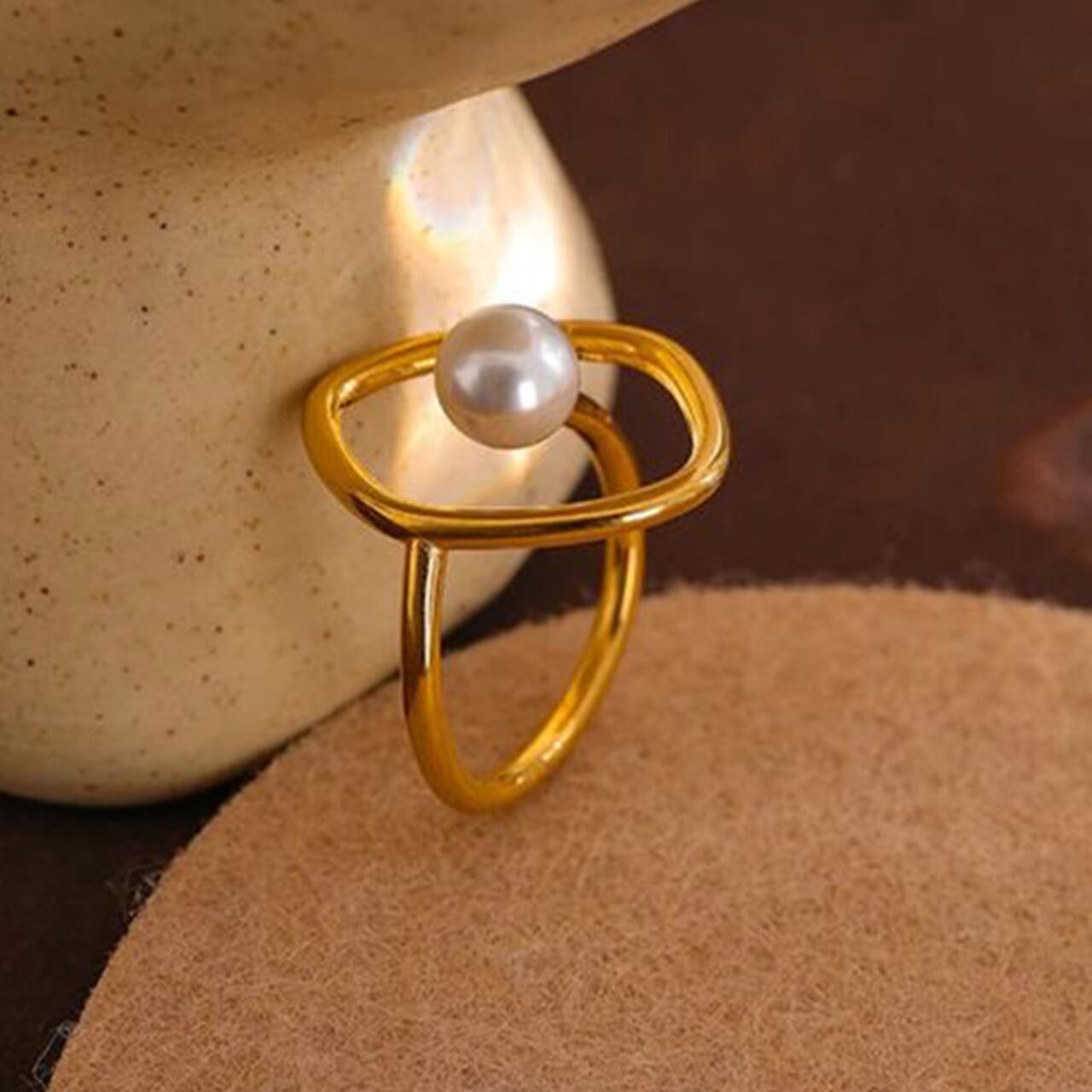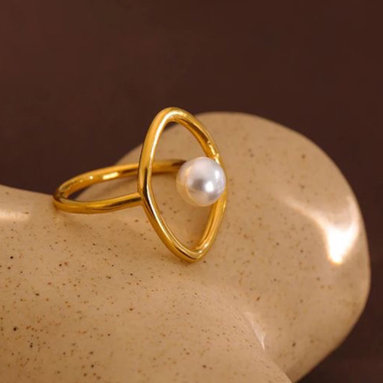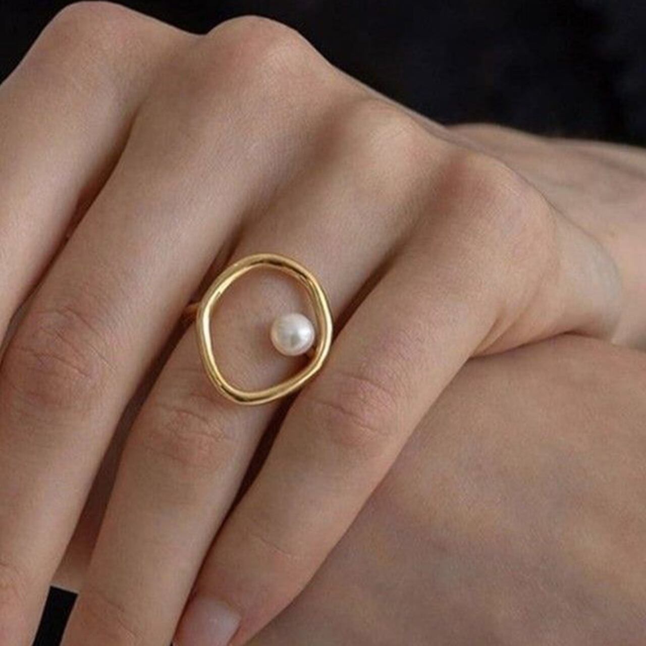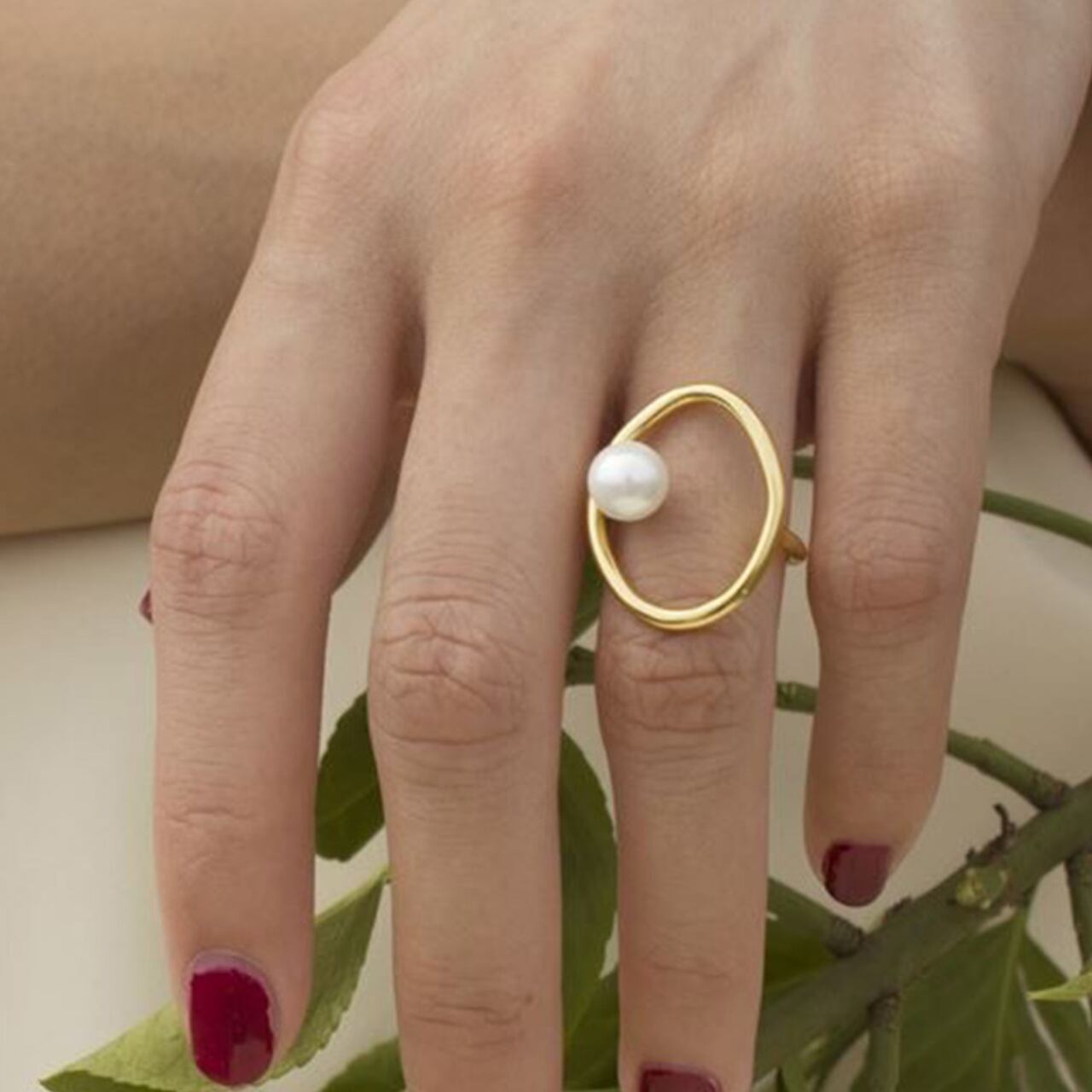 オーバル型のリングに、上品なパールがアクセントになったアシンメトリーデザイン。
