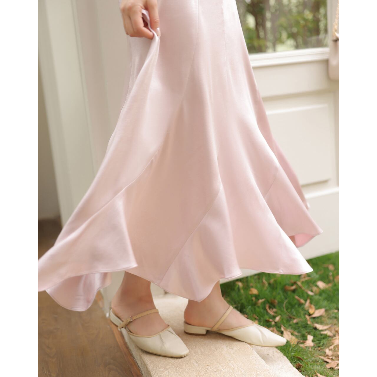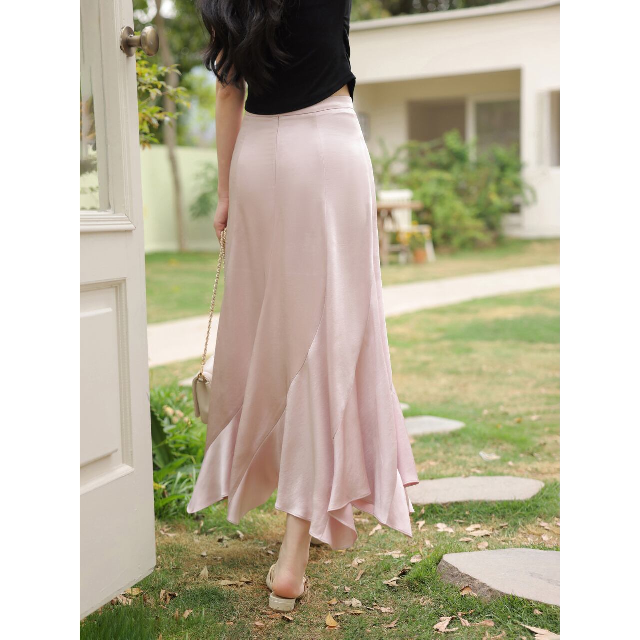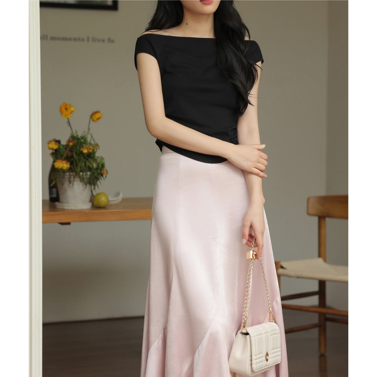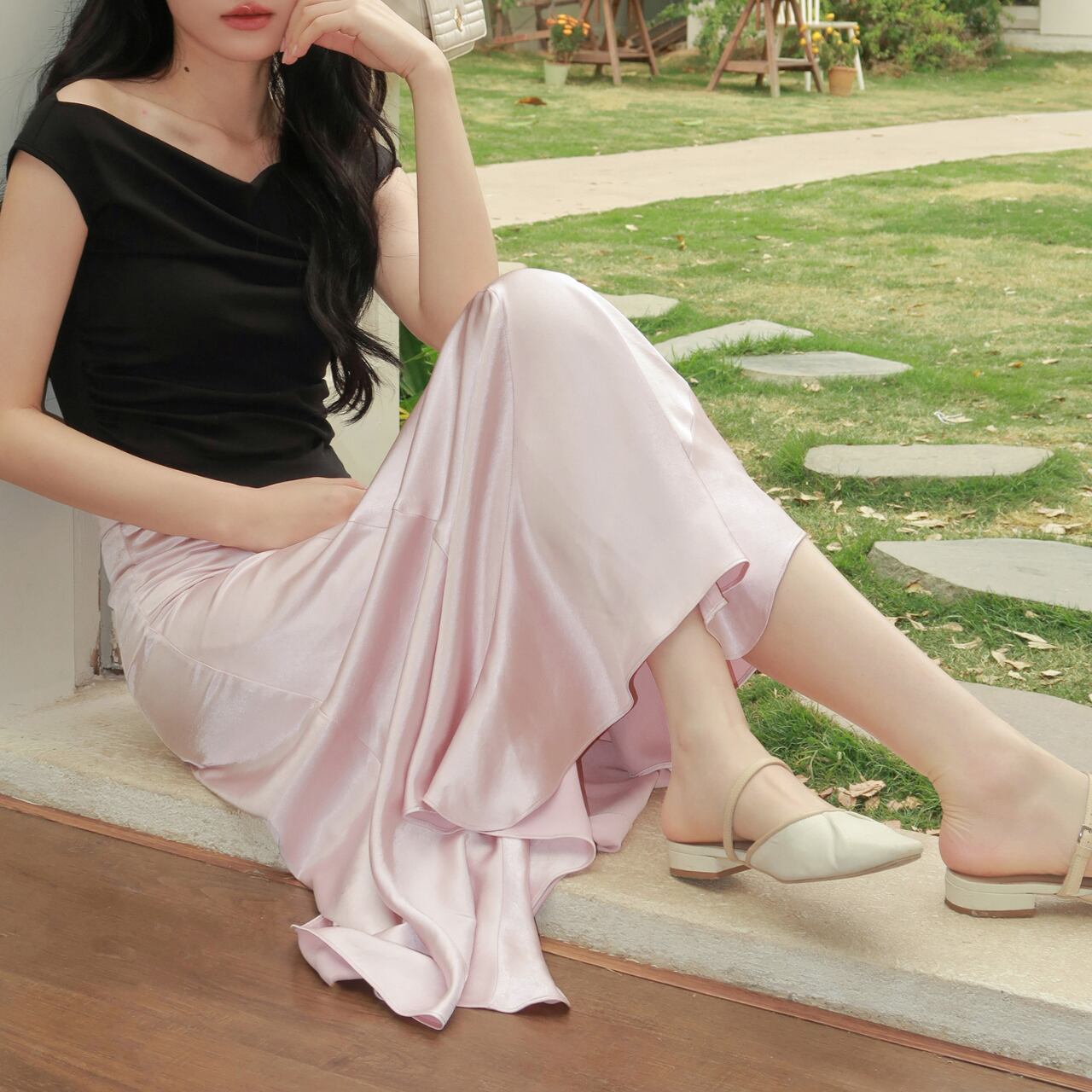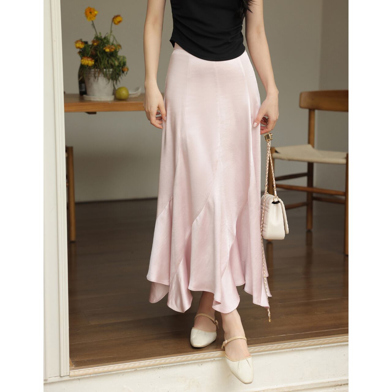 滑らかなシルエットが美しい、Aラインのロングスカート。ハイウエストデザインで脚長効果も期待できます。シンプルながらも上品なデザインは、デイリーユースから特別な日まで幅広く活躍します。