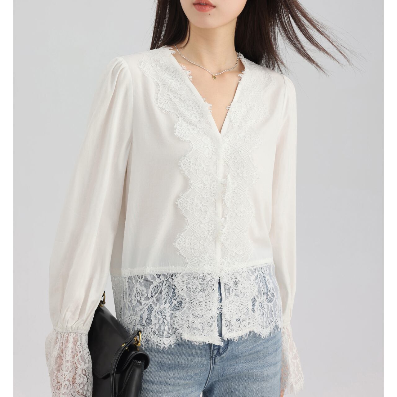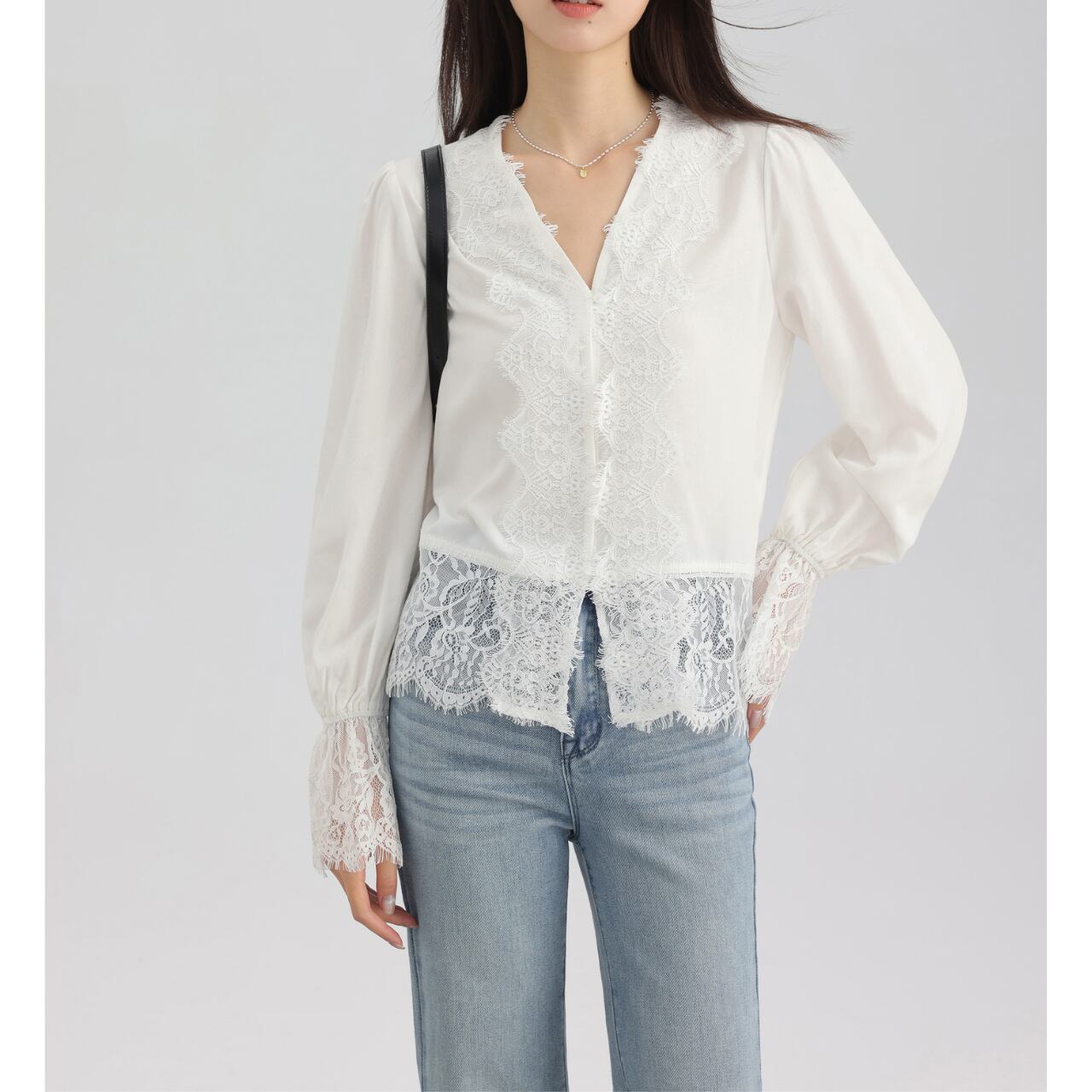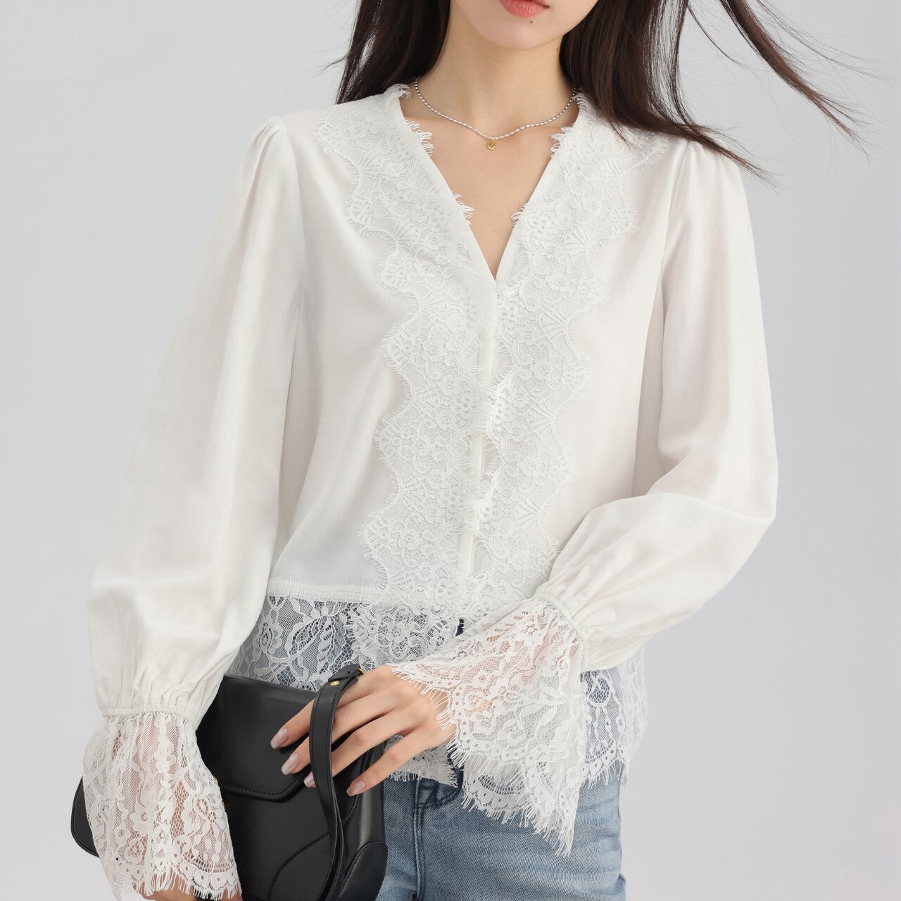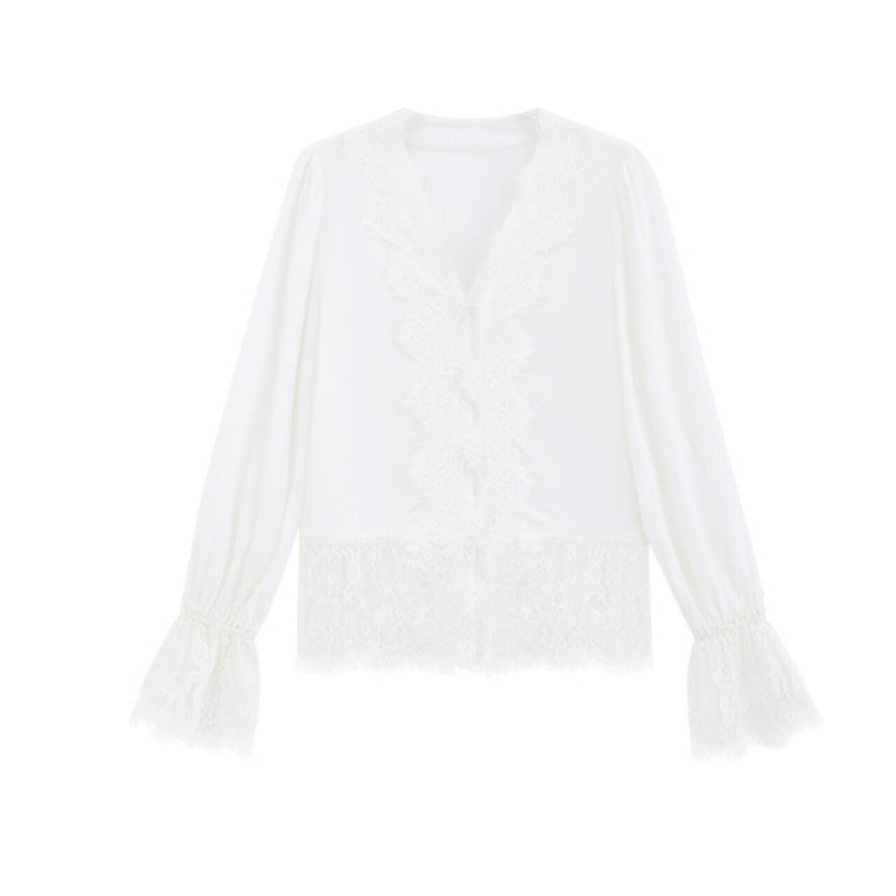 ベルスリーブ レーストリム ロングスリーブ ブラウス 00090