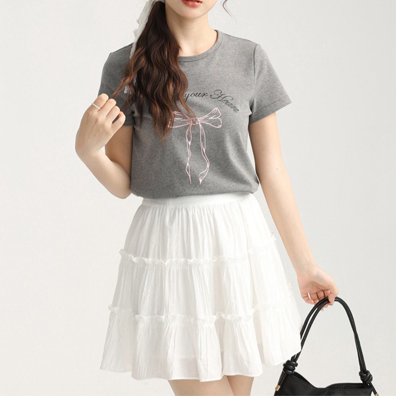 ボックスシルエットの半袖クルーネックTシャツ。シンプルながらも、さりげないプリントが目を惹く一枚です。カジュアルなスタイルにぴったり。デイリーユースはもちろん、お出かけ着としても活躍します◎