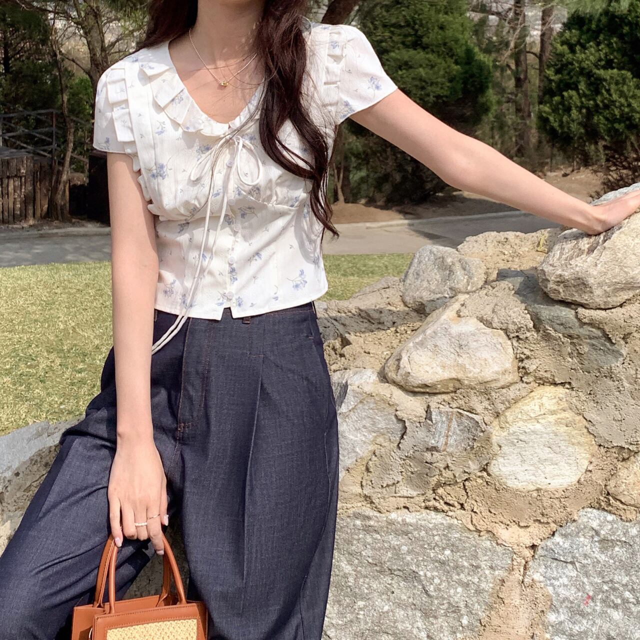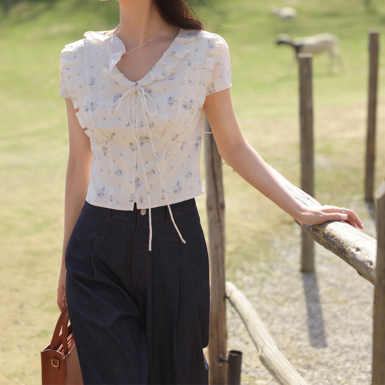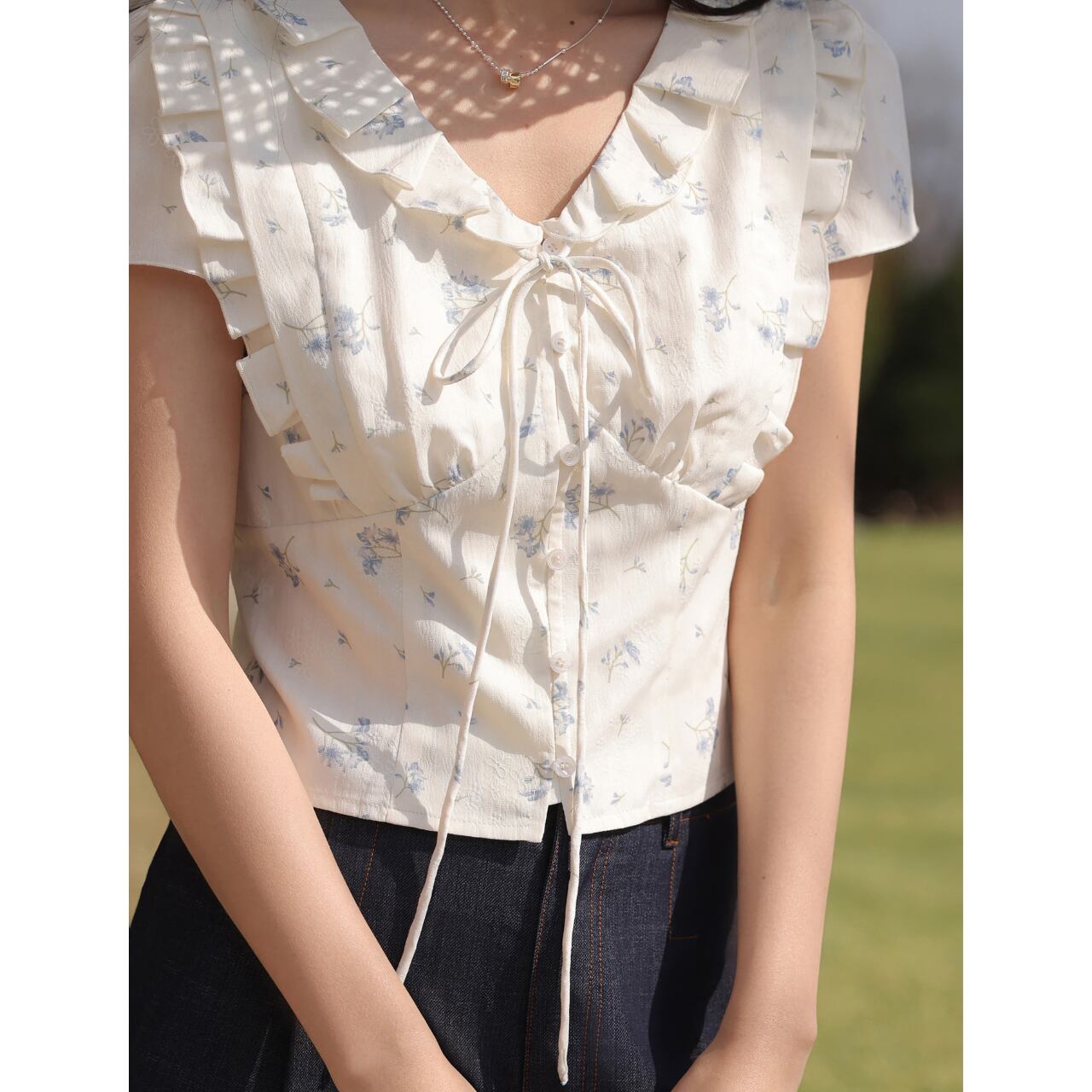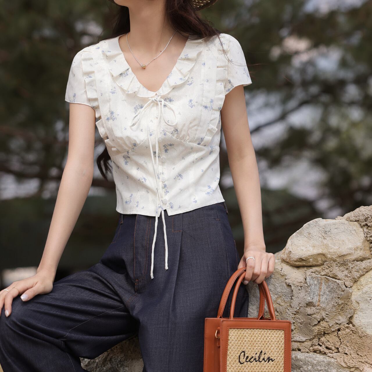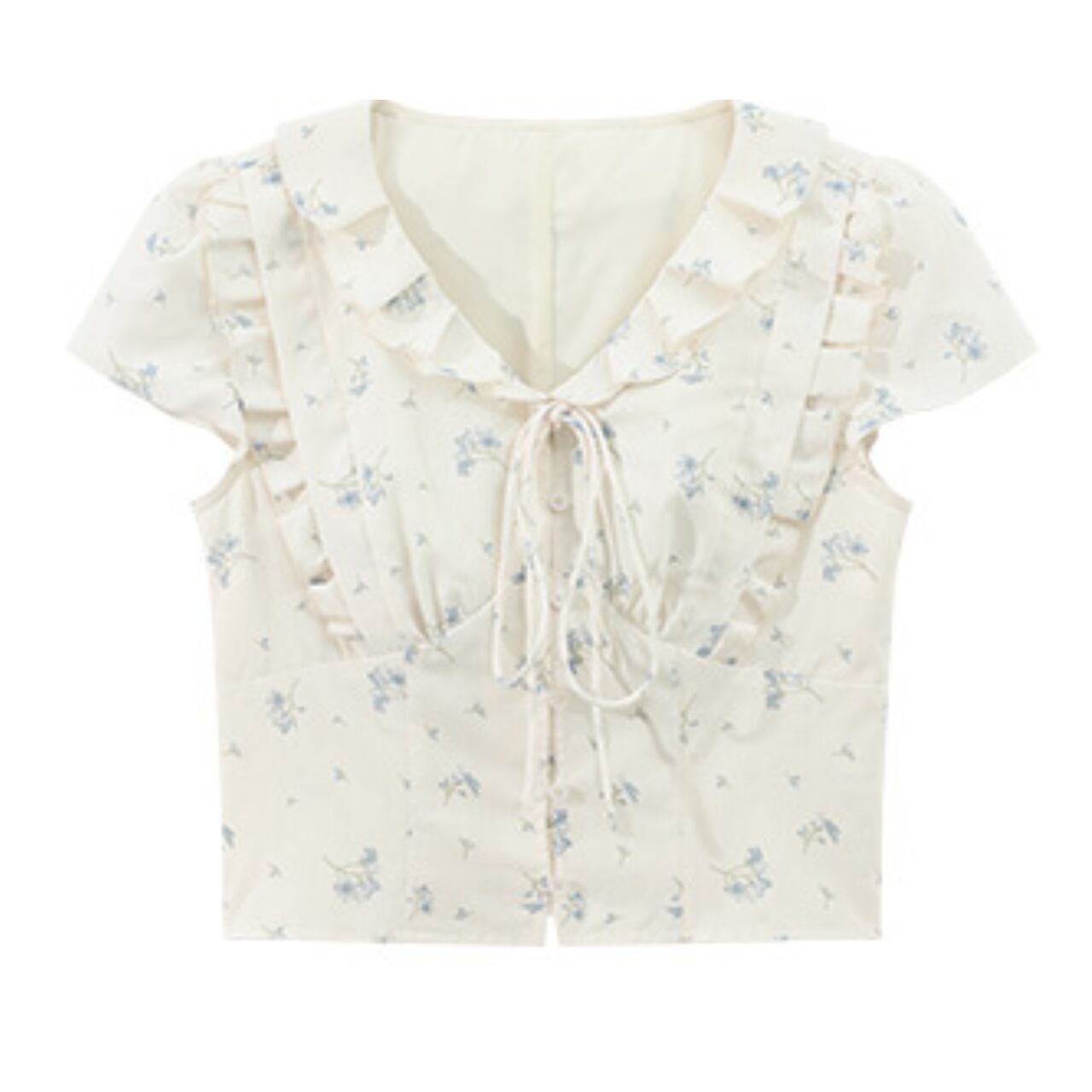 フレンチスリーブVネックボウタイブラウス。上品さと大人カジュアル感を兼ね備えた、一枚で着映えするブラウスです。旅行やちょっとしたお出かけにもおすすめです◎