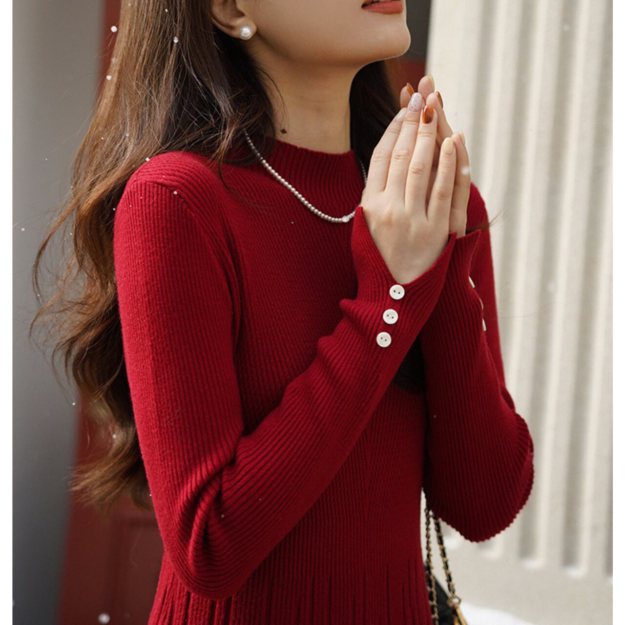 ハイネックとプリーツスカートが上品さを演出するニットワンピース。 落ち着いた雰囲気で、大人の女性らしさを引き立てます。 デイリーユースはもちろん、ちょっとしたお出かけにもぴったり◎ ◼️サイズ 【S】 肩幅: 34cm 胸囲: 82cm 着丈: 112cm ウエスト: 70cm 【M】 肩幅: 36cm 胸囲: 86cm 着丈: 115cm ウエスト: 74cm 【L】 肩幅: 38cm 胸囲: 90cm 着丈: 118cm ウエスト: 78cm ◼️カラー レッド グレー ホワイト ブラック ◼️素材 ビスコース ナイロン ポリエステル アクリル 【お届けについて】 こちらの商品は海外店舗より直接発送となる為、ご入金から1〜3週間でお届けいたします。 ◼️注意事項 ・タイミングによっては 商品在庫切れにより注文キャンセルとさせていただく恐れもございますので、予めご了承くださいませ。 ・日本製とは検品基準が異なる為、縫製などが若干甘い場合があります。 ・海外倉庫にて保管をしております。在庫情報に時差が生じますため在庫切れや生産中止、生産に遅れがある場合は、受注後でもキャンセルさせていただく恐れがございます。 ・商品の色味は、お手持ちのスマートフォンの画面によって実物と若干異なる場合がございます。 ・発送時期によりデザイン仕様(細部、素材など)の変更がある場合がございます。 ・イメージ違いやサイズ交換等、お客さまご都合による交換、返品は対応出来かねます。 ———————————— 誠に恐れ入りますが、ご購入前に以下をご確認頂きご承諾の上お買い求めくださいませ。 →https://petitelune.official.ec/about ————————————