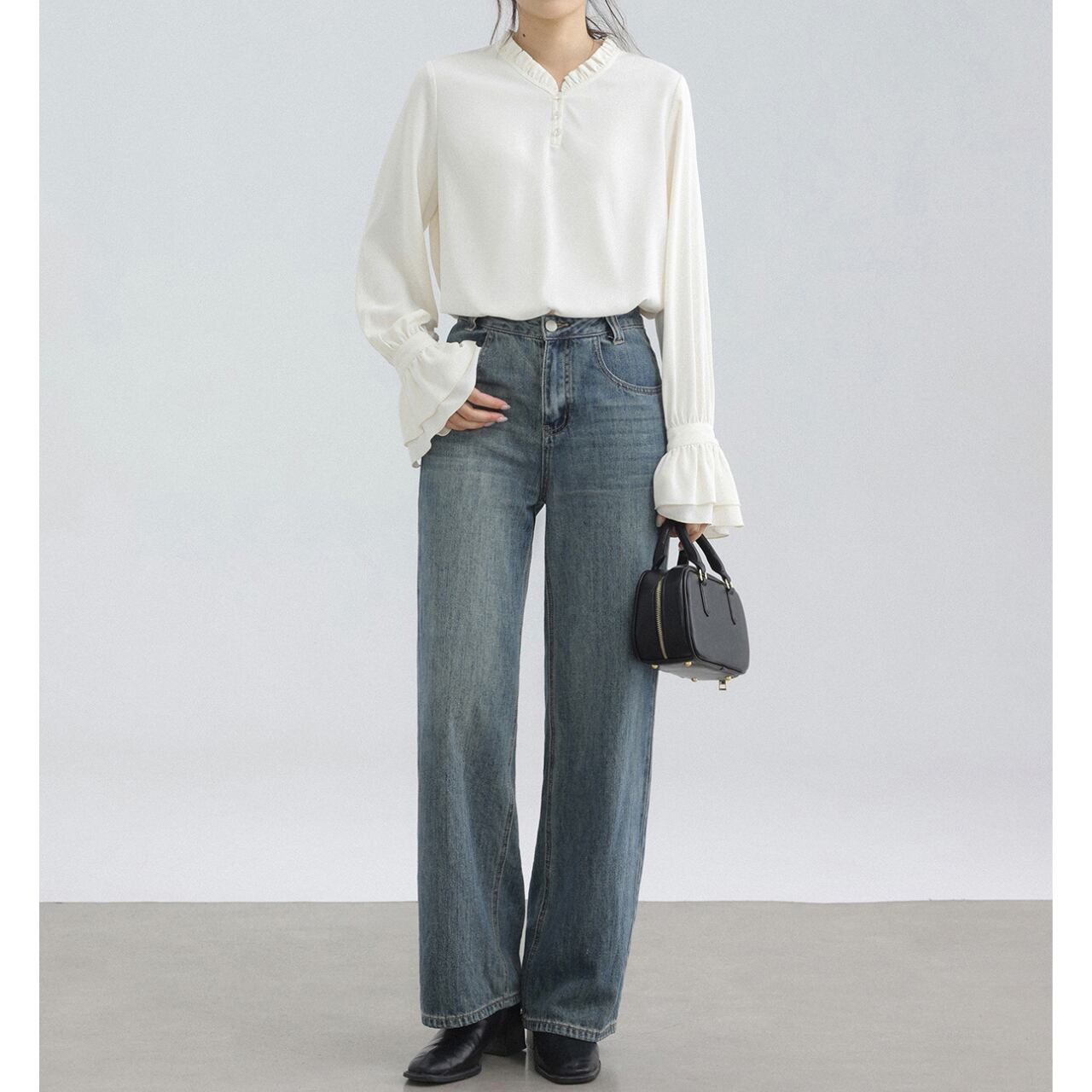 スタンドカラーとベルスリーブが織りなす、女性らしいブラウス。七分袖なので、春先から秋口までロングシーズン活躍します。シンプルなデザインながら、上品な雰囲気を演出してくれる一枚です。オフィスシーンからカジュアルなデートまで、幅広いコーディネートに合わせやすいのも魅力です。 ◼️サイズ 【XS】 肩幅: 36cm 胸囲: 96cm 袖丈: 63cm 【S】 肩幅: 37cm 胸囲: 100cm 袖丈: 65cm 【M】 肩幅: 38cm 胸囲: 104cm 袖丈: 66cm 【L】 肩幅: 39cm 胸囲: 108cm 袖丈: 67cm ◼️カラー ホワイト ◼️素材 ポリエステル 【お届けについて】 こちらの商品は海外店舗より直接発送となる為、ご入金から1〜3週間でお届けいたします。 ◼️注意事項 ・タイミングによっては 商品在庫切れにより注文キャンセルとさせていただく恐れもございますので、予めご了承くださいませ。 ・日本製とは検品基準が異なる為、縫製などが若干甘い場合があります。 ・海外倉庫にて保管をしております。在庫情報に時差が生じますため在庫切れや生産中止、生産に遅れがある場合は、受注後でもキャンセルさせていただく恐れがございます。 ・商品の色味は、お手持ちのスマートフォンの画面によって実物と若干異なる場合がございます。 ・発送時期によりデザイン仕様(細部、素材など)の変更がある場合がございます。 ・イメージ違いやサイズ交換等、お客さまご都合による交換、返品は対応出来かねます。 ———————————— 誠に恐れ入りますが、ご購入前に以下をご確認頂きご承諾の上お買い求めくださいませ。 →https://petitelune.official.ec/about ————————————