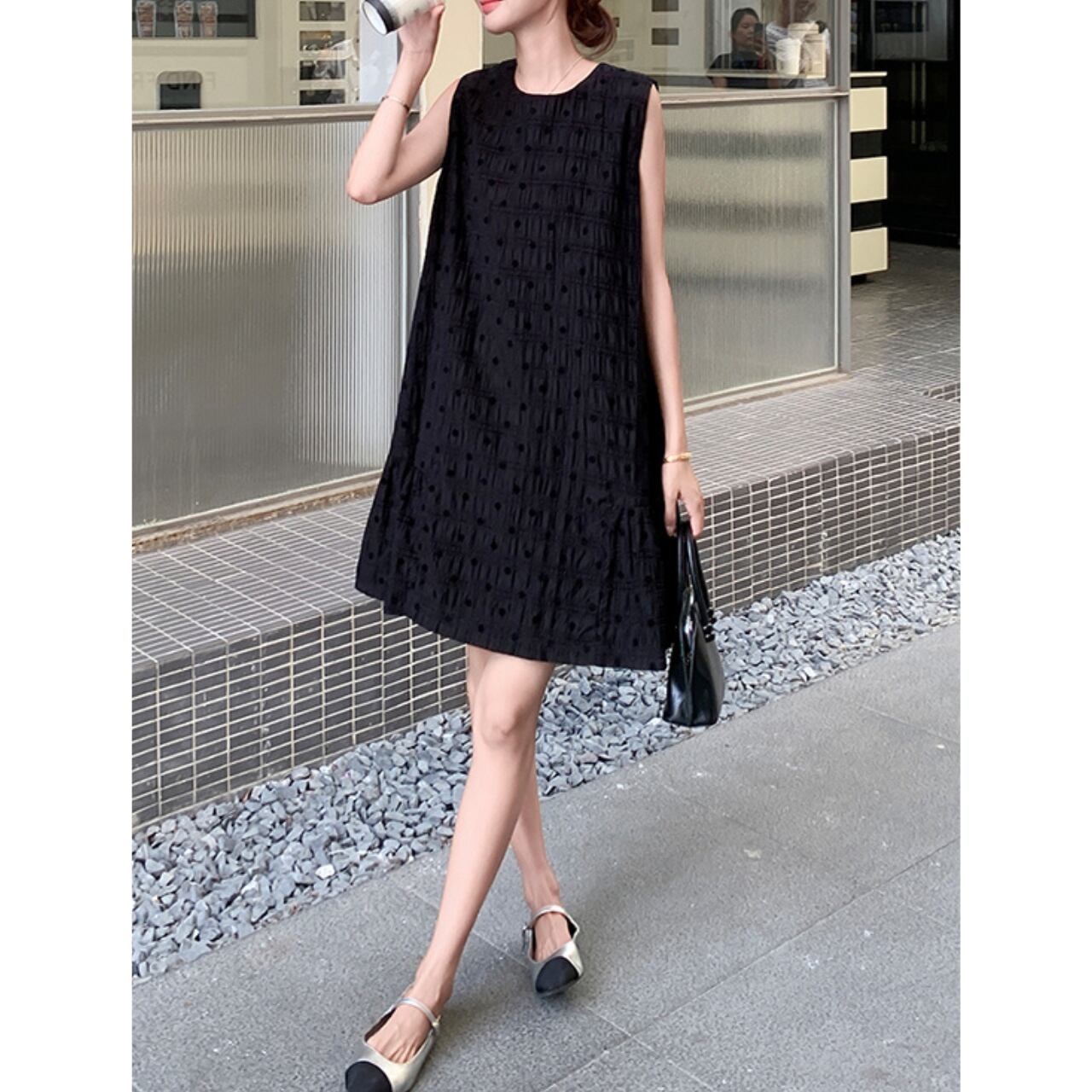 Aラインシルエットが美しいノースリーブワンピース。フレアヘムのデザインが女性らしさを演出します。旅行やちょっとしたお出かけにもぴったり◎ 着心地も快適です。 ◼️サイズ 【S】 肩幅: 35cm 胸囲: 116cm 着丈: 83cm 【M】 肩幅: 36cm 胸囲: 120cm 着丈: 84cm 【L】 肩幅: 37cm 胸囲: 124cm 着丈: 85cm 【XL】 肩幅: 38cm 胸囲: 128cm 着丈: 86cm ◼️カラー ブラック ◼️素材 画像参照 【お届けについて】 こちらの商品は海外店舗より直接発送となる為、ご入金から1〜3週間でお届けいたします。 ◼️注意事項 ・タイミングによっては 商品在庫切れにより注文キャンセルとさせていただく恐れもございますので、予めご了承くださいませ。 ・日本製とは検品基準が異なる為、縫製などが若干甘い場合があります。 ・海外倉庫にて保管をしております。在庫情報に時差が生じますため在庫切れや生産中止、生産に遅れがある場合は、受注後でもキャンセルさせていただく恐れがございます。 ・商品の色味は、お手持ちのスマートフォンの画面によって実物と若干異なる場合がございます。 ・発送時期によりデザイン仕様(細部、素材など)の変更がある場合がございます。 ・イメージ違いやサイズ交換等、お客さまご都合による交換、返品は対応出来かねます。 ———————————— 誠に恐れ入りますが、ご購入前に以下をご確認頂きご承諾の上お買い求めくださいませ。 →https://petitelune.official.ec/about ————————————