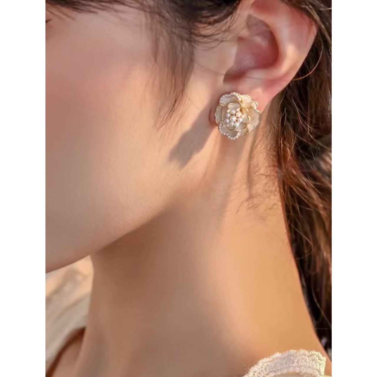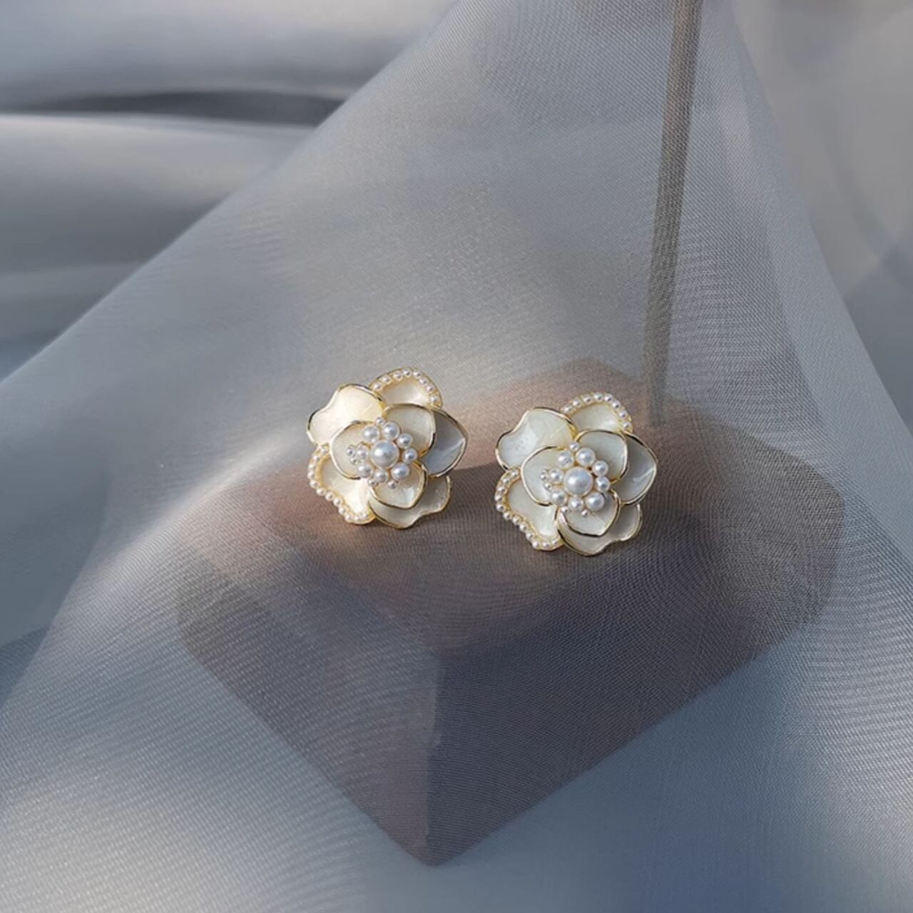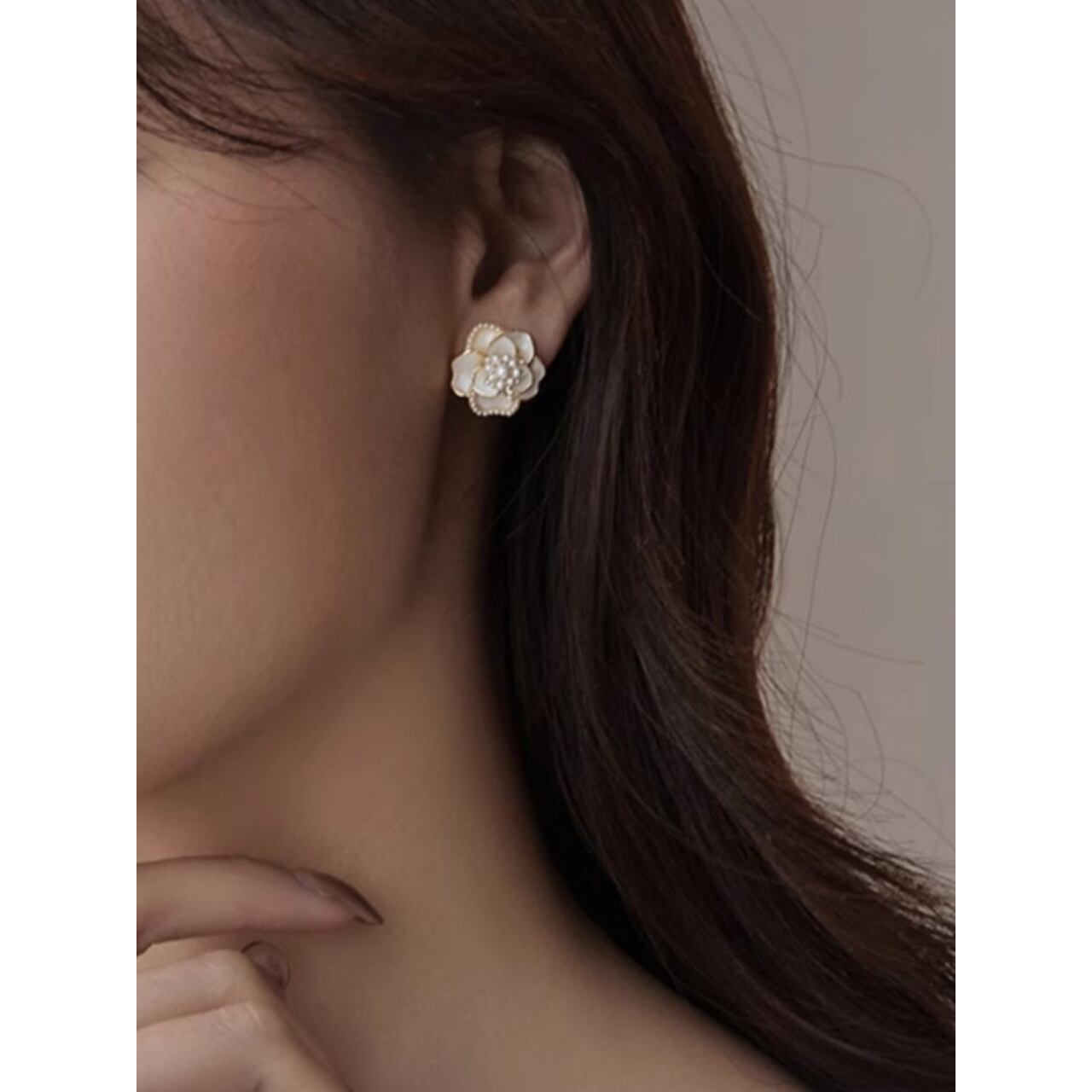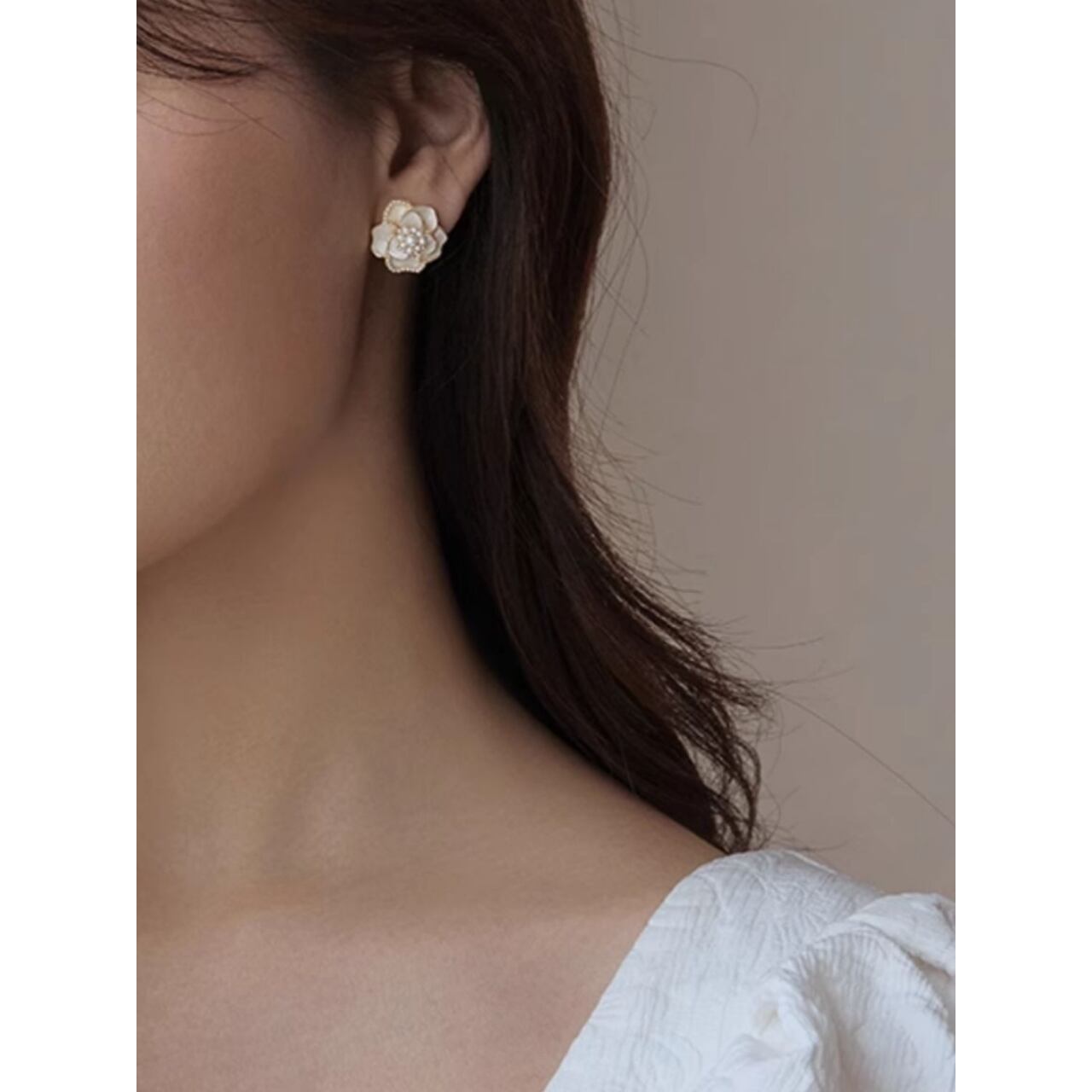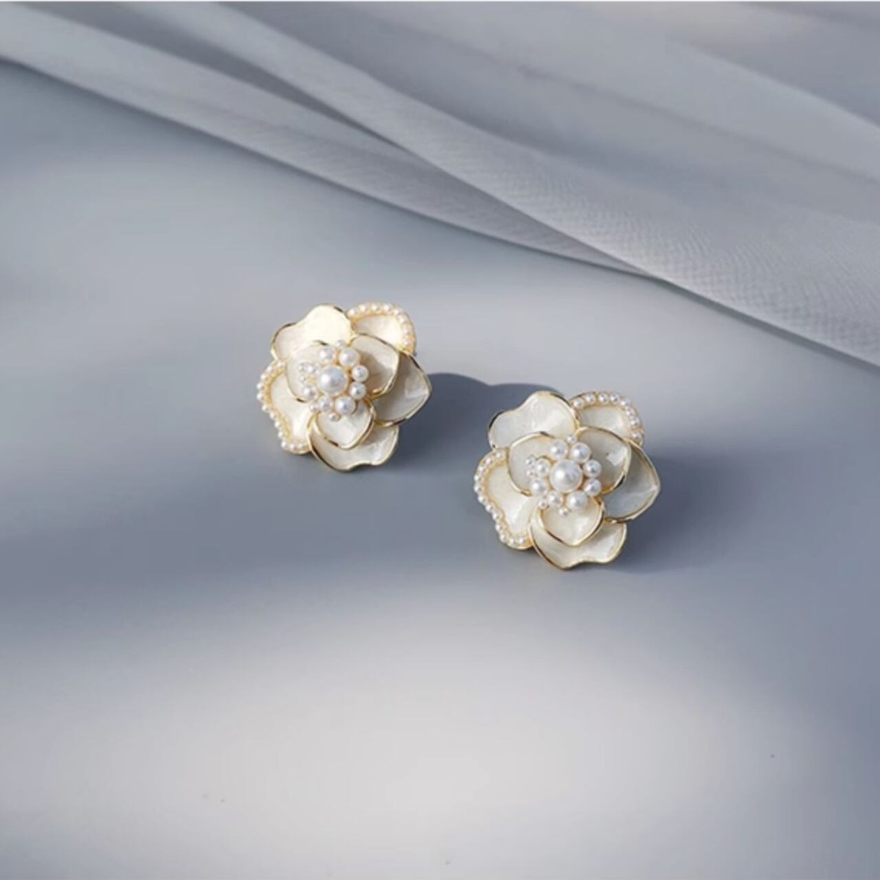 立体的な花びらが美しいフラワーモチーフのピアス。パールがあしらわれた上品なデザインは、デイリー使いから特別な日の装いまで幅広く活躍します。さりげない輝きが、あなたの魅力をさらに引き立てます。