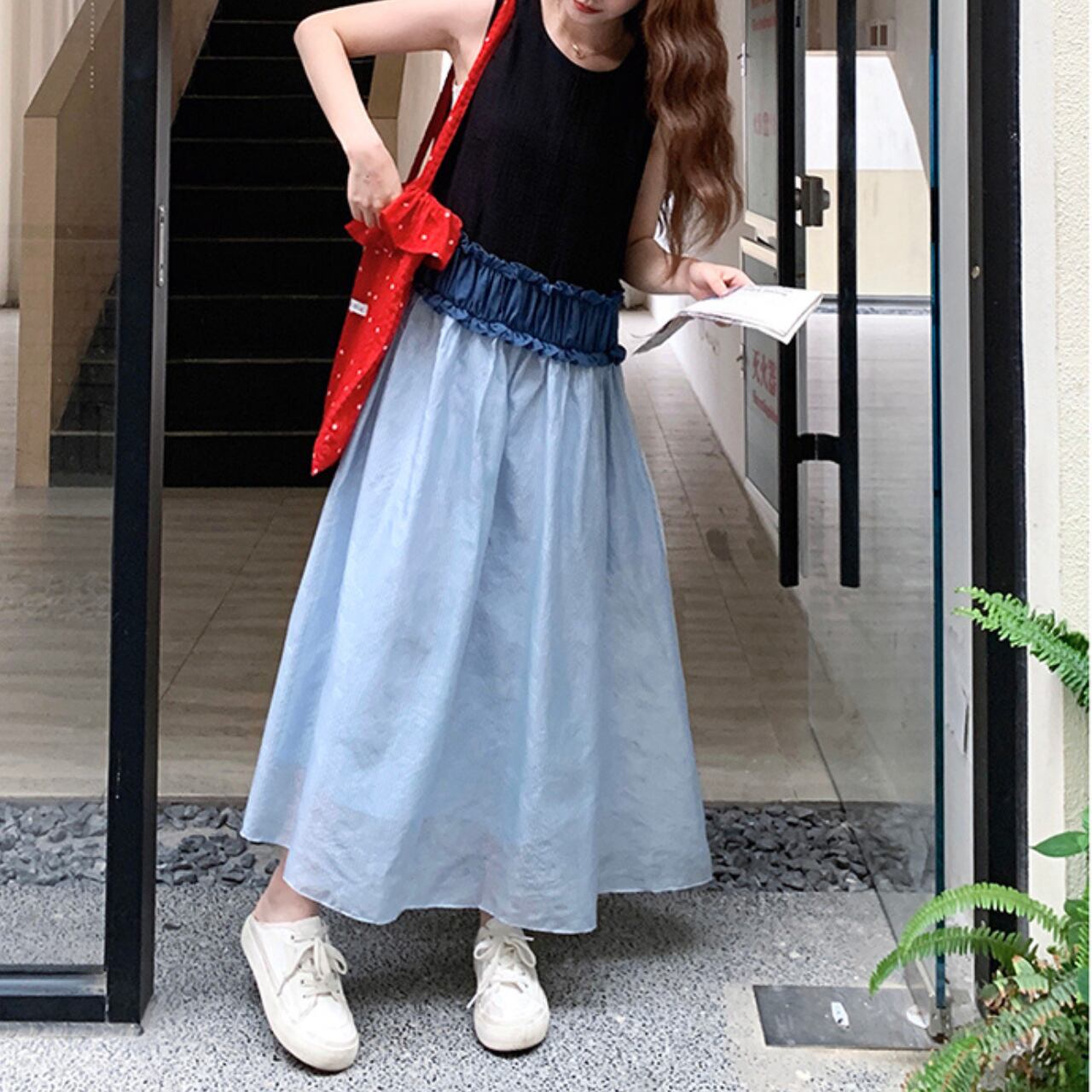 ストライプ柄切替デザインのノースリーブワンピース。 上質な黒のトップスと爽やかなライトブルーのAラインスカートの組み合わせが、洗練された大人カジュアルを演出します。 旅行や、ちょっとしたお出かけにもぴったり◎ ◼️サイズ 【S】 胸囲:94cm 着丈:121cm 【M】 胸囲:98cm 着丈:122cm 【L】 胸囲:102cm 着丈:123cm 【XL】 胸囲:106cm 着丈:124cm ◼️カラー ブルー ◼️素材 画像参照 【お届けについて】 こちらの商品は海外店舗より直接発送となる為、ご入金から1〜3週間でお届けいたします。 ◼️注意事項 ・タイミングによっては 商品在庫切れにより注文キャンセルとさせていただく恐れもございますので、予めご了承くださいませ。 ・日本製とは検品基準が異なる為、縫製などが若干甘い場合があります。 ・海外倉庫にて保管をしております。在庫情報に時差が生じますため在庫切れや生産中止、生産に遅れがある場合は、受注後でもキャンセルさせていただく恐れがございます。 ・商品の色味は、お手持ちのスマートフォンの画面によって実物と若干異なる場合がございます。 ・発送時期によりデザイン仕様(細部、素材など)の変更がある場合がございます。 ・イメージ違いやサイズ交換等、お客さまご都合による交換、返品は対応出来かねます。 ———————————— 誠に恐れ入りますが、ご購入前に以下をご確認頂きご承諾の上お買い求めくださいませ。 →https://petitelune.official.ec/about ————————————