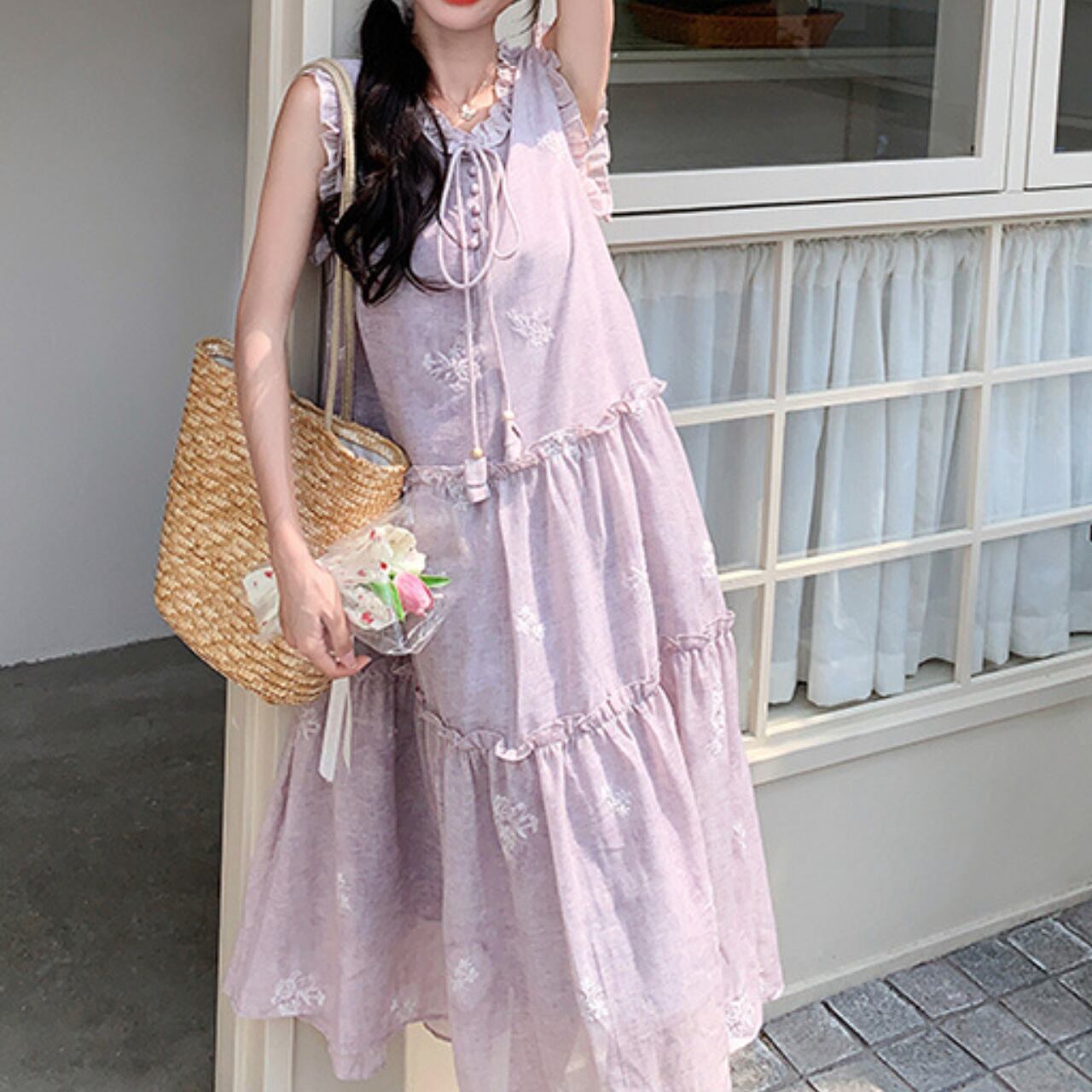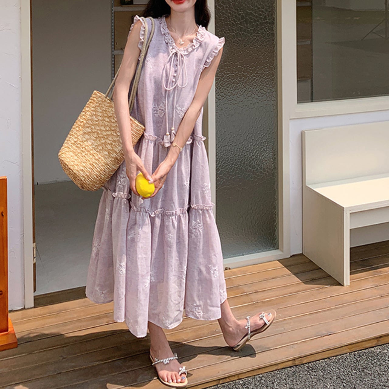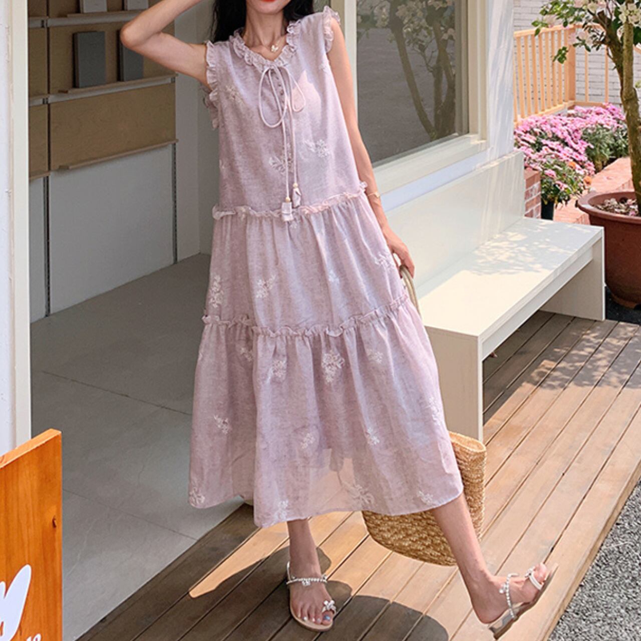 刺繍が美しいVネックノースリーブワンピース。 上品なフレアスカートが、女性らしいシルエットを演出します。 程よいカジュアル感とフェミニンさが調和し、旅行やデートなど様々なシーンで活躍します◎ ◼️サイズ 【S】 肩幅:37cm 胸囲:93cm ウエスト:102cm 【M】 肩幅:38cm 胸囲:97cm ウエスト:106cm 【L】 肩幅:39cm 胸囲:101cm ウエスト:110cm 【XL】 肩幅:40cm 胸囲:105cm ウエスト:114cm ◼️カラー パープル ◼️素材 画像参照 【お届けについて】 こちらの商品は海外店舗より直接発送となる為、ご入金から1〜3週間でお届けいたします。 ◼️注意事項 ・タイミングによっては 商品在庫切れにより注文キャンセルとさせていただく恐れもございますので、予めご了承くださいませ。 ・日本製とは検品基準が異なる為、縫製などが若干甘い場合があります。 ・海外倉庫にて保管をしております。在庫情報に時差が生じますため在庫切れや生産中止、生産に遅れがある場合は、受注後でもキャンセルさせていただく恐れがございます。 ・商品の色味は、お手持ちのスマートフォンの画面によって実物と若干異なる場合がございます。 ・発送時期によりデザイン仕様(細部、素材など)の変更がある場合がございます。 ・イメージ違いやサイズ交換等、お客さまご都合による交換、返品は対応出来かねます。 ———————————— 誠に恐れ入りますが、ご購入前に以下をご確認頂きご承諾の上お買い求めくださいませ。 →https://petitelune.official.ec/about ————————————