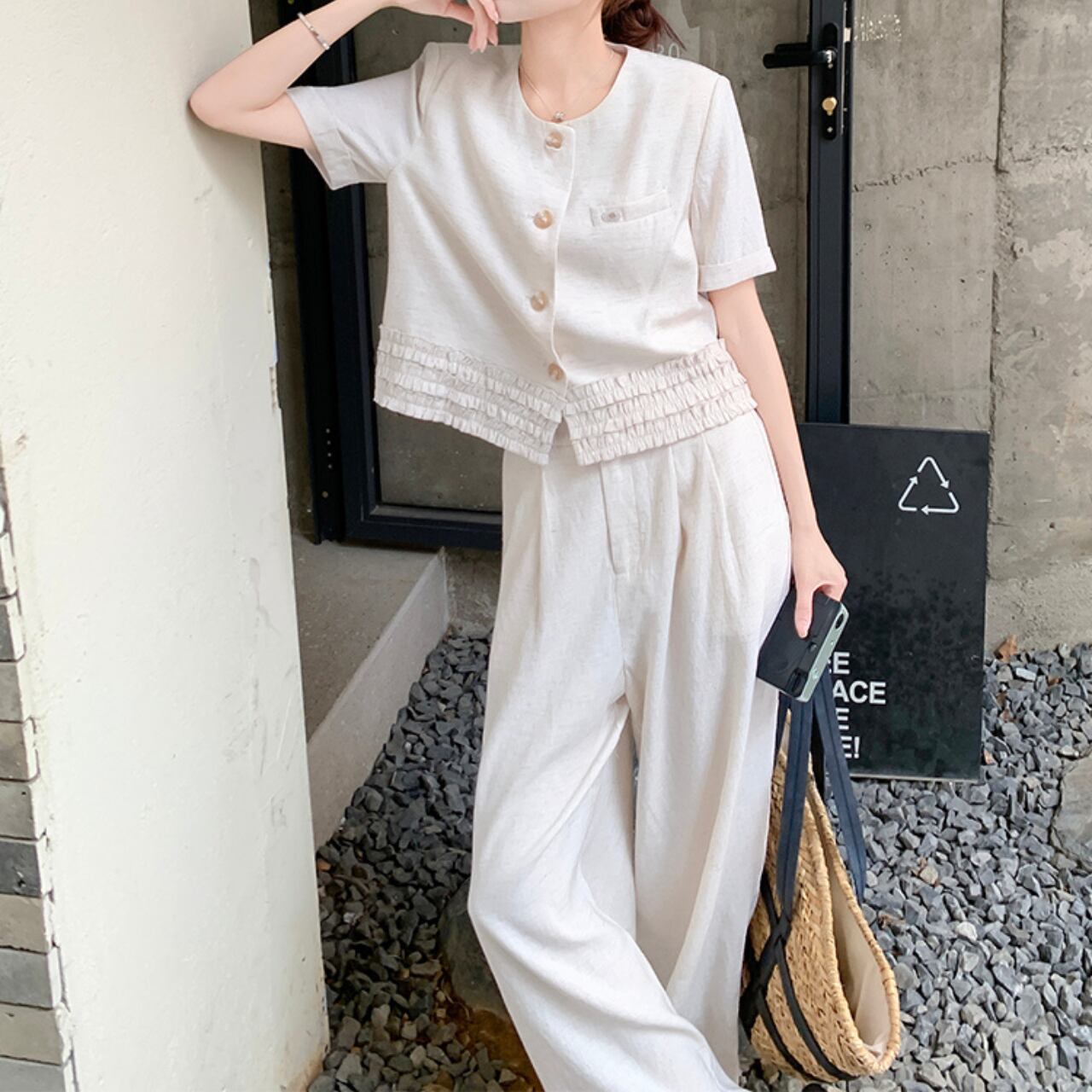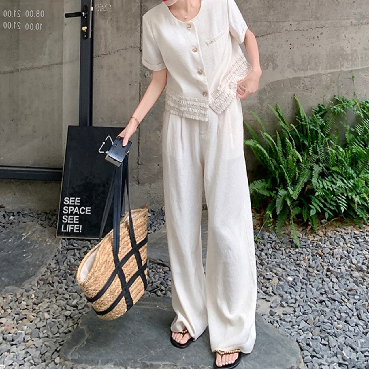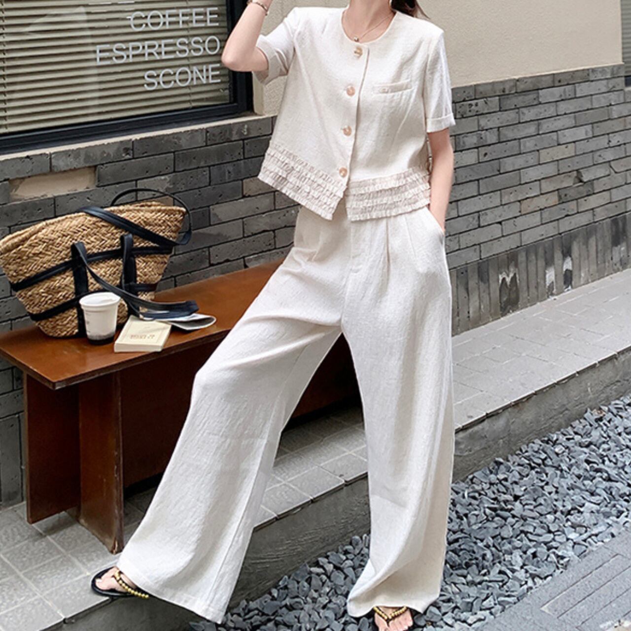 ショート丈ジャケットとワイドパンツのセットアップ。 シンプルながらも洗練されたデザインで、大人の女性の魅力を引き立てます。 普段使いはもちろん、旅行やちょっとしたお出かけにも最適◎ ◼️サイズ 【S】 胸囲:94cm 着丈:49cm 袖丈:17cm 【M】 胸囲:98cm 着丈:50cm 袖丈:18cm 【L】 胸囲:102cm 着丈:51cm 袖丈:19cm 【XL】 胸囲:106cm 着丈:52cm 袖丈:20cm 【S】 ウエスト: 64cm スカート丈: 99cm 【M】 ウエスト: 68cm スカート丈: 100cm 【L】 ウエスト: 72cm スカート丈: 101cm 【XL】 ウエスト: 76cm スカート丈: 102cm ◼️カラー ホワイト 【お届けについて】 こちらの商品は海外店舗より直接発送となる為、ご入金から1〜3週間でお届けいたします。 ◼️注意事項 ・タイミングによっては 商品在庫切れにより注文キャンセルとさせていただく恐れもございますので、予めご了承くださいませ。 ・日本製とは検品基準が異なる為、縫製などが若干甘い場合があります。 ・海外倉庫にて保管をしております。在庫情報に時差が生じますため在庫切れや生産中止、生産に遅れがある場合は、受注後でもキャンセルさせていただく恐れがございます。 ・商品の色味は、お手持ちのスマートフォンの画面によって実物と若干異なる場合がございます。 ・発送時期によりデザイン仕様(細部、素材など)の変更がある場合がございます。 ・イメージ違いやサイズ交換等、お客さまご都合による交換、返品は対応出来かねます。 ———————————— 誠に恐れ入りますが、ご購入前に以下をご確認頂きご承諾の上お買い求めくださいませ。 →https://petitelune.official.ec/about ————————————