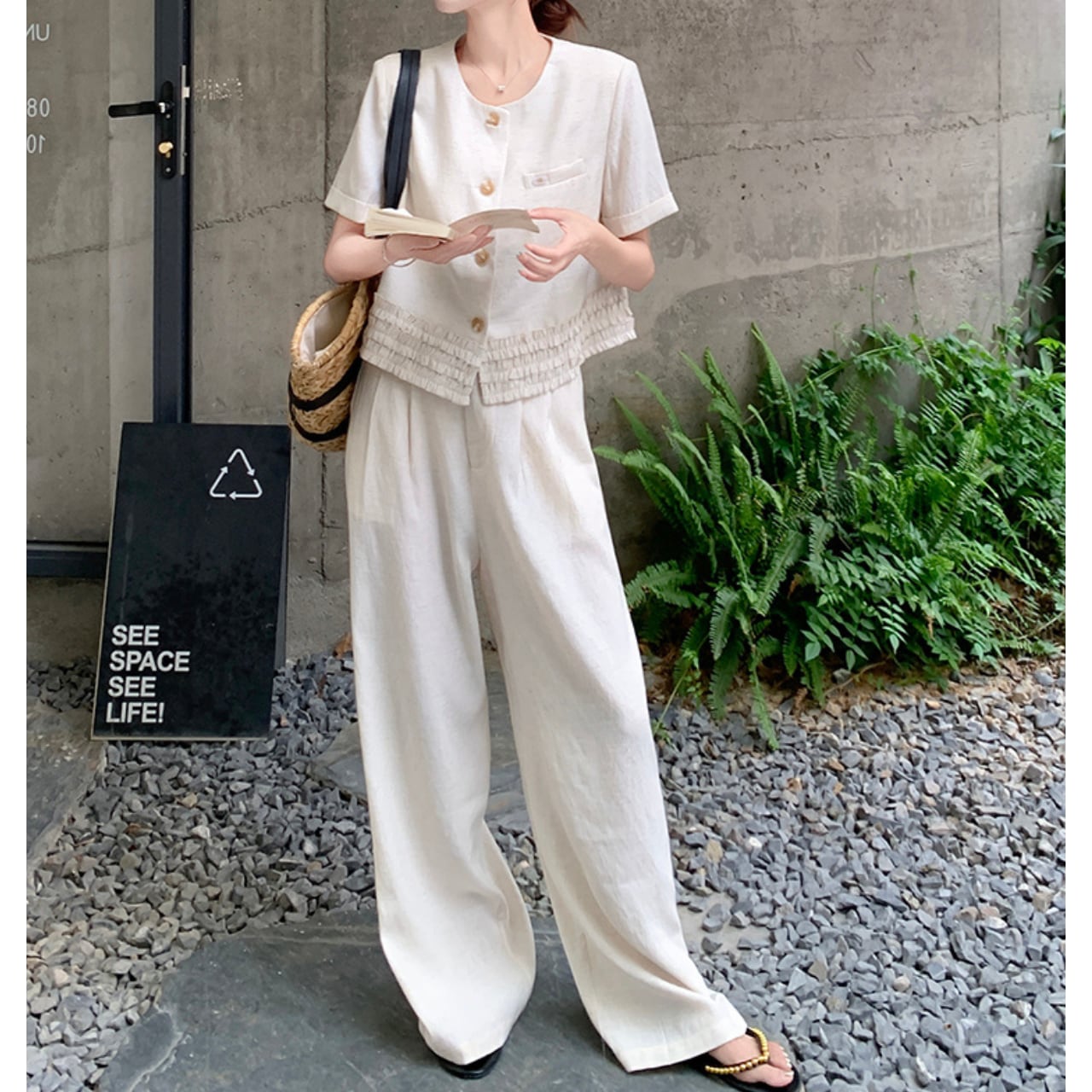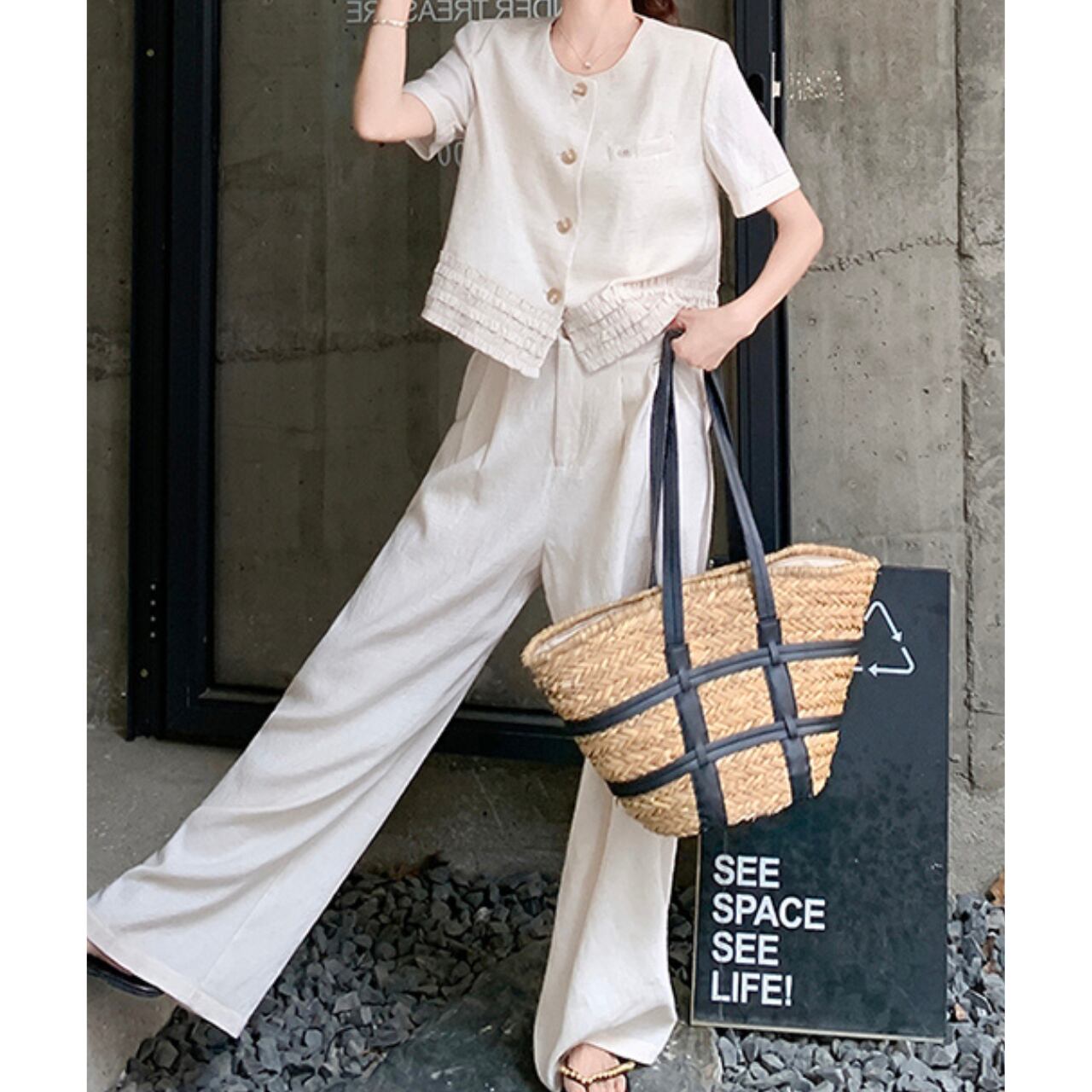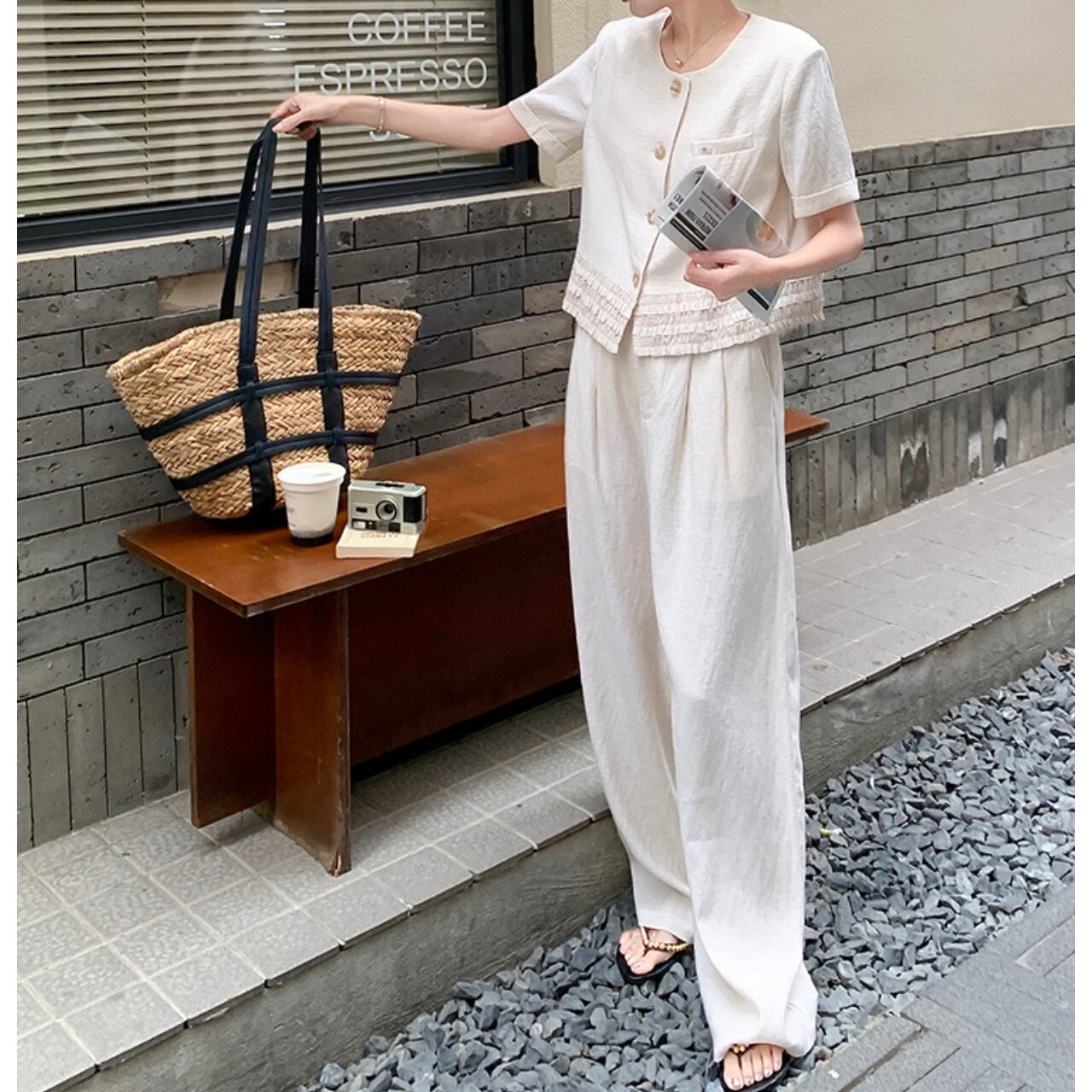 ショート丈ジャケットとワイドパンツのセットアップ。 シンプルながらも洗練されたデザインで、大人の女性の魅力を引き立てます。 普段使いはもちろん、旅行やちょっとしたお出かけにも最適◎ ◼️サイズ 【S】 胸囲:94cm 着丈:49cm 袖丈:17cm 【M】 胸囲:98cm 着丈:50cm 袖丈:18cm 【L】 胸囲:102cm 着丈:51cm 袖丈:19cm 【XL】 胸囲:106cm 着丈:52cm 袖丈:20cm 【S】 ウエスト: 64cm スカート丈: 99cm 【M】 ウエスト: 68cm スカート丈: 100cm 【L】 ウエスト: 72cm スカート丈: 101cm 【XL】 ウエスト: 76cm スカート丈: 102cm ◼️カラー ホワイト 【お届けについて】 こちらの商品は海外店舗より直接発送となる為、ご入金から1〜3週間でお届けいたします。 ◼️注意事項 ・タイミングによっては 商品在庫切れにより注文キャンセルとさせていただく恐れもございますので、予めご了承くださいませ。 ・日本製とは検品基準が異なる為、縫製などが若干甘い場合があります。 ・海外倉庫にて保管をしております。在庫情報に時差が生じますため在庫切れや生産中止、生産に遅れがある場合は、受注後でもキャンセルさせていただく恐れがございます。 ・商品の色味は、お手持ちのスマートフォンの画面によって実物と若干異なる場合がございます。 ・発送時期によりデザイン仕様(細部、素材など)の変更がある場合がございます。 ・イメージ違いやサイズ交換等、お客さまご都合による交換、返品は対応出来かねます。 ———————————— 誠に恐れ入りますが、ご購入前に以下をご確認頂きご承諾の上お買い求めくださいませ。 →https://petitelune.official.ec/about ————————————