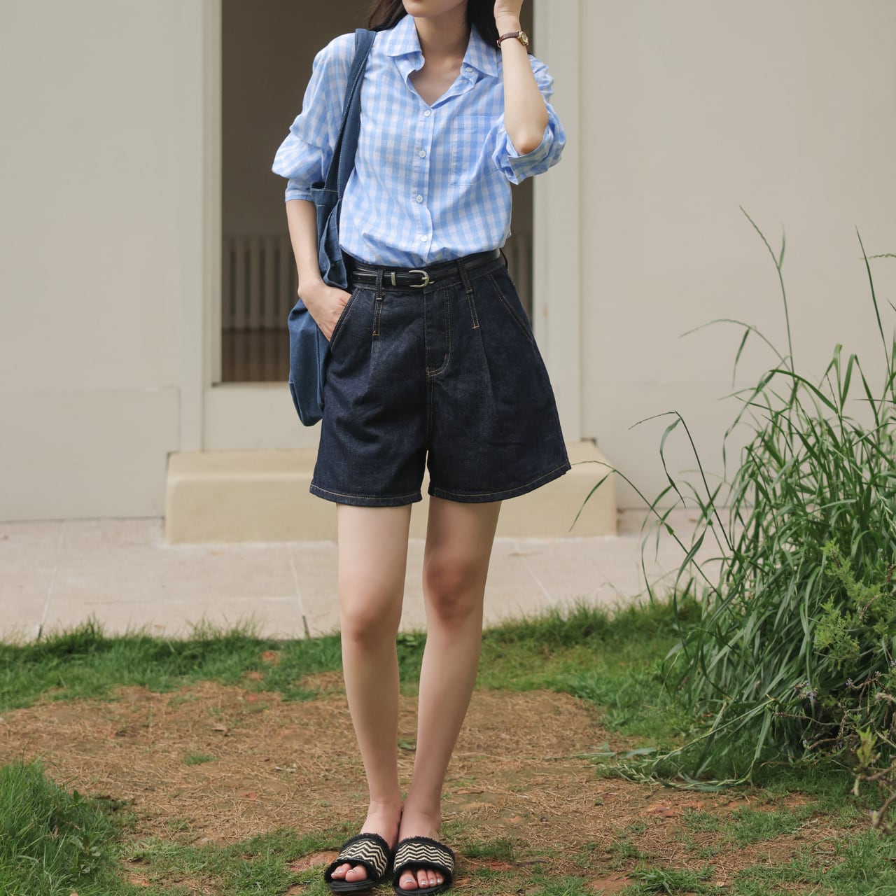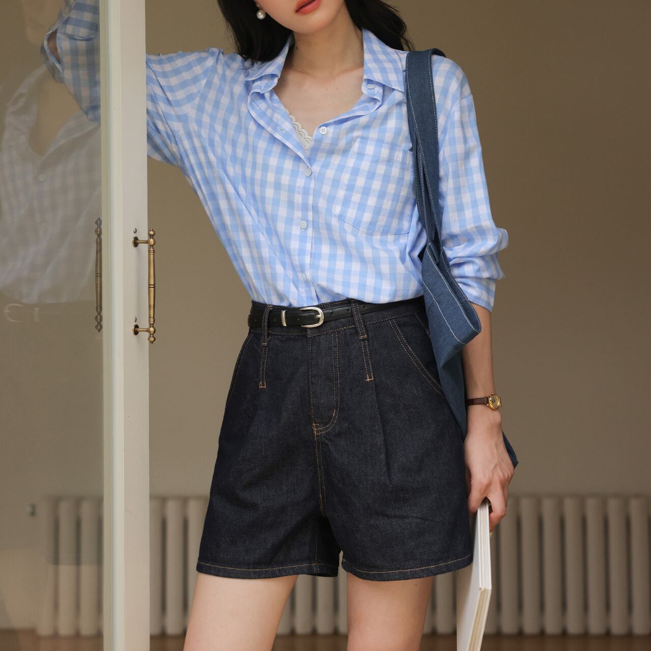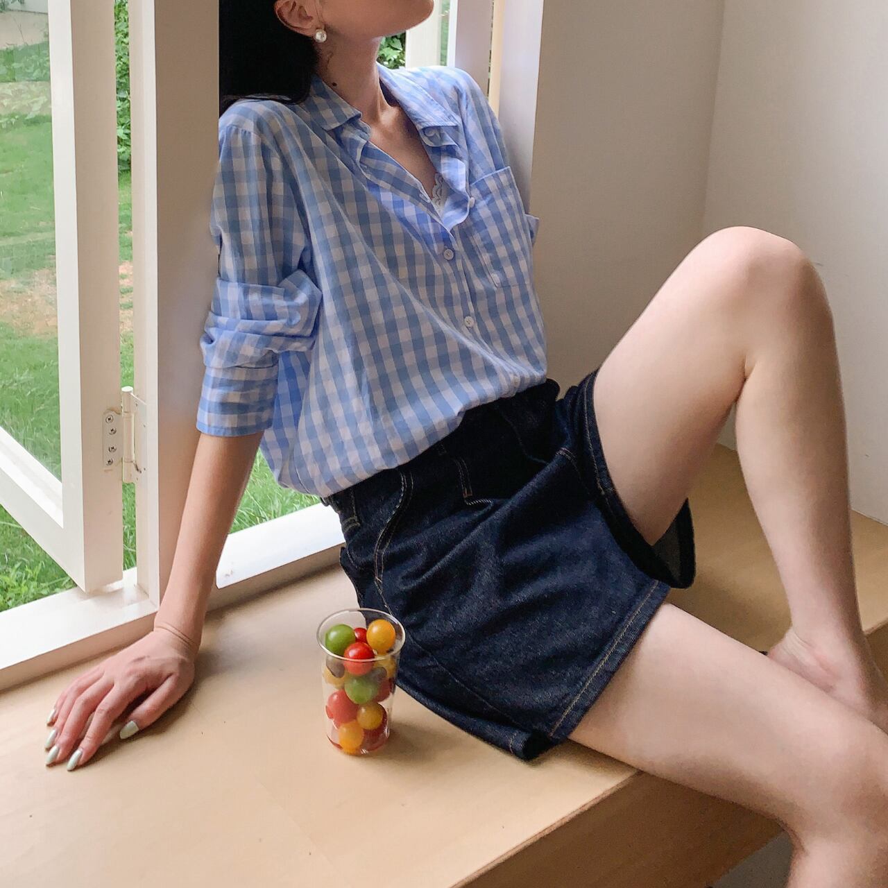 ギンガムチェック柄 ボタンダウンシャツ 00165