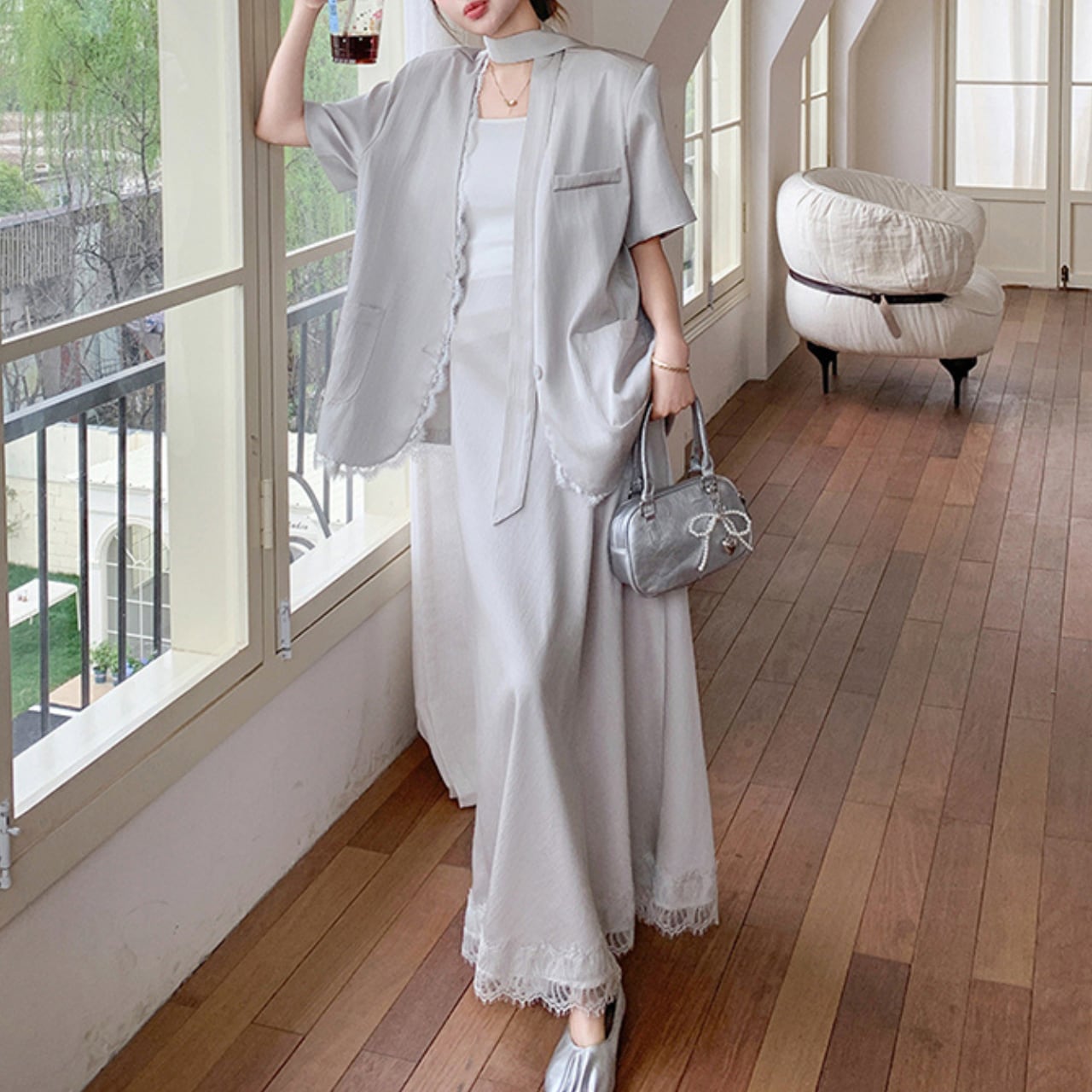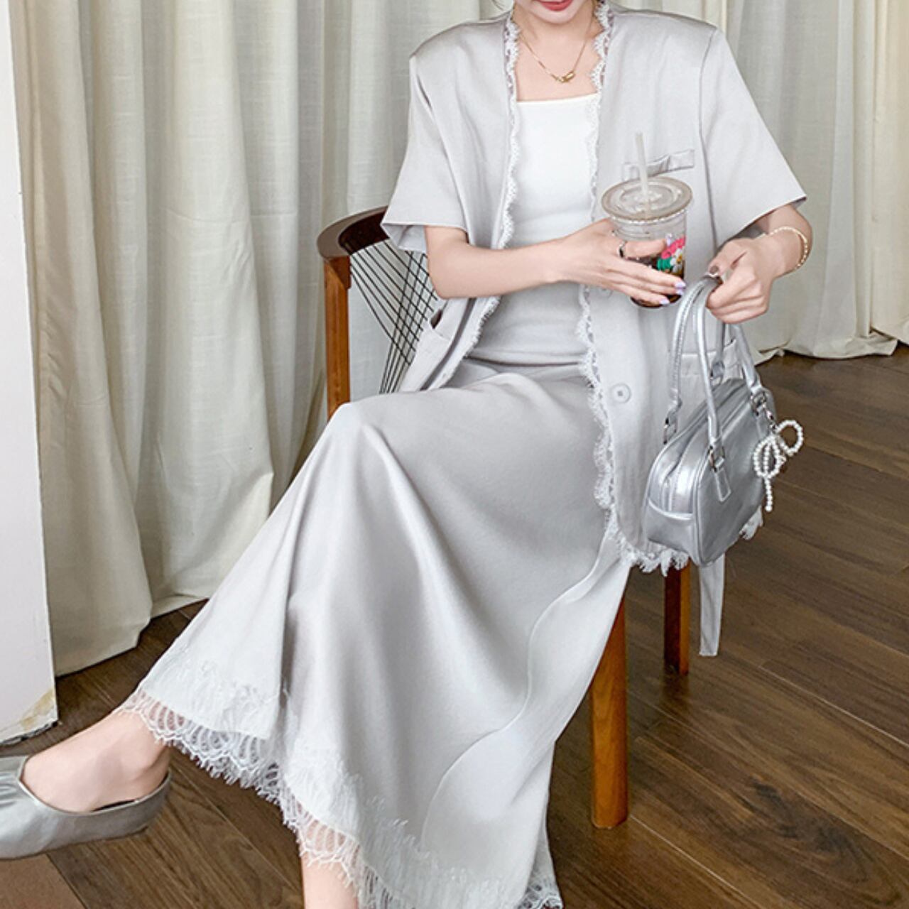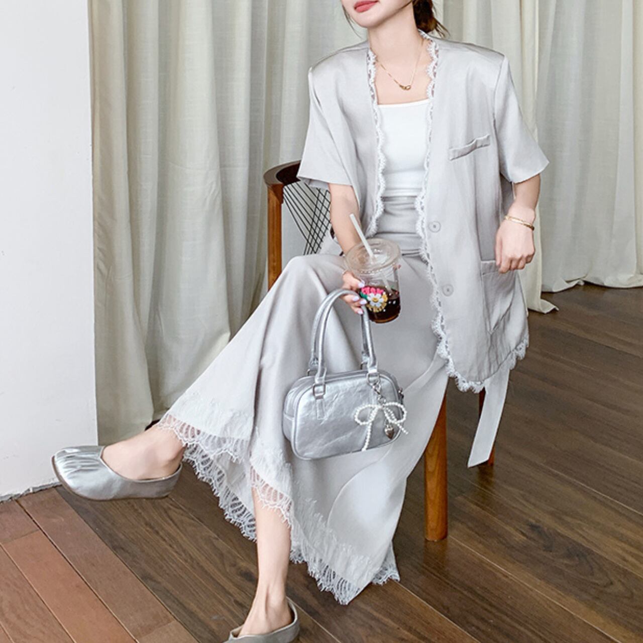 Aラインシルエットのマキシスカートとジャケットのセットアップです。 レーストリムが上品さをプラスし、大人の女性らしさを演出します。 普段使いはもちろん、旅行やちょっとしたお出かけにも◎。 一枚でこなれた着こなしが叶います。 ◼️サイズ 【S】 胸囲:102cm 着丈:64cm 【M】 胸囲:106cm 着丈:65cm 【L】 胸囲:110cm 着丈:66cm 【XL】 胸囲:114cm 着丈:67cm 【S】 ウエスト: 62cm スカート丈: 86cm 【M】 ウエスト: 66cm スカート丈: 87cm 【L】 ウエスト: 70cm スカート丈: 88cm 【XL】 ウエスト: 74cm スカート丈: 89cm ◼️カラー ホワイト 【お届けについて】 こちらの商品は海外店舗より直接発送となる為、ご入金から1〜3週間でお届けいたします。 ◼️注意事項 ・タイミングによっては 商品在庫切れにより注文キャンセルとさせていただく恐れもございますので、予めご了承くださいませ。 ・日本製とは検品基準が異なる為、縫製などが若干甘い場合があります。 ・海外倉庫にて保管をしております。在庫情報に時差が生じますため在庫切れや生産中止、生産に遅れがある場合は、受注後でもキャンセルさせていただく恐れがございます。 ・商品の色味は、お手持ちのスマートフォンの画面によって実物と若干異なる場合がございます。 ・発送時期によりデザイン仕様(細部、素材など)の変更がある場合がございます。 ・イメージ違いやサイズ交換等、お客さまご都合による交換、返品は対応出来かねます。 ———————————— 誠に恐れ入りますが、ご購入前に以下をご確認頂きご承諾の上お買い求めくださいませ。 →https://petitelune.official.ec/about ————————————