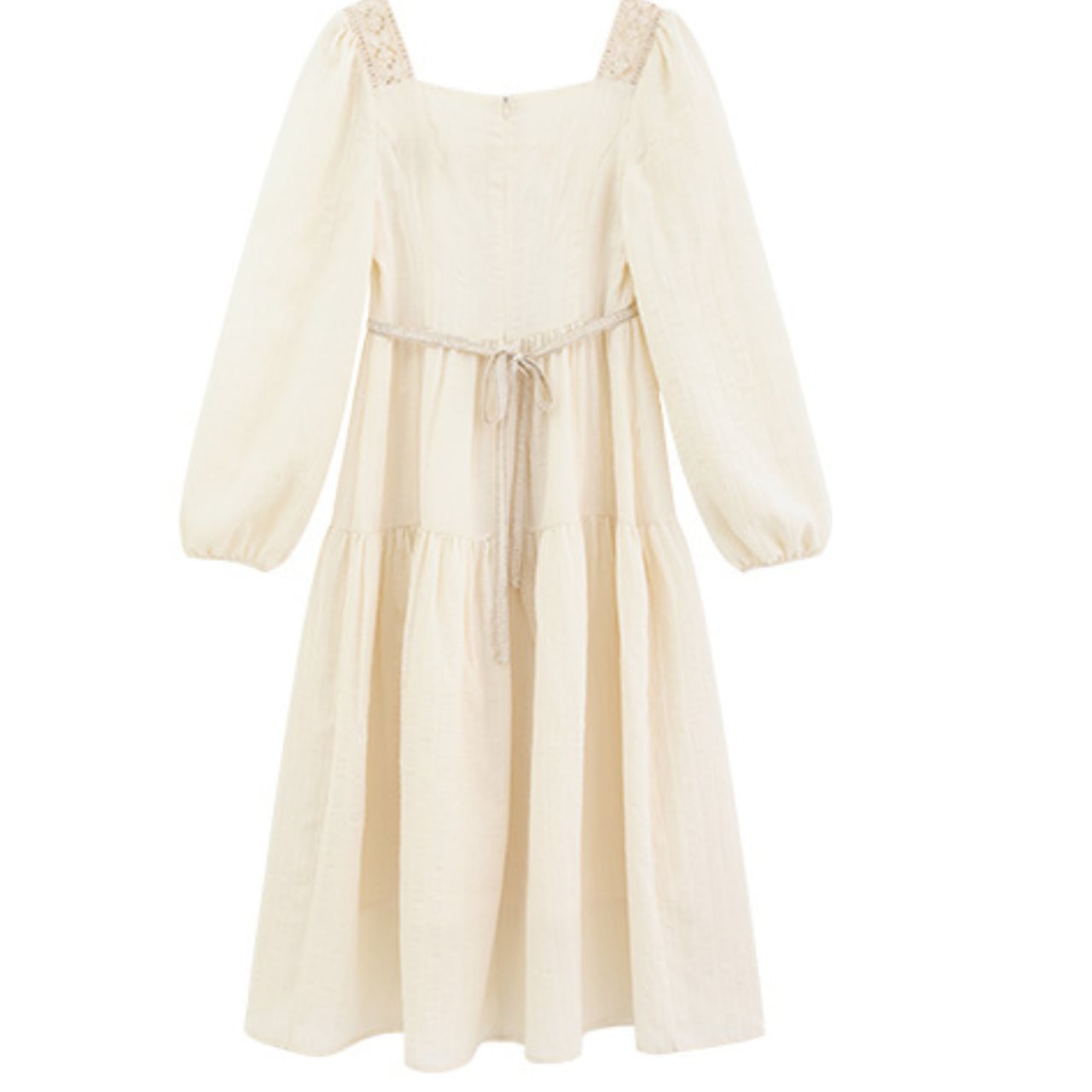 レースアップバルーンスリーブUネックロングワンピース 00201