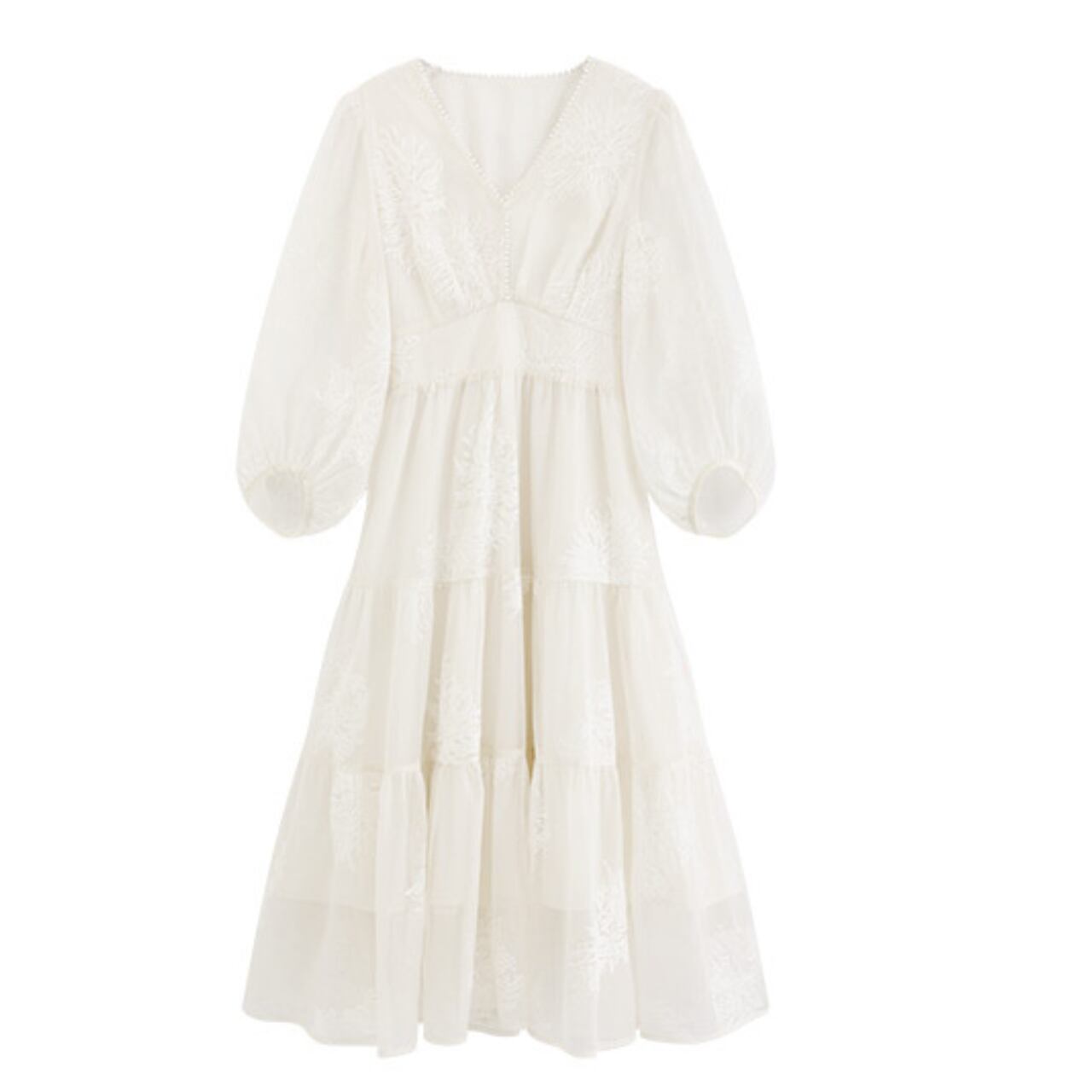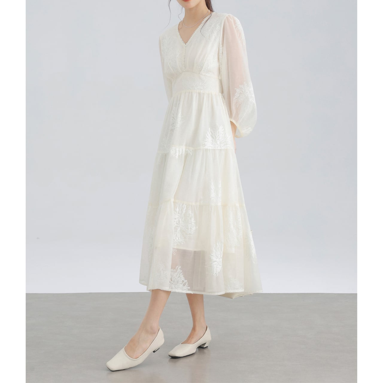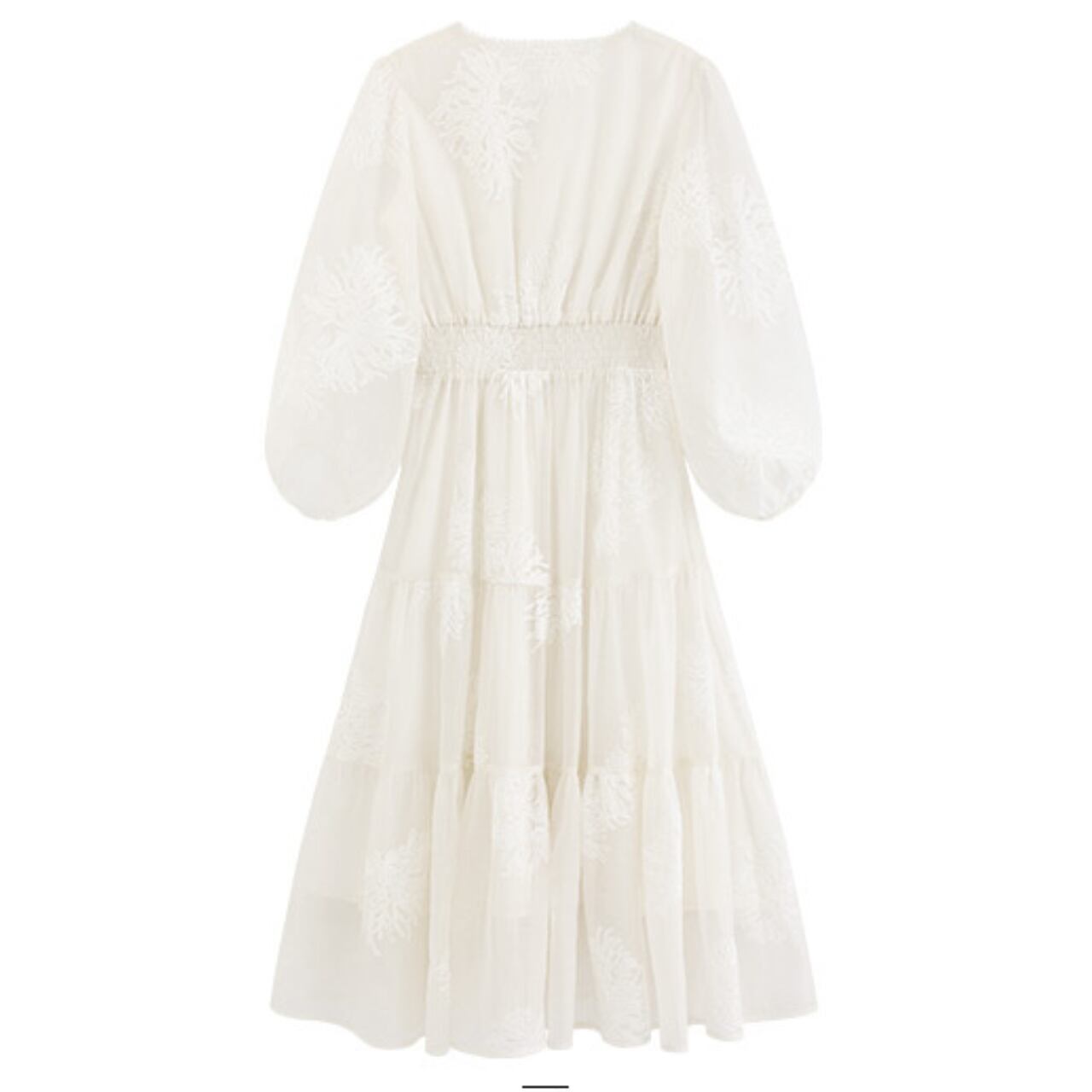刺繍入りのシフォンティアードスカートが魅力的なワンピース。Vネックのデザインが女性らしさを引き立て、上品で大人可愛い雰囲気を演出します。旅行やデート、ちょっとしたお出かけなど、様々なシーンで活躍間違いなし◎ ◼️サイズ 【XS】 肩幅:35cm 胸囲:88cm 袖丈:54cm ウエスト:58-68cm 【S】 肩幅:36cm 胸囲:92cm 袖丈:56cm ウエスト:62-72cm 【M】 肩幅:37cm 胸囲:96cm 袖丈:57cm ウエスト:66-76cm 【L】 肩幅:38cm 胸囲:100cm 袖丈:58cm ウエスト:70-80cm 【XL】 肩幅:39cm 胸囲:104cm 袖丈:59cm ウエスト:74-84cm ◼️カラー ホワイト ◼️素材 ポリエステル 【お届けについて】 こちらの商品は海外店舗より直接発送となる為、ご入金から1〜3週間でお届けいたします。 ◼️注意事項 ・タイミングによっては 商品在庫切れにより注文キャンセルとさせていただく恐れもございますので、予めご了承くださいませ。 ・日本製とは検品基準が異なる為、縫製などが若干甘い場合があります。 ・海外倉庫にて保管をしております。在庫情報に時差が生じますため在庫切れや生産中止、生産に遅れがある場合は、受注後でもキャンセルさせていただく恐れがございます。 ・商品の色味は、お手持ちのスマートフォンの画面によって実物と若干異なる場合がございます。 ・発送時期によりデザイン仕様(細部、素材など)の変更がある場合がございます。 ・イメージ違いやサイズ交換等、お客さまご都合による交換、返品は対応出来かねます。 ———————————— 誠に恐れ入りますが、ご購入前に以下をご確認頂きご承諾の上お買い求めくださいませ。 →https://petitelune.official.ec/about ————————————