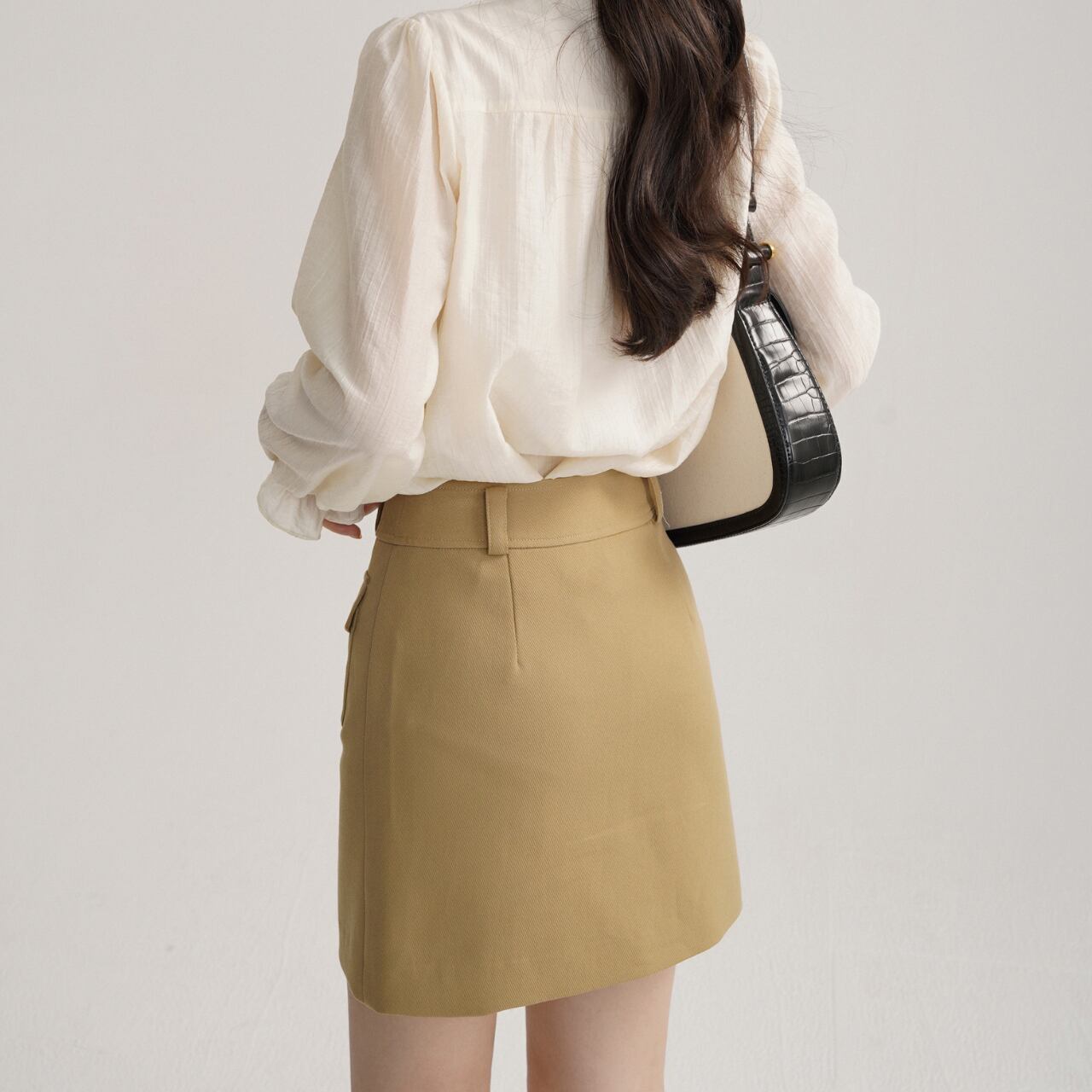 女性らしいVネックと、程よくゆとりのあるシルエットが魅力のブラウス。カジュアルなスニーカーと合わせれば休日スタイルに、ヒールを合わせればきれいめな装いにも対応できます。着回し力の高さが魅力です。