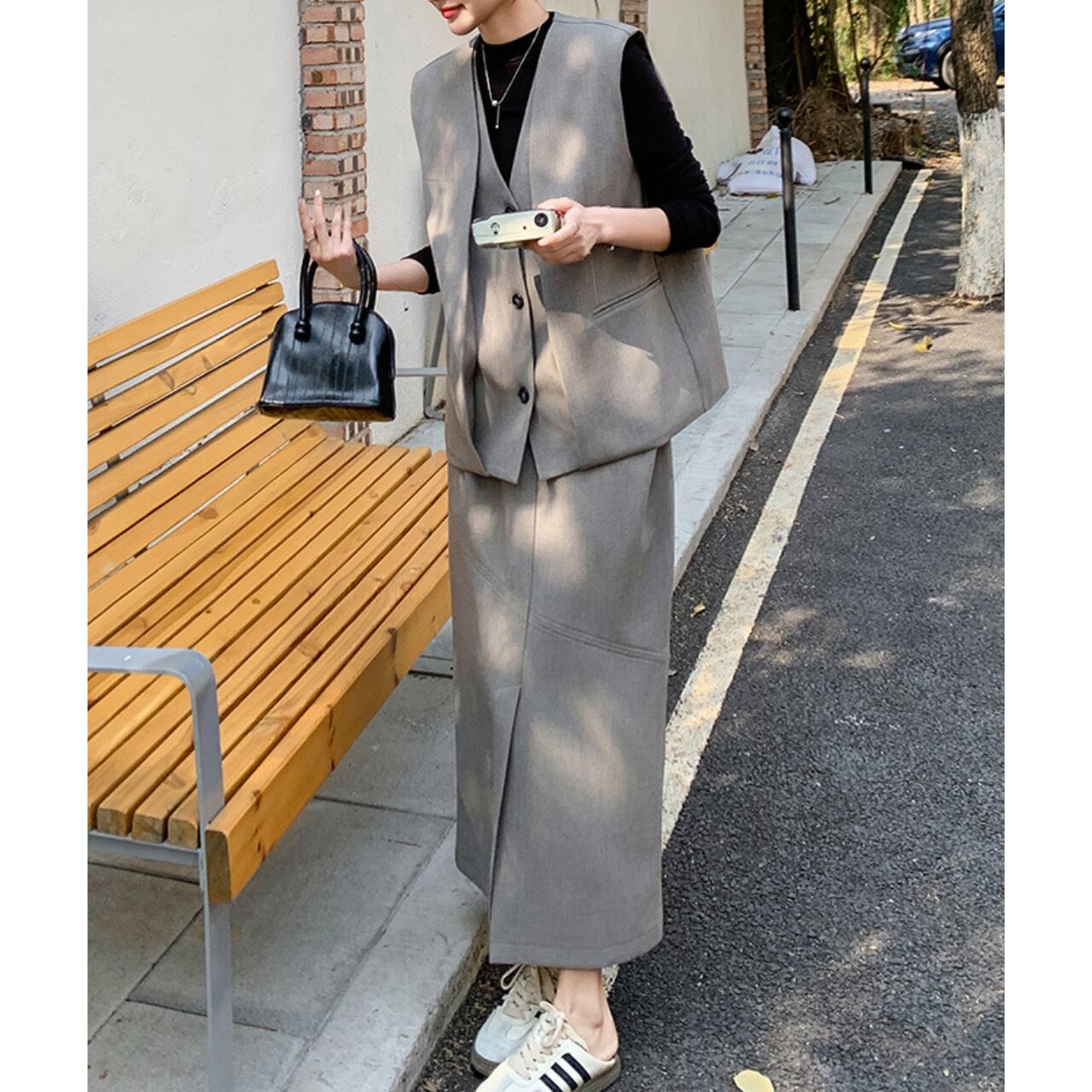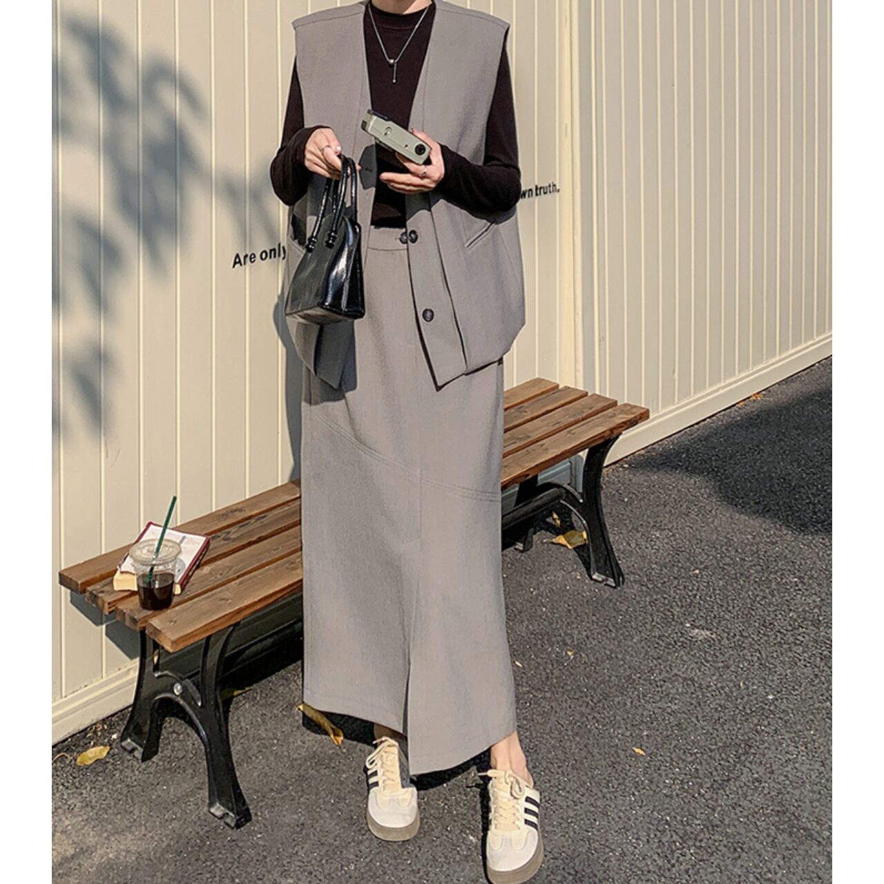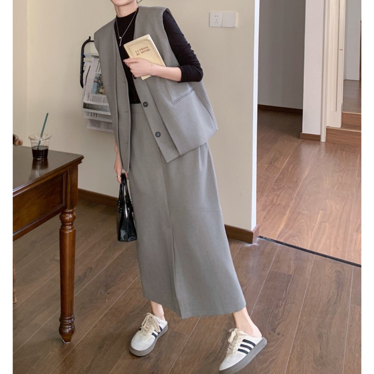 洗練されたデザインのロングベストとスカートのセットアップ。 ロング丈のベストは、気になる腰回りもカバー。 Aラインシルエットのスカートが、女性らしい柔らかな印象を与えます。 普段使いはもちろん、お出かけにもおすすめです◎ ◼️サイズ 【S】 肩幅: 41cm 胸囲: 108cm 着丈: 59cm 【M】 肩幅: 42cm 胸囲: 112cm 着丈: 60cm 【L】 肩幅: 43cm 胸囲: 116cm 着丈: 61cm 【XL】 肩幅: 44cm 胸囲: 120cm 着丈: 62cm 【S】ウエスト:66cm スカート丈:80cm 【M】ウエスト:70cm スカート丈:81cm 【L】ウエスト:74cm スカート丈:82cm 【XL】ウエスト:78cm スカート丈:83cm ◼️カラー グレー 【お届けについて】 こちらの商品は海外店舗より直接発送となる為、ご入金から1〜3週間でお届けいたします。 ◼️注意事項 ・タイミングによっては 商品在庫切れにより注文キャンセルとさせていただく恐れもございますので、予めご了承くださいませ。 ・日本製とは検品基準が異なる為、縫製などが若干甘い場合があります。 ・海外倉庫にて保管をしております。在庫情報に時差が生じますため在庫切れや生産中止、生産に遅れがある場合は、受注後でもキャンセルさせていただく恐れがございます。 ・商品の色味は、お手持ちのスマートフォンの画面によって実物と若干異なる場合がございます。 ・発送時期によりデザイン仕様(細部、素材など)の変更がある場合がございます。 ・イメージ違いやサイズ交換等、お客さまご都合による交換、返品は対応出来かねます。 ———————————— 誠に恐れ入りますが、ご購入前に以下をご確認頂きご承諾の上お買い求めくださいませ。 →https://petitelune.official.ec/about ————————————