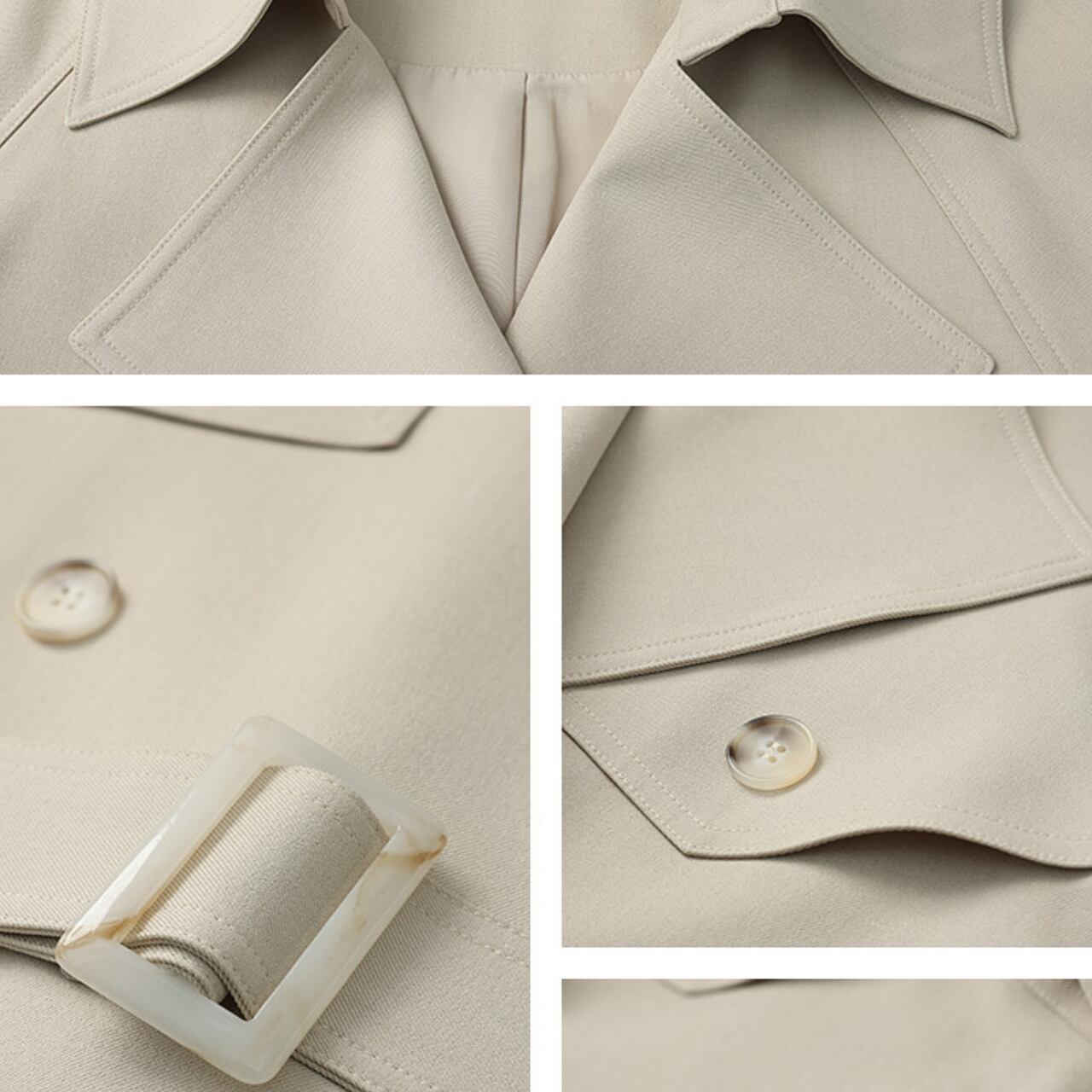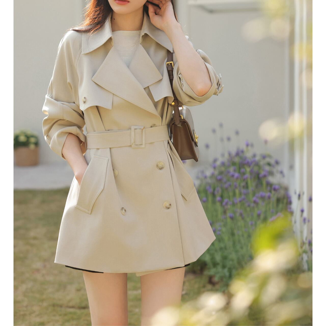 Aラインシルエットが女性らしい、ダブルブレストベルト付きトレンチコート。コンパクトなデザインで、着ぶくれせずスマートな印象に。ベルトでウエストマークすればスタイルアップ効果も期待できます◎ ◼️サイズ 【XS】 胸囲:110cm 着丈:74.5cm 袖丈:67.3cm 【S】 胸囲:114cm 着丈:76cm 袖丈:68.7cm 【M】 胸囲:118cm 着丈:77.5cm 袖丈:70.1cm 【L】 胸囲:122cm 着丈:79cm 袖丈:71.5cm ◼️カラー ホワイト ◼️素材 ポリウレタン ポリエステル 【お届けについて】 こちらの商品は海外店舗より直接発送となる為、ご入金から1〜3週間でお届けいたします。 ◼️注意事項 ・タイミングによっては 商品在庫切れにより注文キャンセルとさせていただく恐れもございますので、予めご了承くださいませ。 ・日本製とは検品基準が異なる為、縫製などが若干甘い場合があります。 ・海外倉庫にて保管をしております。在庫情報に時差が生じますため在庫切れや生産中止、生産に遅れがある場合は、受注後でもキャンセルさせていただく恐れがございます。 ・商品の色味は、お手持ちのスマートフォンの画面によって実物と若干異なる場合がございます。 ・発送時期によりデザイン仕様(細部、素材など)の変更がある場合がございます。 ・イメージ違いやサイズ交換等、お客さまご都合による交換、返品は対応出来かねます。 ———————————— 誠に恐れ入りますが、ご購入前に以下をご確認頂きご承諾の上お買い求めくださいませ。 →https://petitelune.official.ec/about ————————————