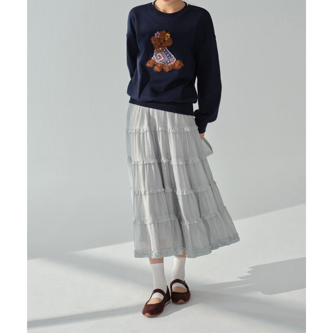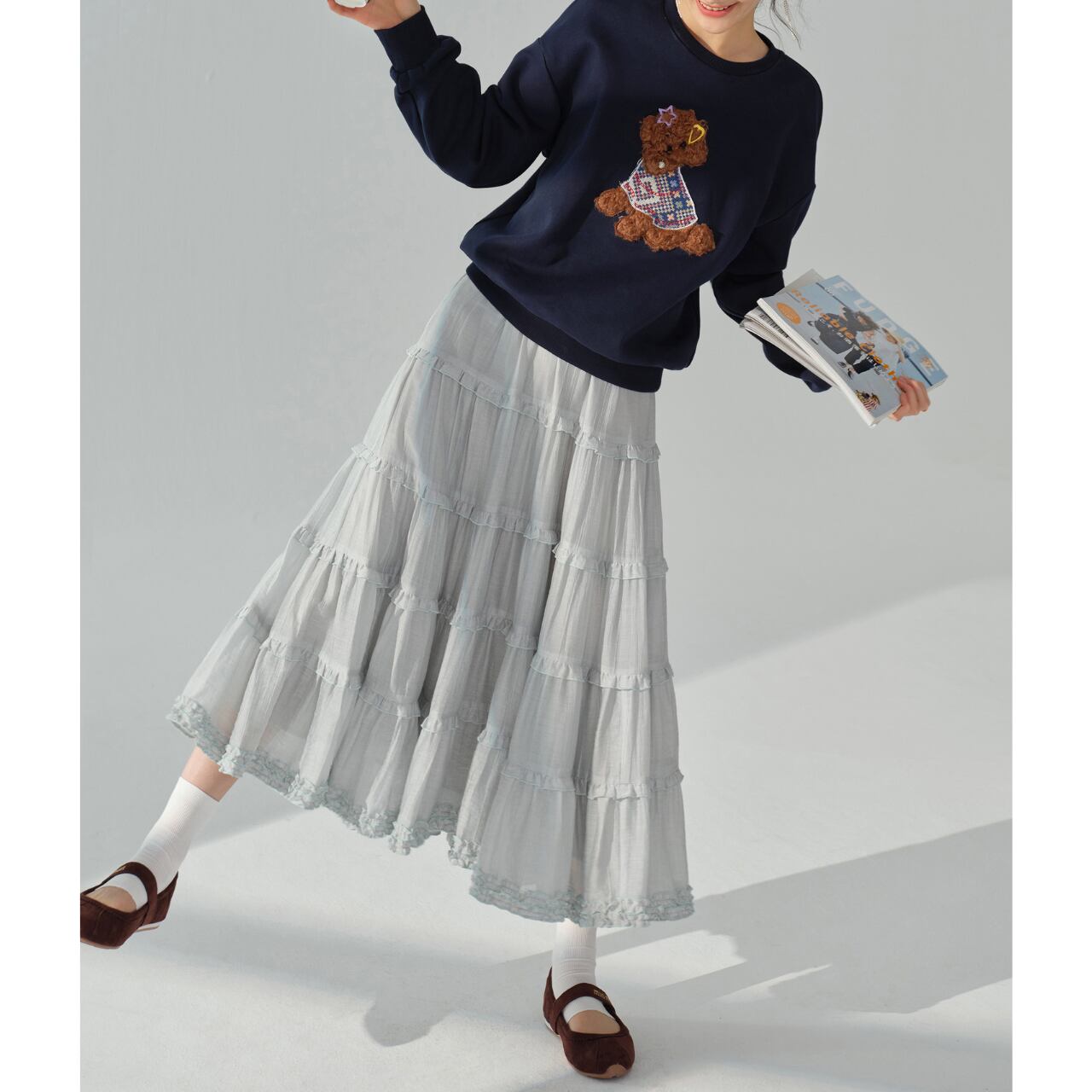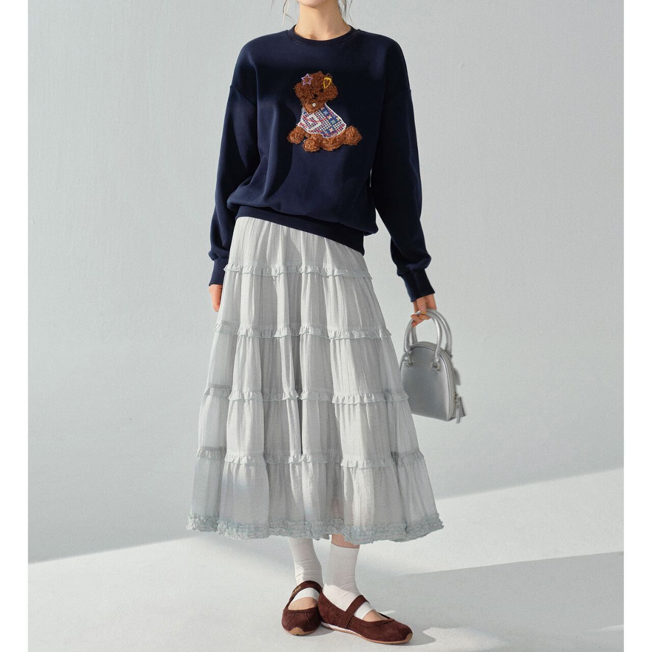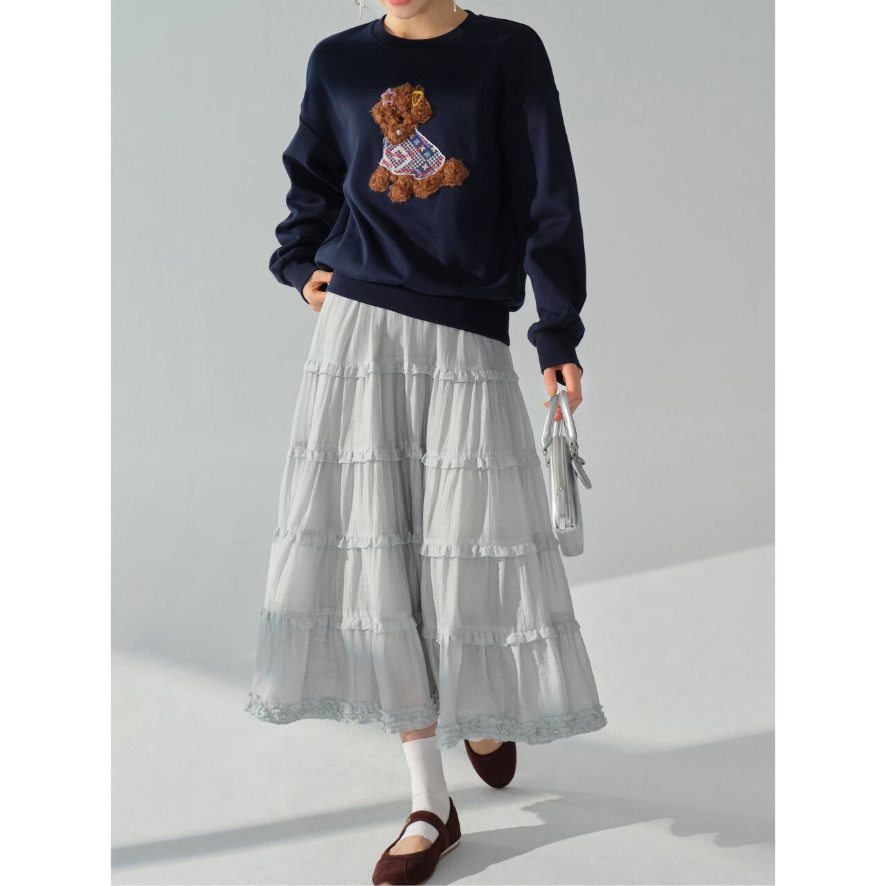 デニムやワイドパンツと合わせてカジュアルに、スカートと合わせてフェミニンに、着こなしの幅を広げられます。