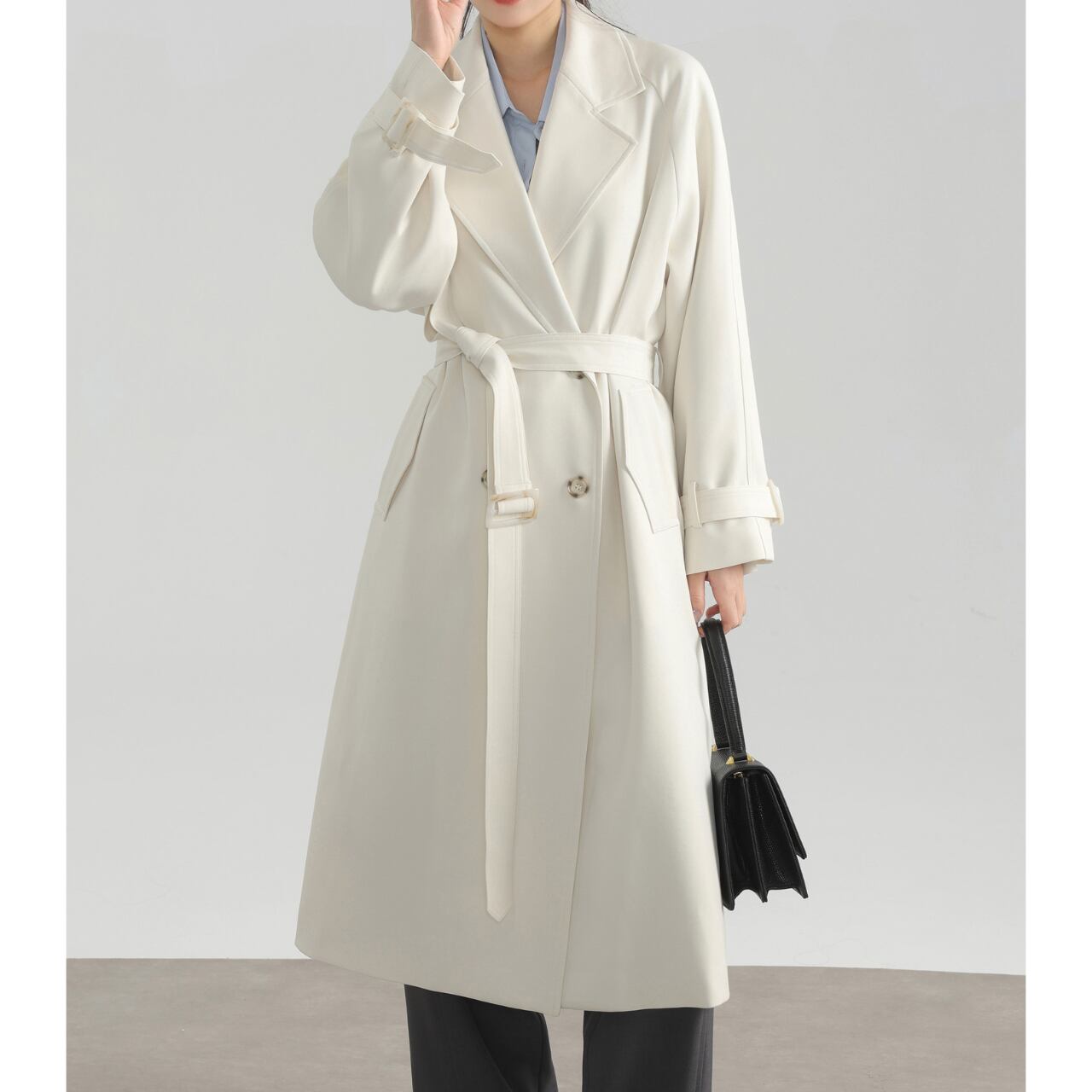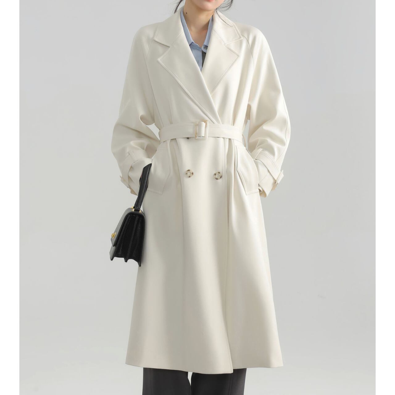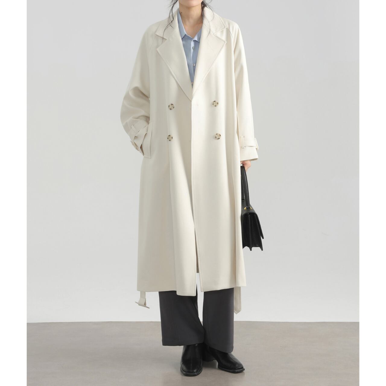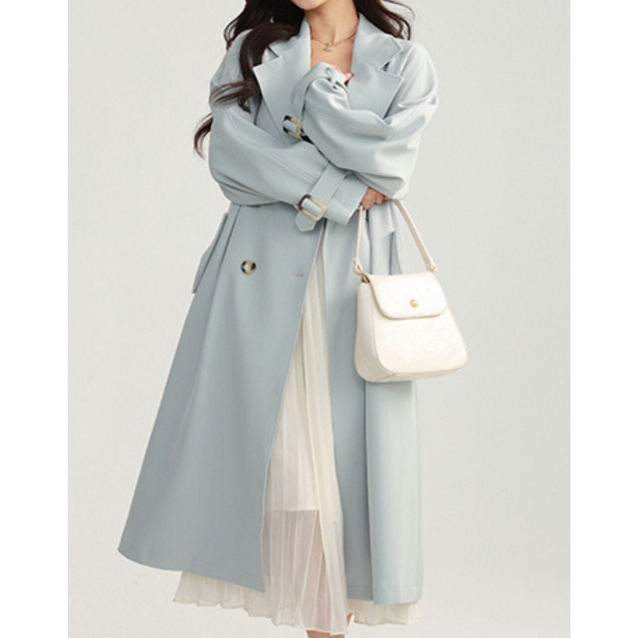 ベルト付きダブルブレストオーバーサイズロングコート 00225