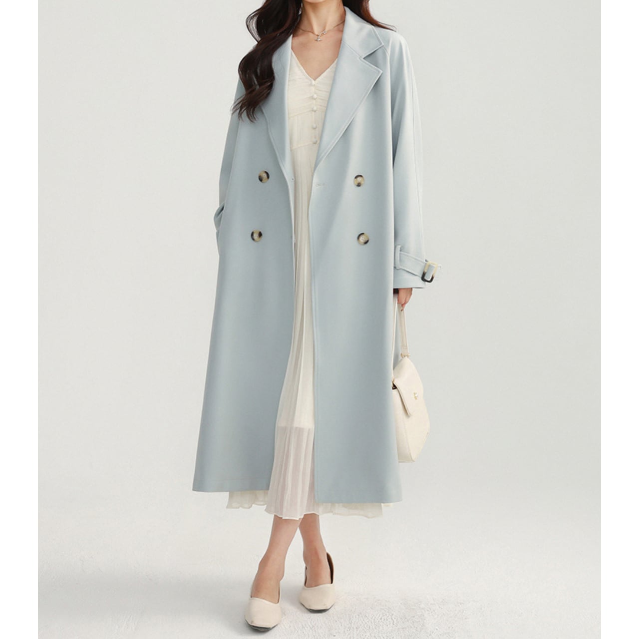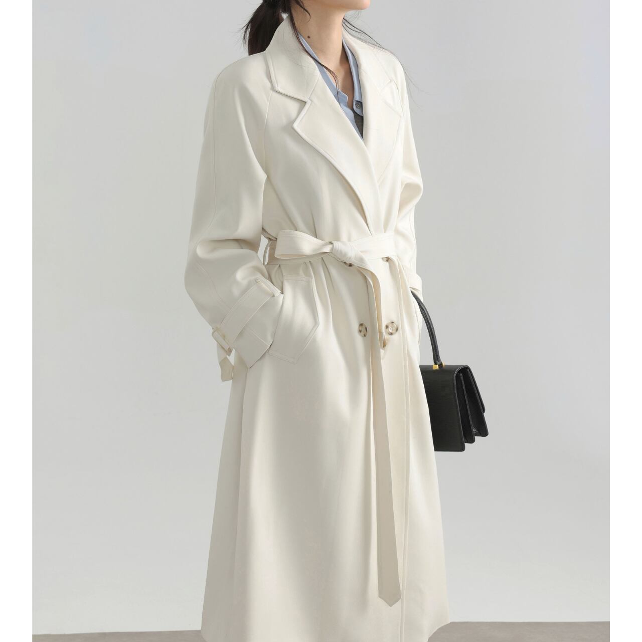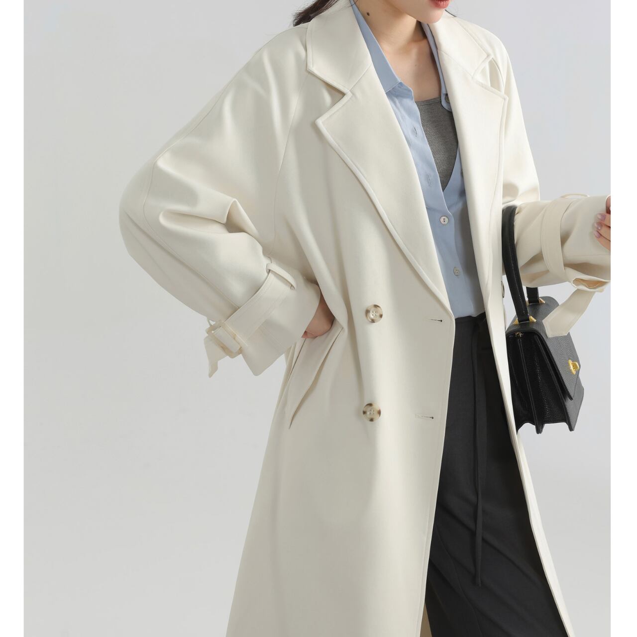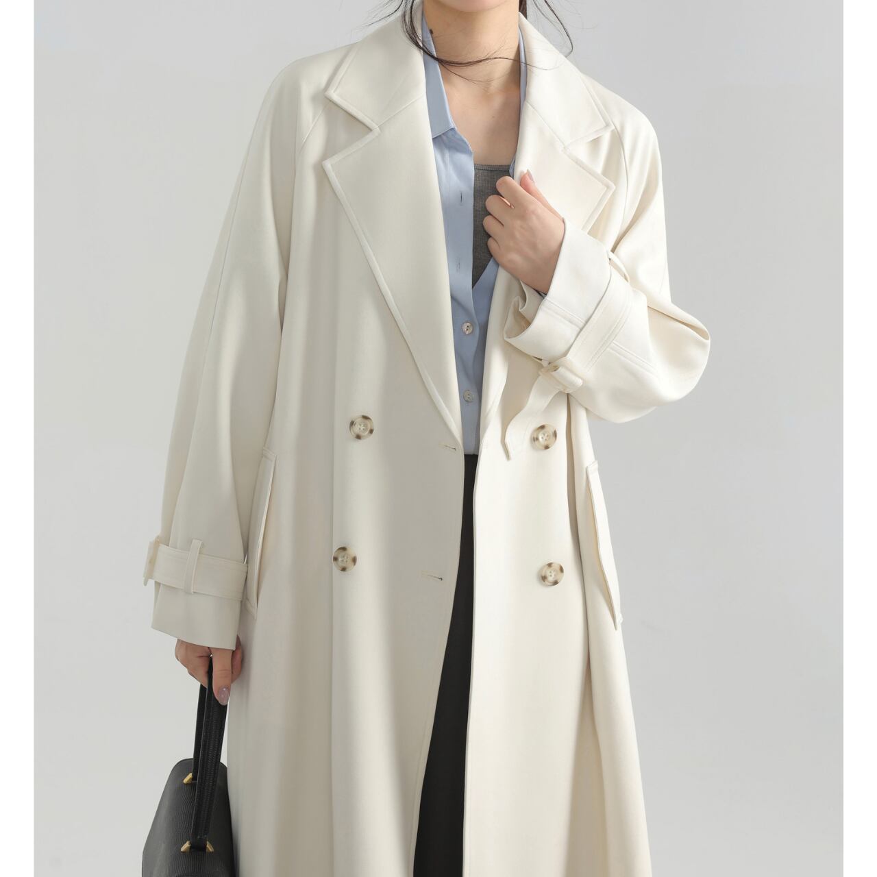 ベルト付きダブルブレストオーバーサイズロングコート 00225
