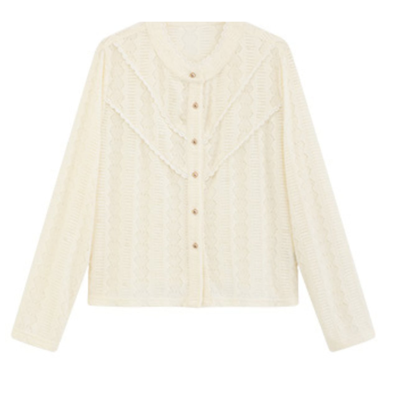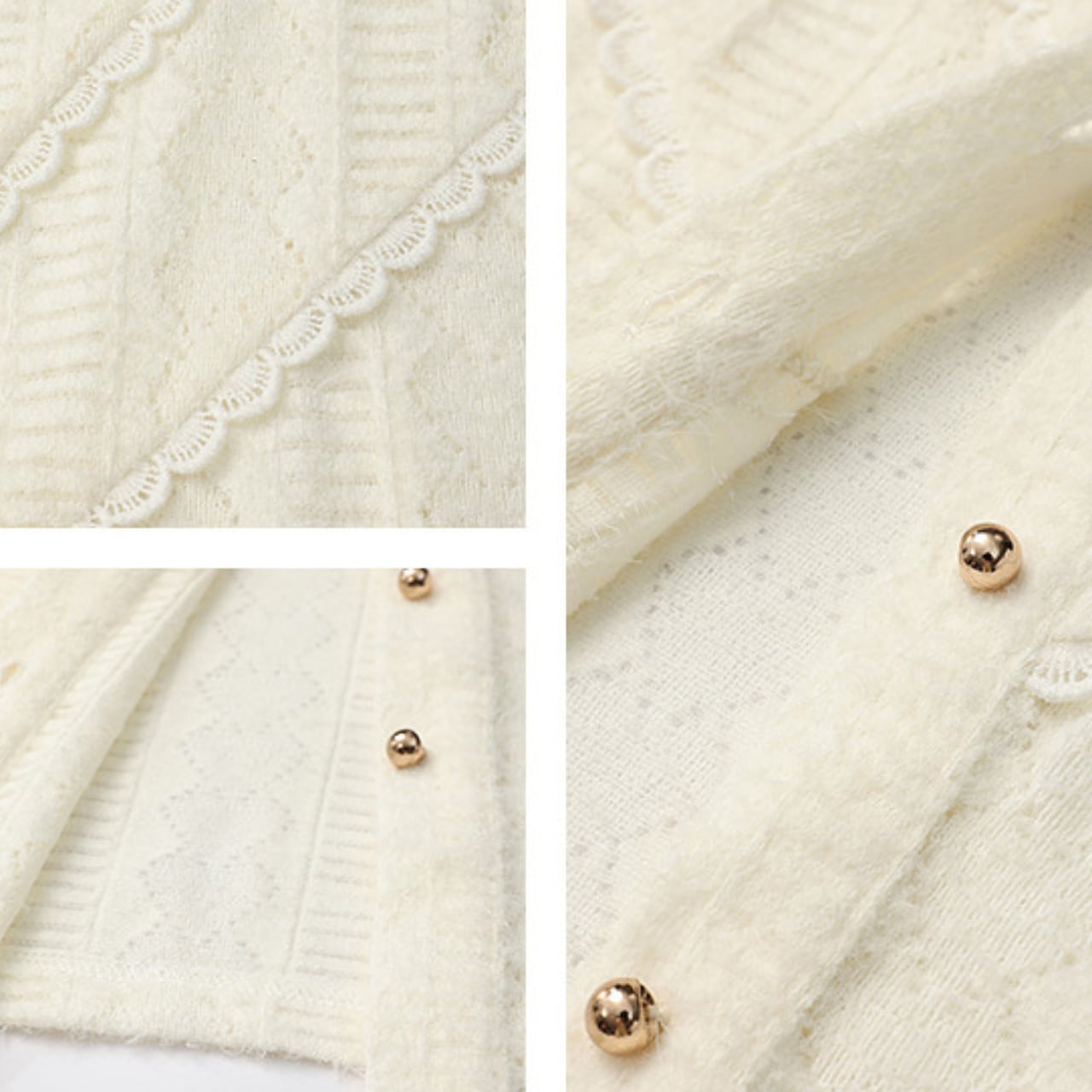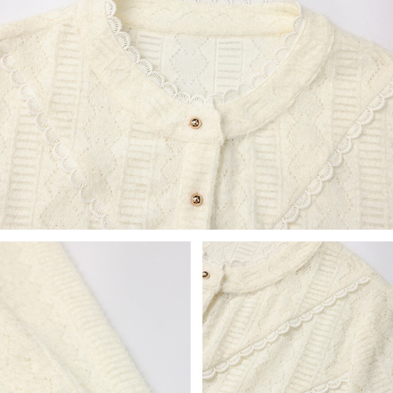 ケーブル編みカーディガンボタン留めラウンドネック 00234