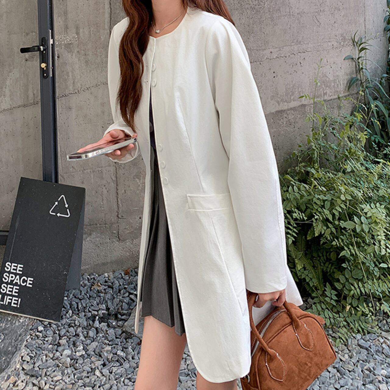 ヒップ丈で、カジュアルからオフィススタイルまで幅広く活躍します。