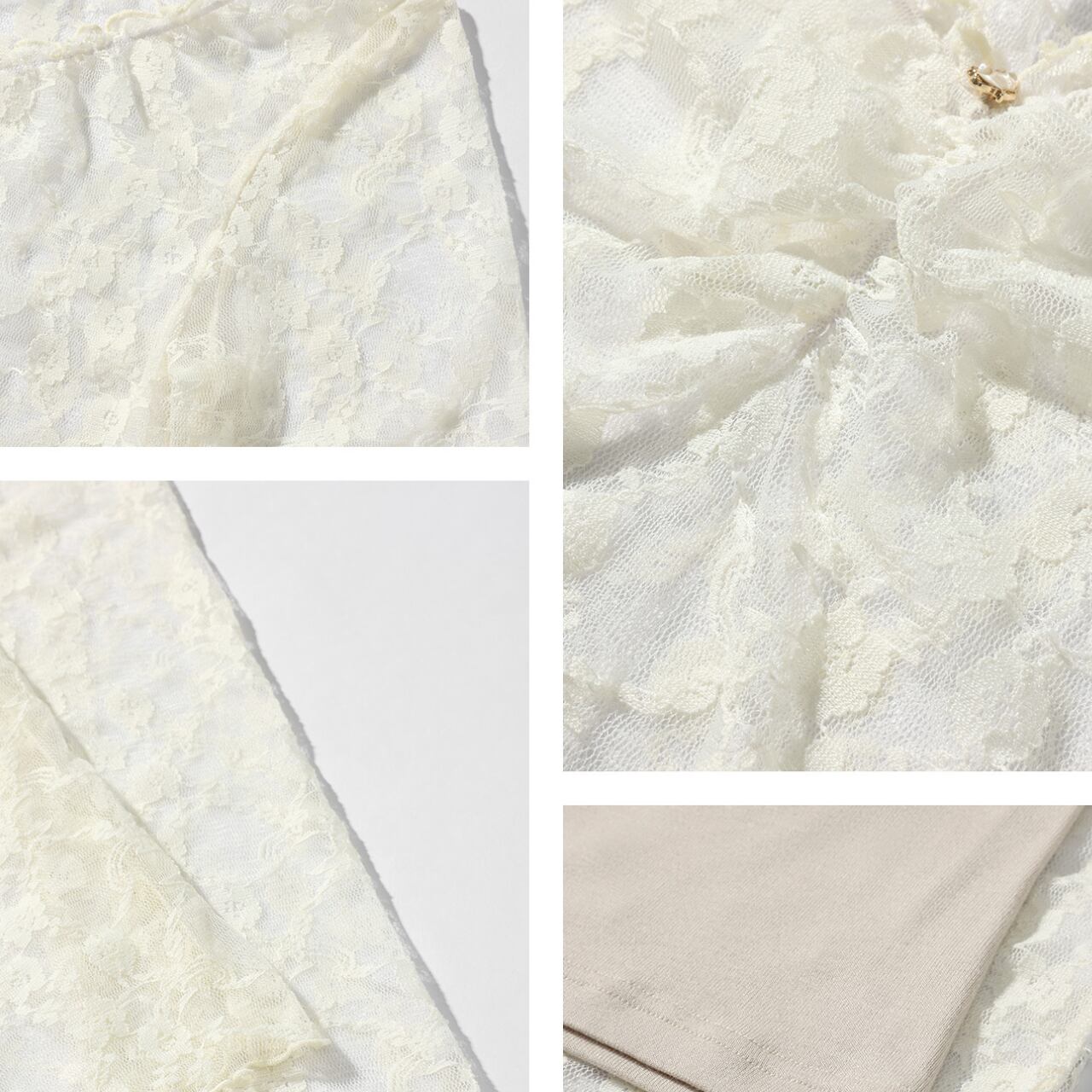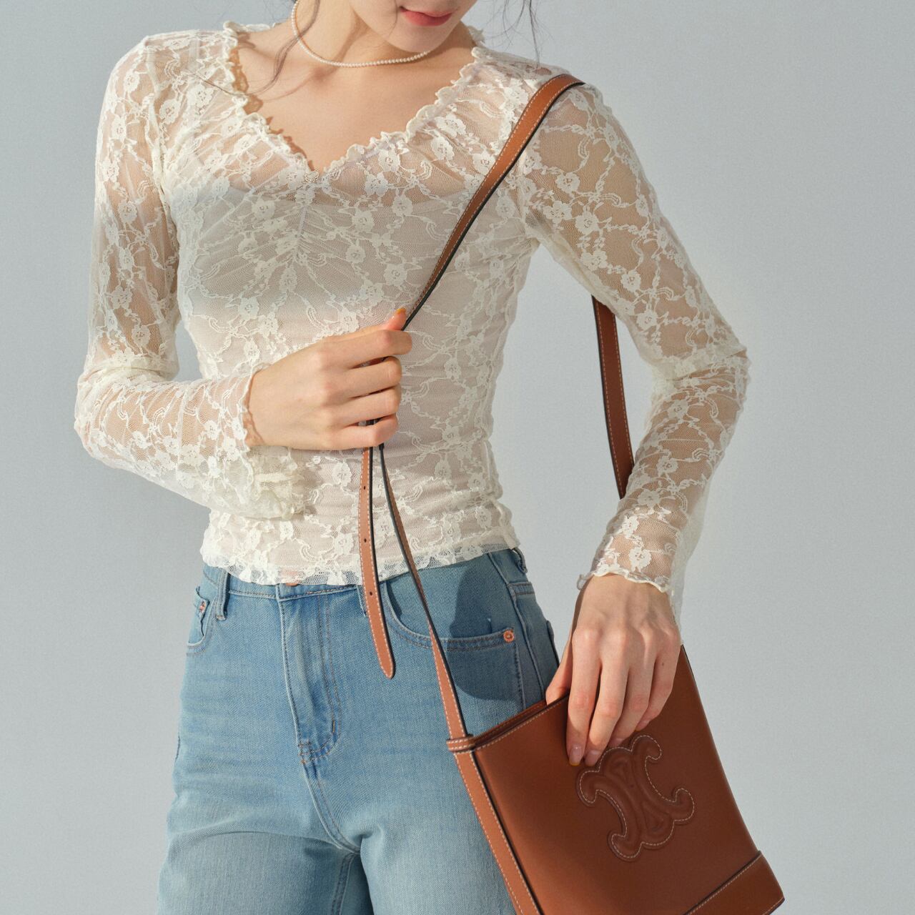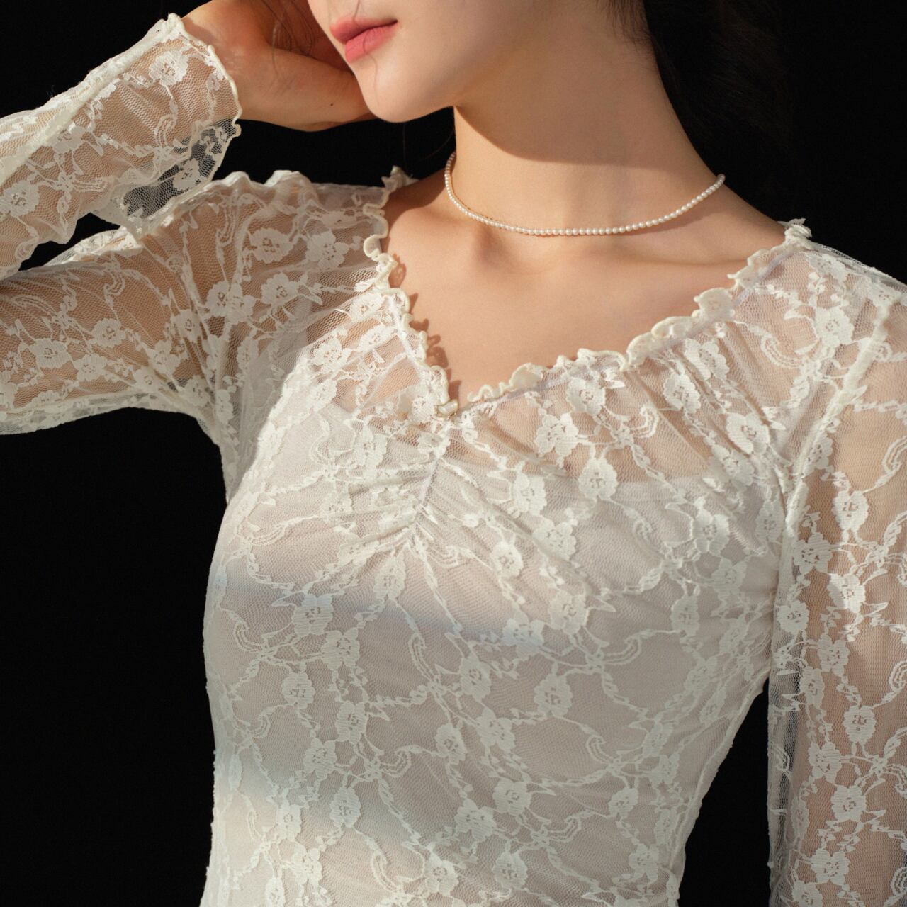 長袖レースカットソーは、大人の女性らしさを引き立てるアイテム。