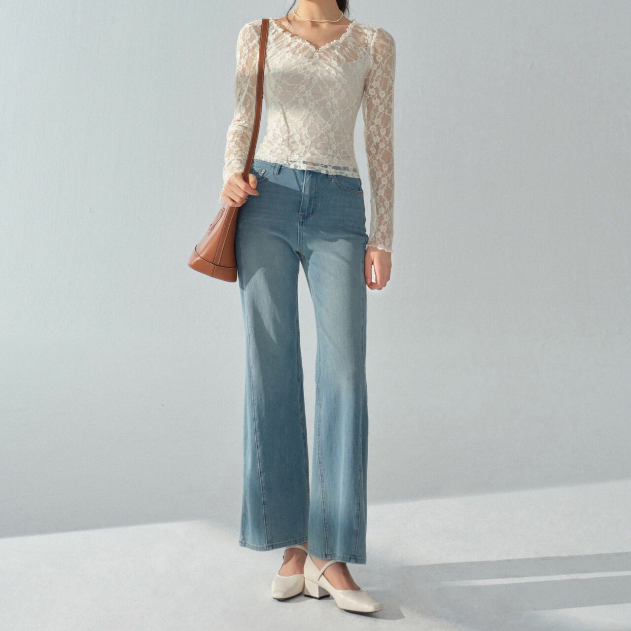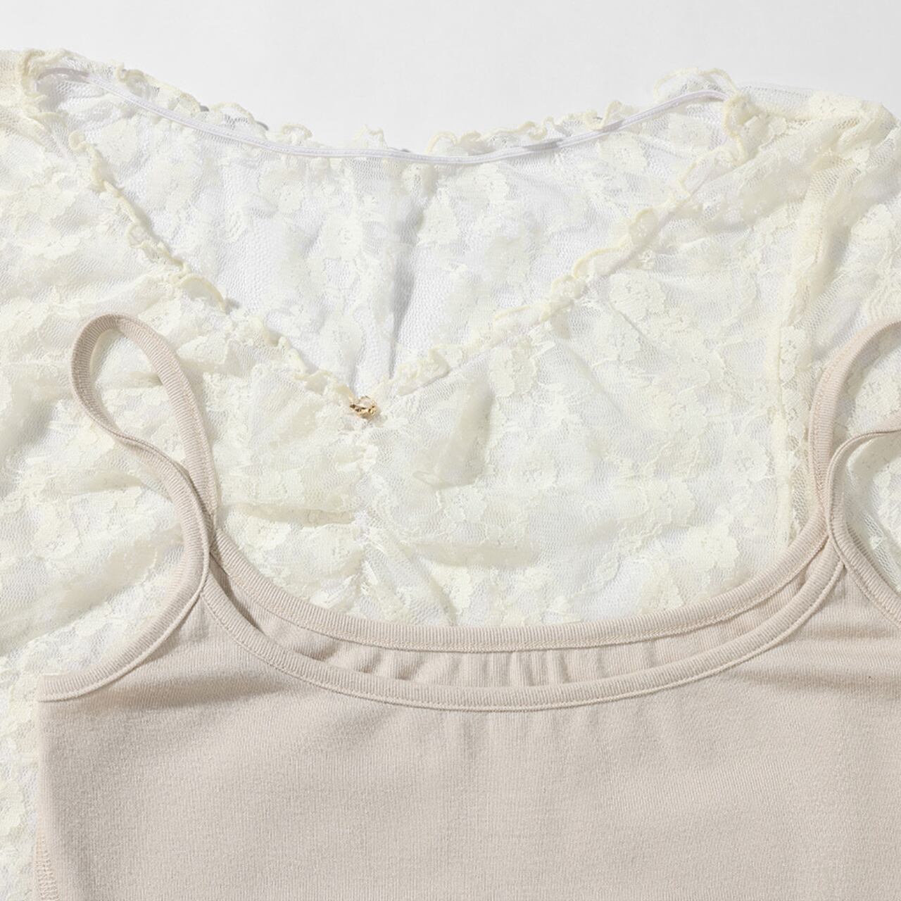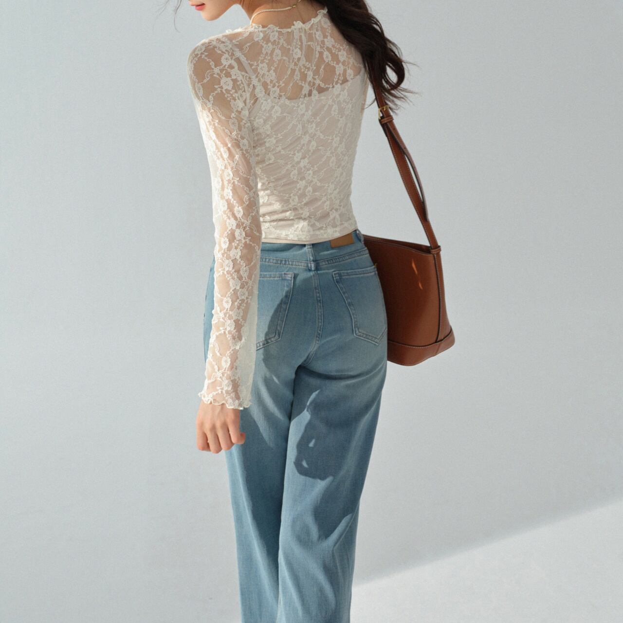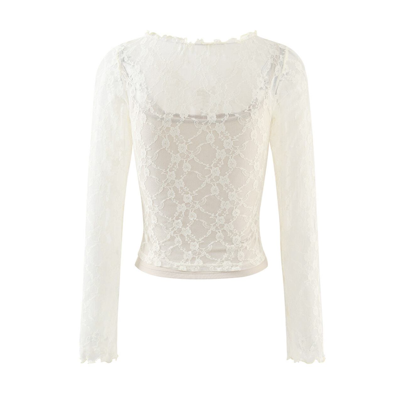 長袖レースカットソーは、大人の女性らしさを引き立てるアイテム。