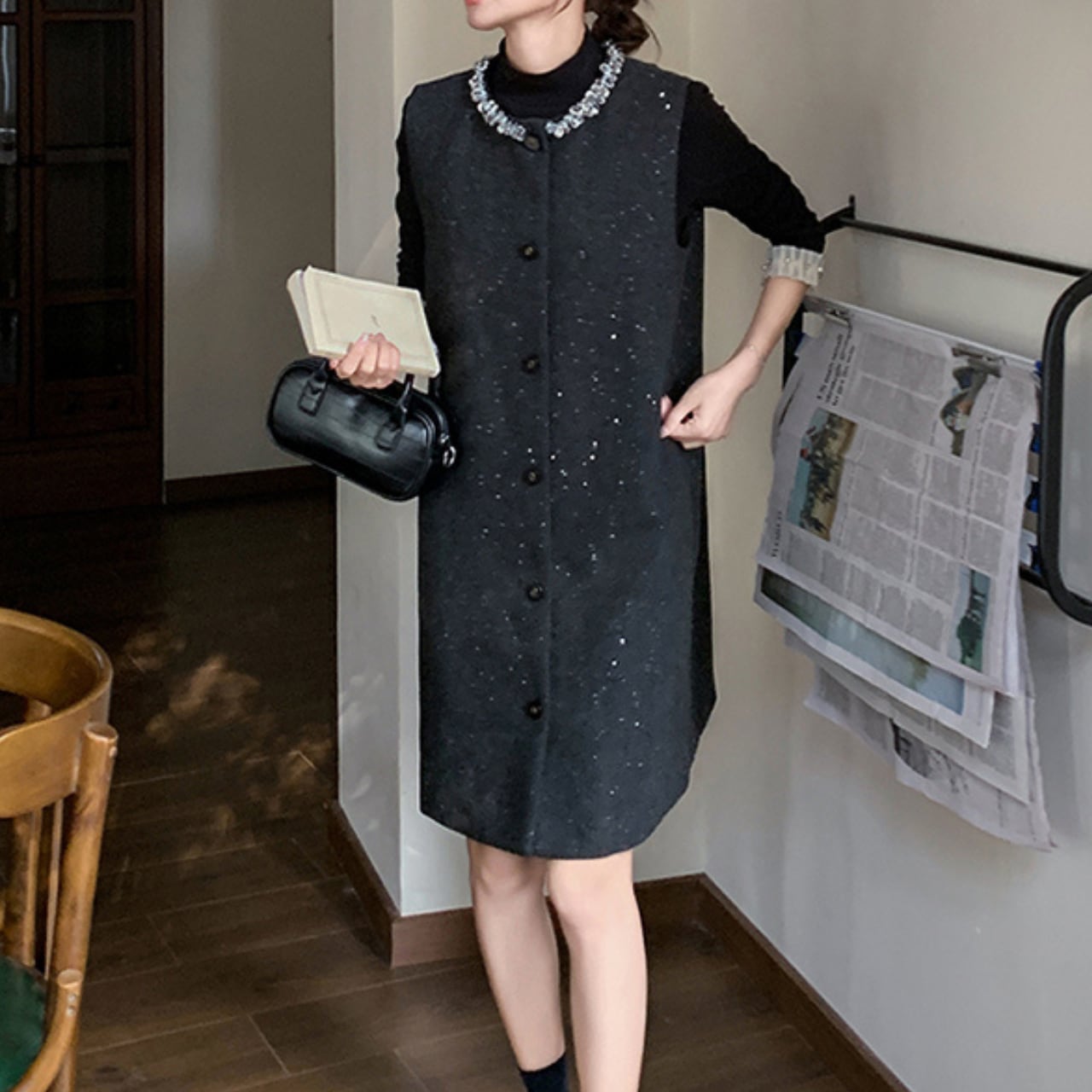 ボタンがアクセントのワンピース。 普段使いから、少し上品な装いをしたい時にもおすすめ。 ミモレ丈で落ち着いた印象なので、アクセサリーや小物で個性を演出できます。 ◼️サイズ 【s】 肩幅 : 33cm 胸囲 : 96cm 着丈 : 55cm 【M】 肩幅 : 34cm 胸囲 : 100cm 着丈 : 56cm 【l】 肩幅 : 35cm 胸囲 : 104cm 着丈 : 57cm 【XL】 肩幅 : 36cm 胸囲 : 108cm 着丈 : 58cm 【s】 胸囲:102cm スカート丈:92cm 【M】 胸囲:106cm スカート丈:93cm 【l】 胸囲:110cm スカート丈:94cm 【XL】 胸囲:114cm スカート丈:95cm ◼️カラー ブラック 【お届けについて】 こちらの商品は海外店舗より直接発送となる為、ご入金から1〜3週間でお届けいたします。 ◼️注意事項 ・タイミングによっては 商品在庫切れにより注文キャンセルとさせていただく恐れもございますので、予めご了承くださいませ。 ・日本製とは検品基準が異なる為、縫製などが若干甘い場合があります。 ・海外倉庫にて保管をしております。在庫情報に時差が生じますため在庫切れや生産中止、生産に遅れがある場合は、受注後でもキャンセルさせていただく恐れがございます。 ・商品の色味は、お手持ちのスマートフォンの画面によって実物と若干異なる場合がございます。 ・発送時期によりデザイン仕様(細部、素材など)の変更がある場合がございます。 ・イメージ違いやサイズ交換等、お客さまご都合による交換、返品は対応出来かねます。 ———————————— 誠に恐れ入りますが、ご購入前に以下をご確認頂きご承諾の上お買い求めくださいませ。 →https://petitelune.official.ec/about ————————————