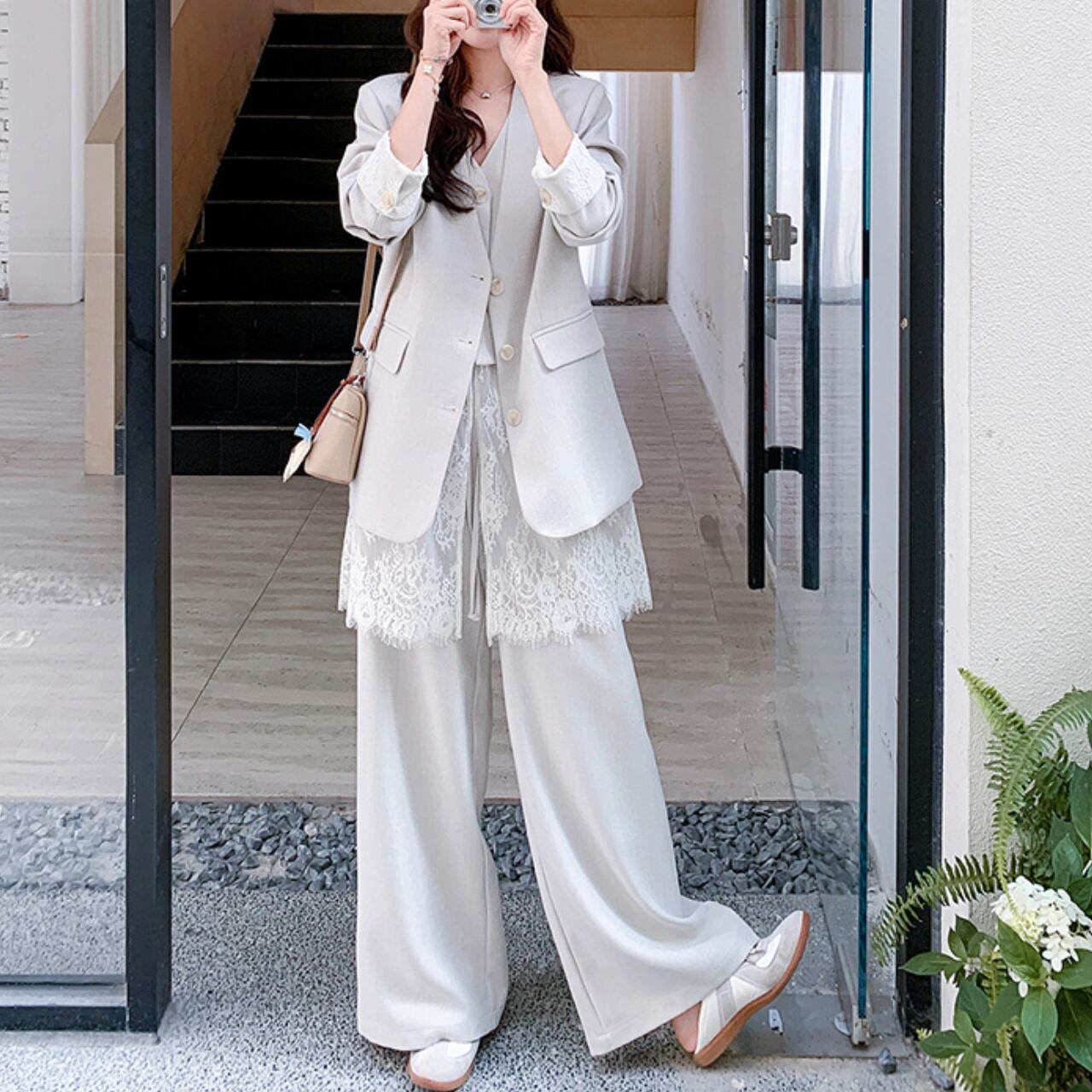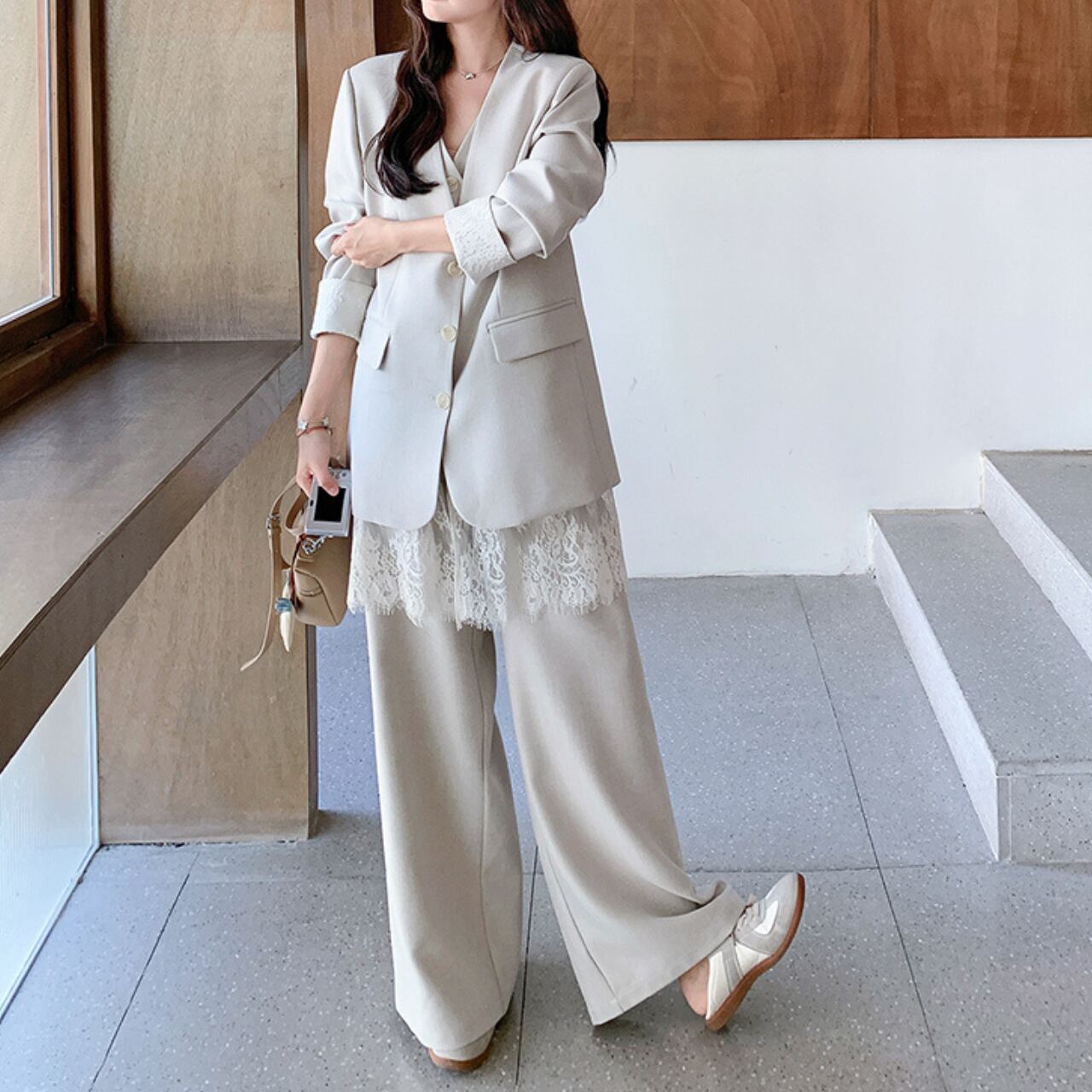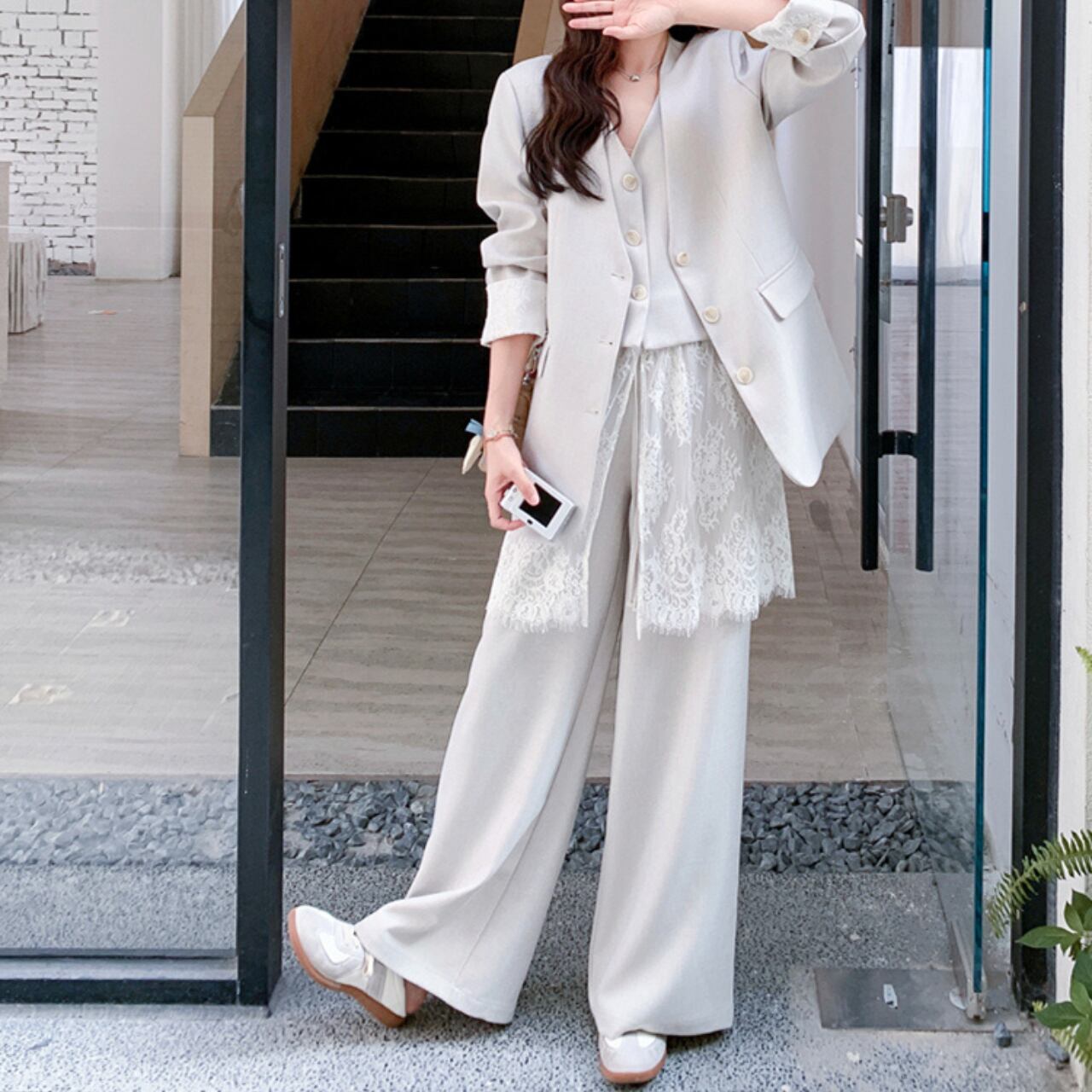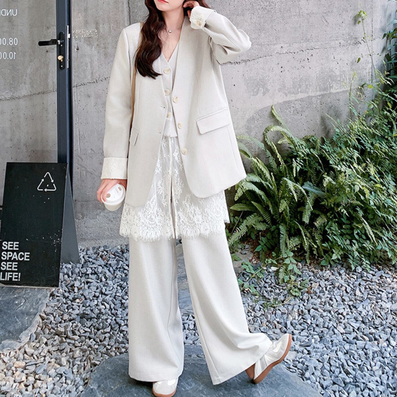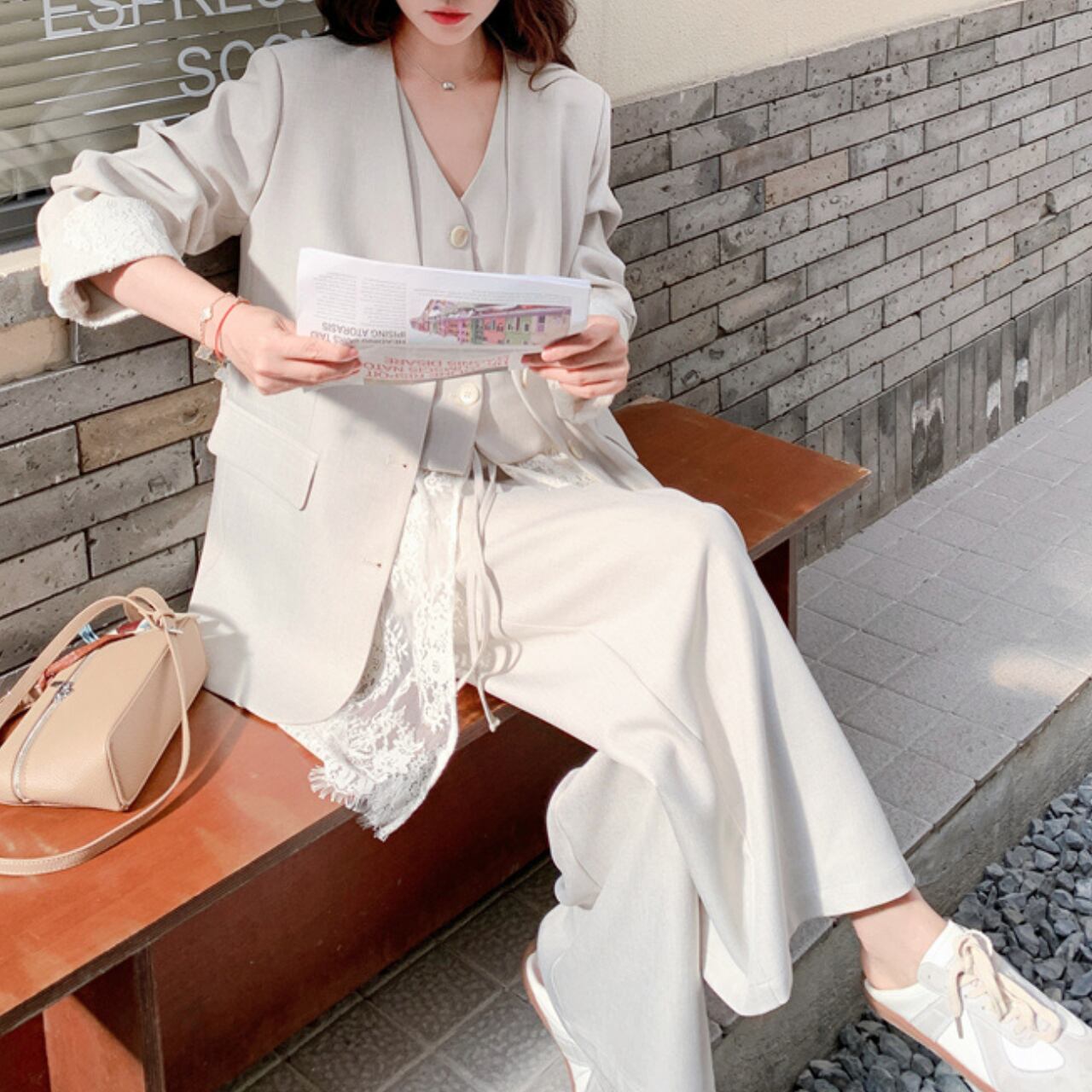 ボタンフロントオーバーサイズ ジャケット&ショート丈 ノースリーブジャケット&ストレートパンツ 00291