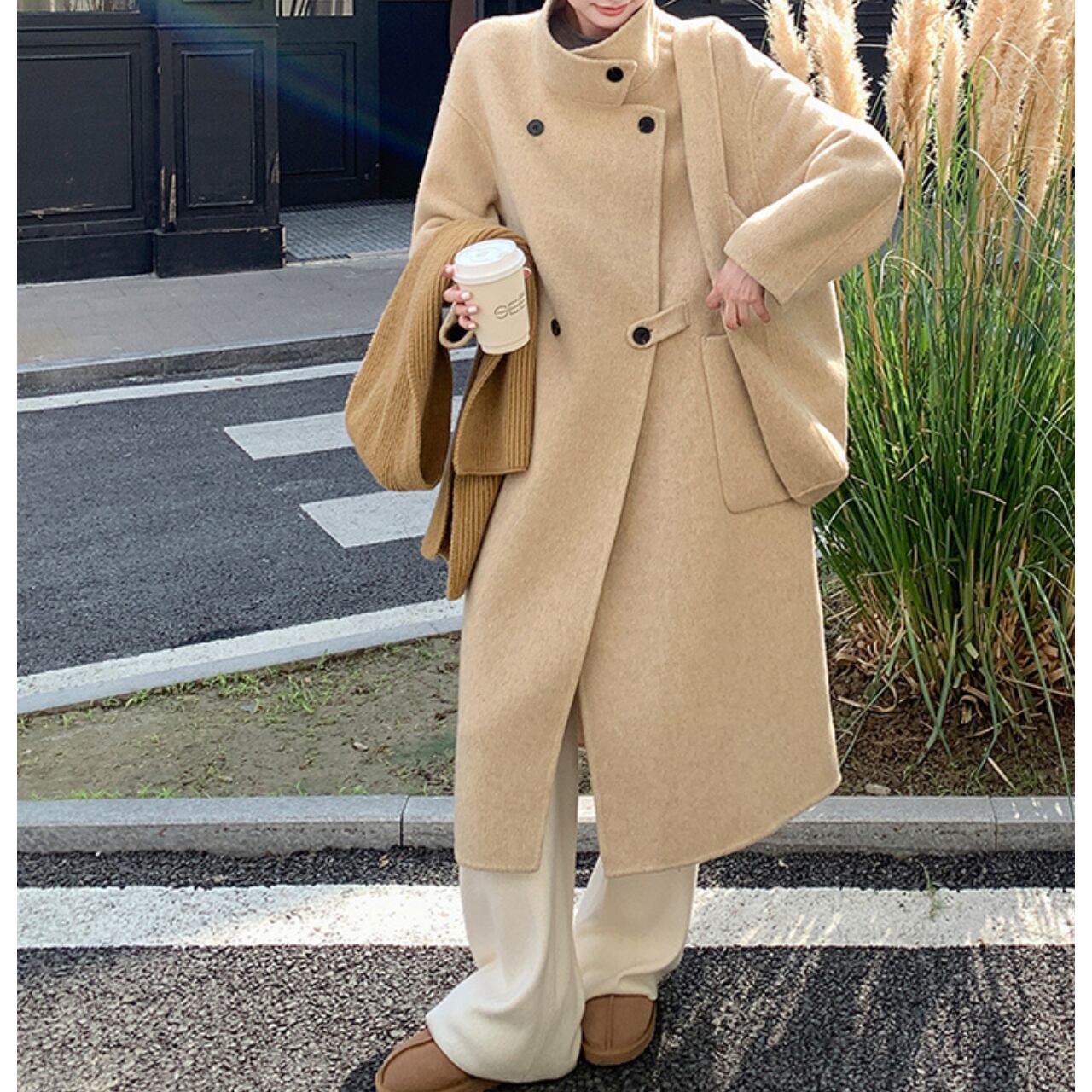 ヒップが隠れる丈感で、気になる部分をカバーしつつスタイルアップも叶えます。 ダブルブレストのデザインが、上品で洗練された印象を与えます。 普段使いはもちろん、オフィススタイルにもおすすめです。 ◼️サイズ 【s】 肩幅: 58cm 胸囲: 114cm 着丈: 110cm 袖丈: 47.5cm 【M】 肩幅: 59.5cm 胸囲: 118cm 着丈: 111.5cm 袖丈: 48.2cm 【l】 肩幅: 61cm 胸囲: 122cm 着丈: 113cm 袖丈: 48.9cm 【XL】 肩幅: 62.5cm 胸囲: 126cm 着丈: 114.5cm 袖丈: 49.6cm ◼️カラー ベージュ 【お届けについて】 こちらの商品は海外店舗より直接発送となる為、ご入金から1〜3週間でお届けいたします。 ◼️注意事項 ・タイミングによっては 商品在庫切れにより注文キャンセルとさせていただく恐れもございますので、予めご了承くださいませ。 ・日本製とは検品基準が異なる為、縫製などが若干甘い場合があります。 ・海外倉庫にて保管をしております。在庫情報に時差が生じますため在庫切れや生産中止、生産に遅れがある場合は、受注後でもキャンセルさせていただく恐れがございます。 ・商品の色味は、お手持ちのスマートフォンの画面によって実物と若干異なる場合がございます。 ・発送時期によりデザイン仕様(細部、素材など)の変更がある場合がございます。 ・イメージ違いやサイズ交換等、お客さまご都合による交換、返品は対応出来かねます。 ———————————— 誠に恐れ入りますが、ご購入前に以下をご確認頂きご承諾の上お買い求めくださいませ。 →https://petitelune.official.ec/about ————————————