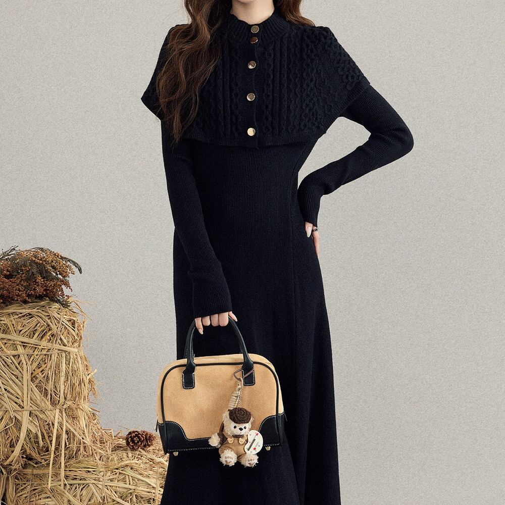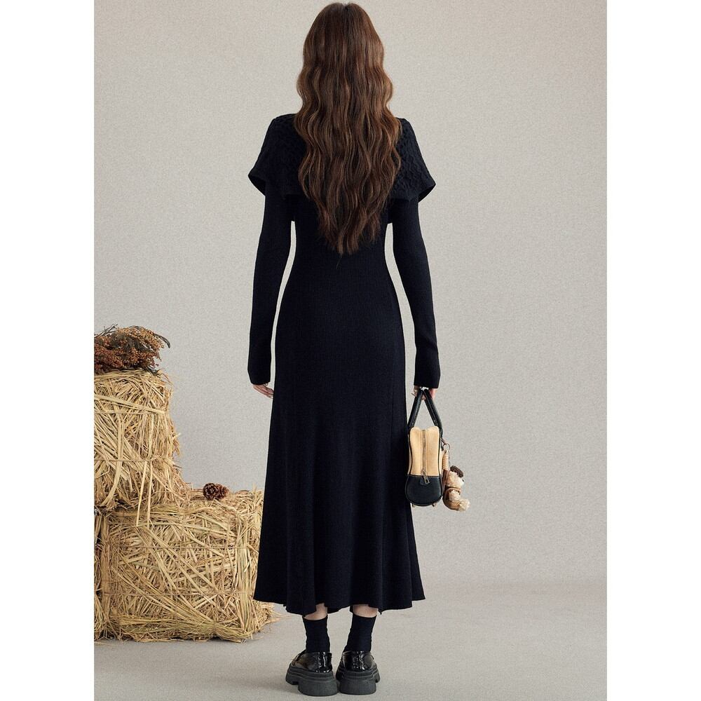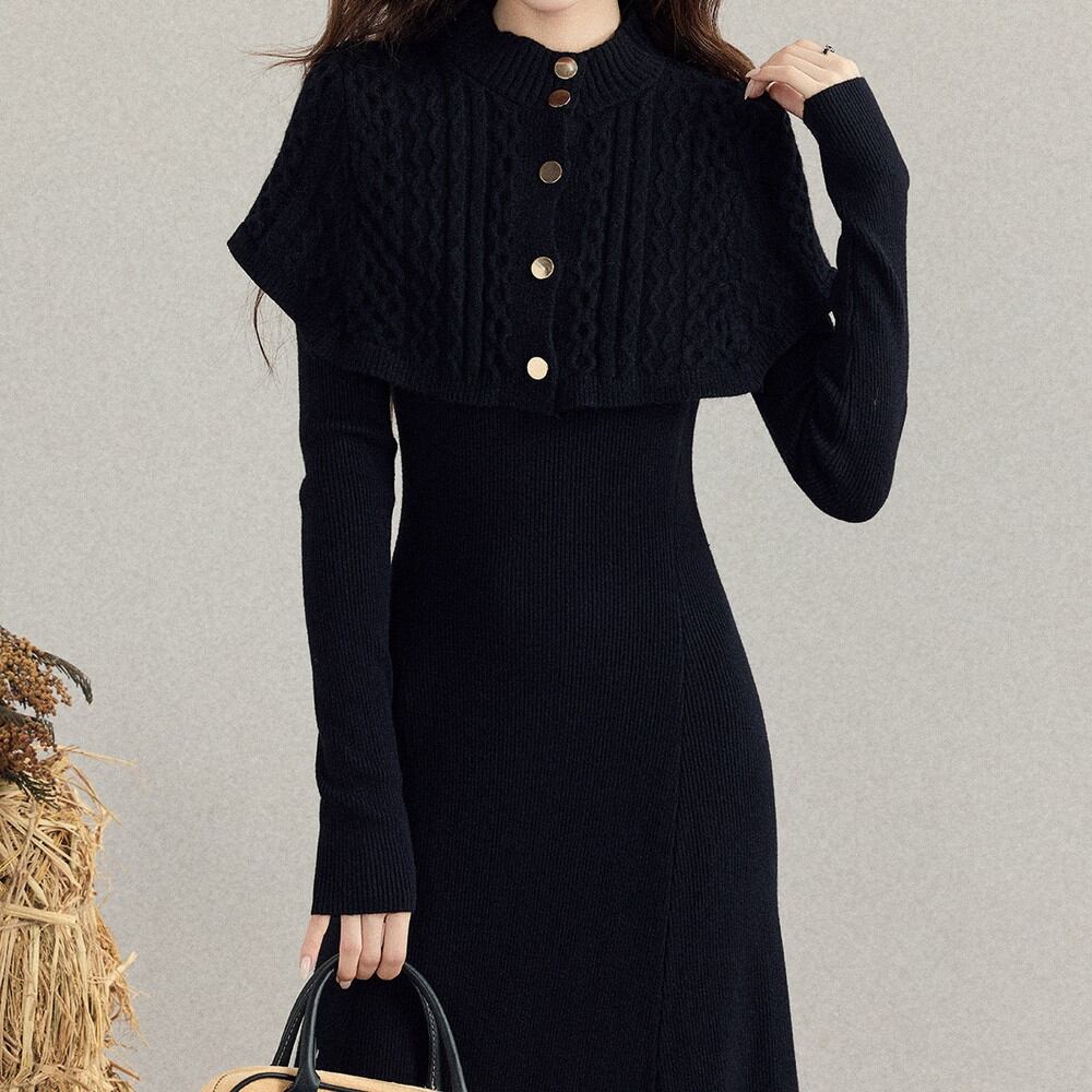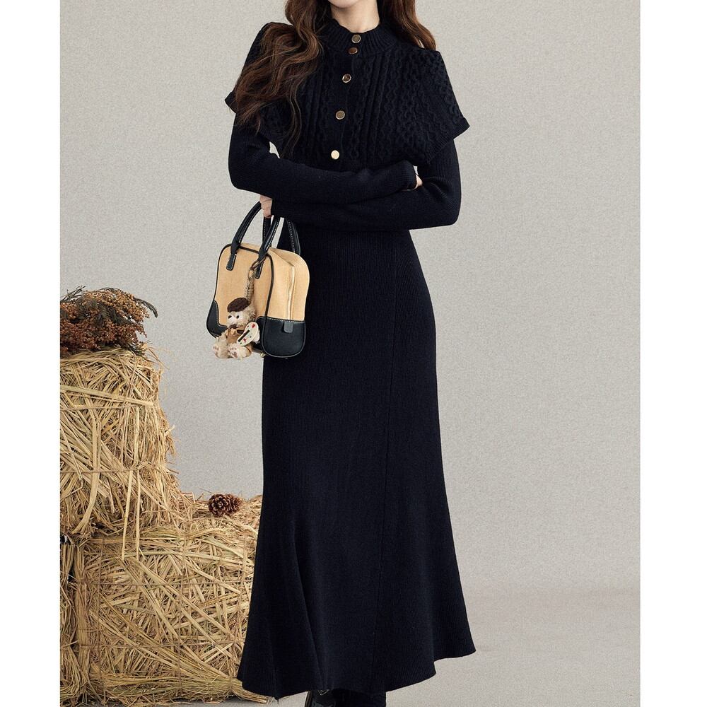 ケープ風ニットトップス×ロングワンピースセットアップ 00304