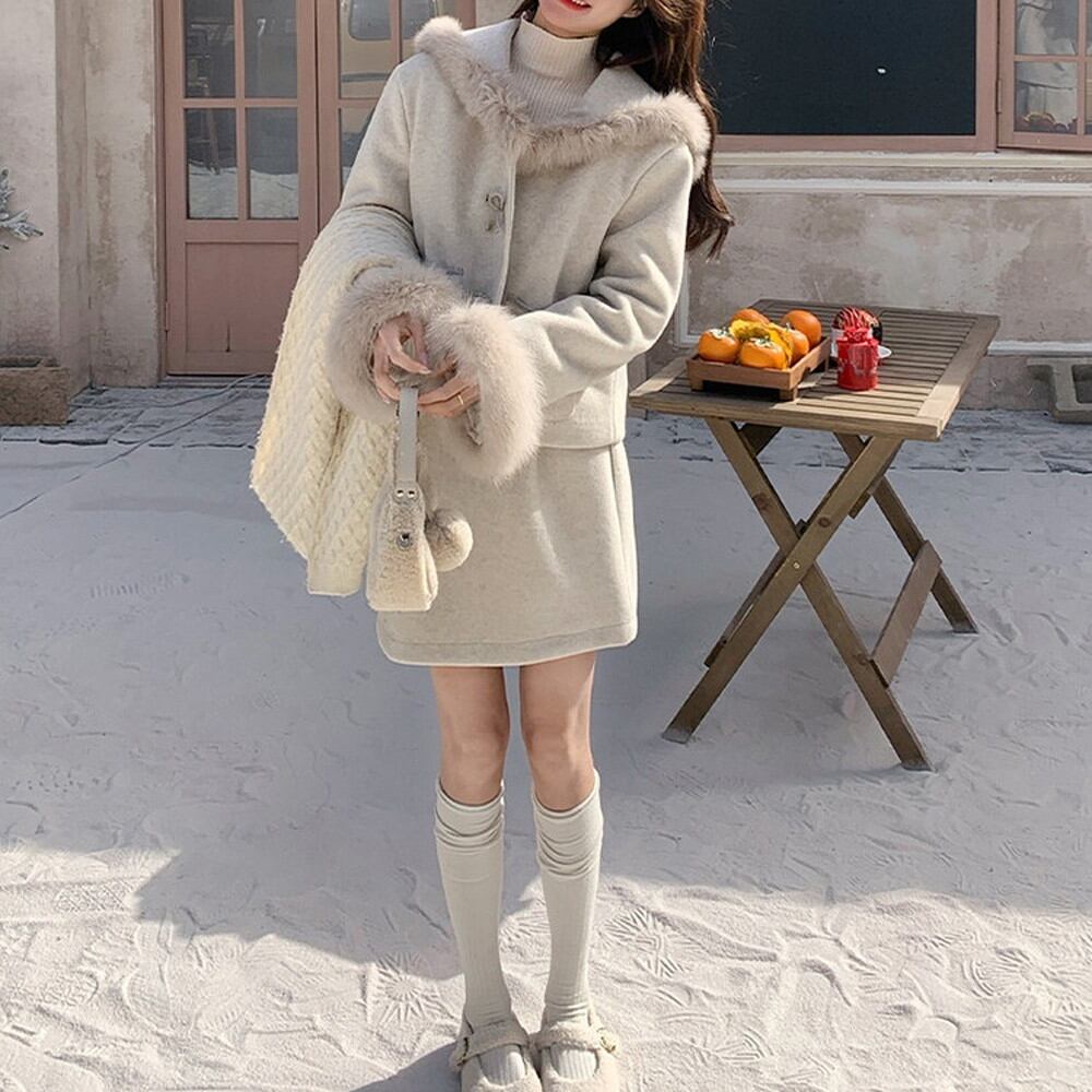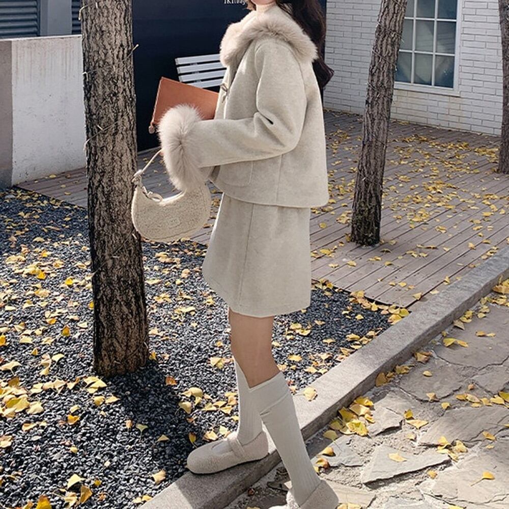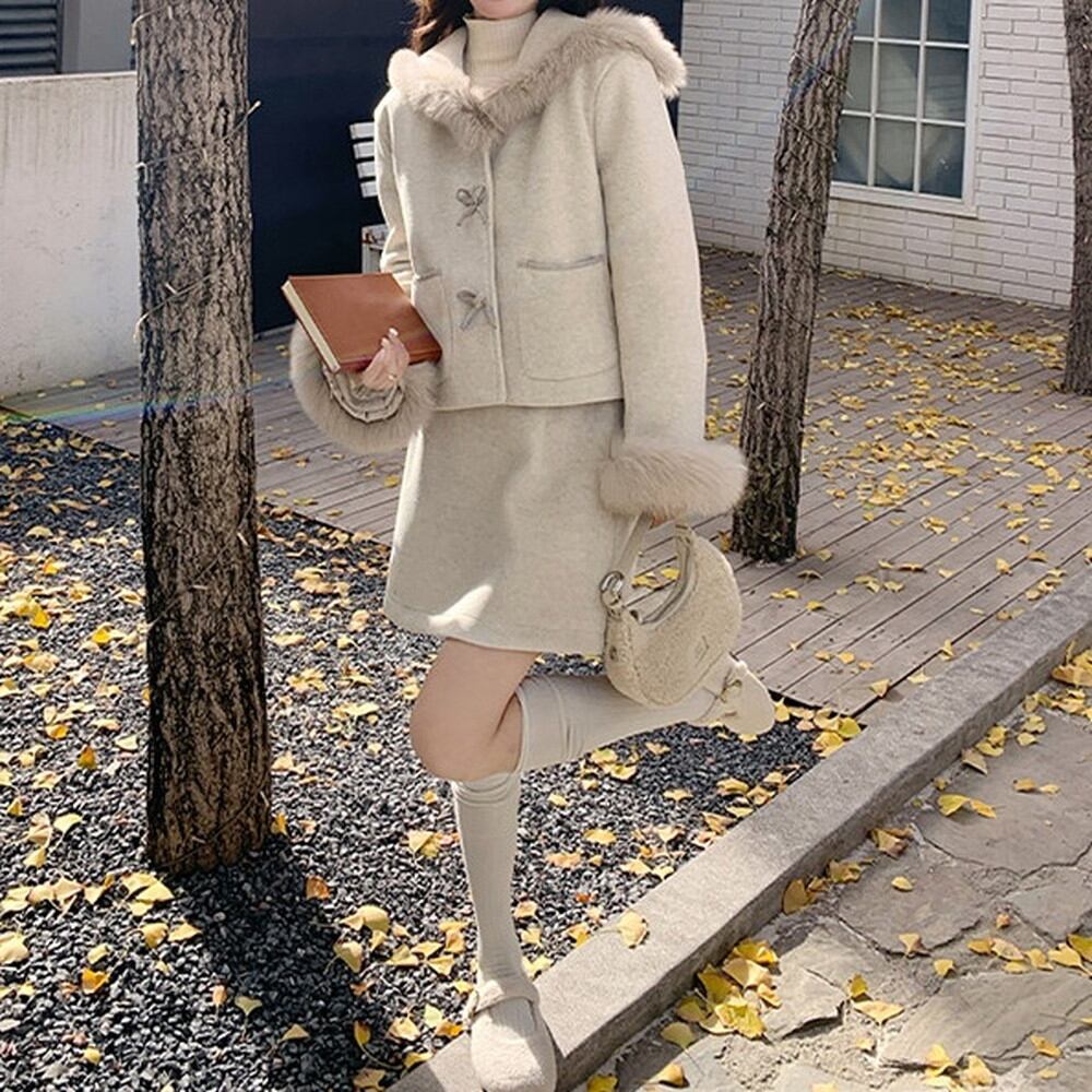 エコファー付きフードジャケット×ミニスカートセットアップ 00306